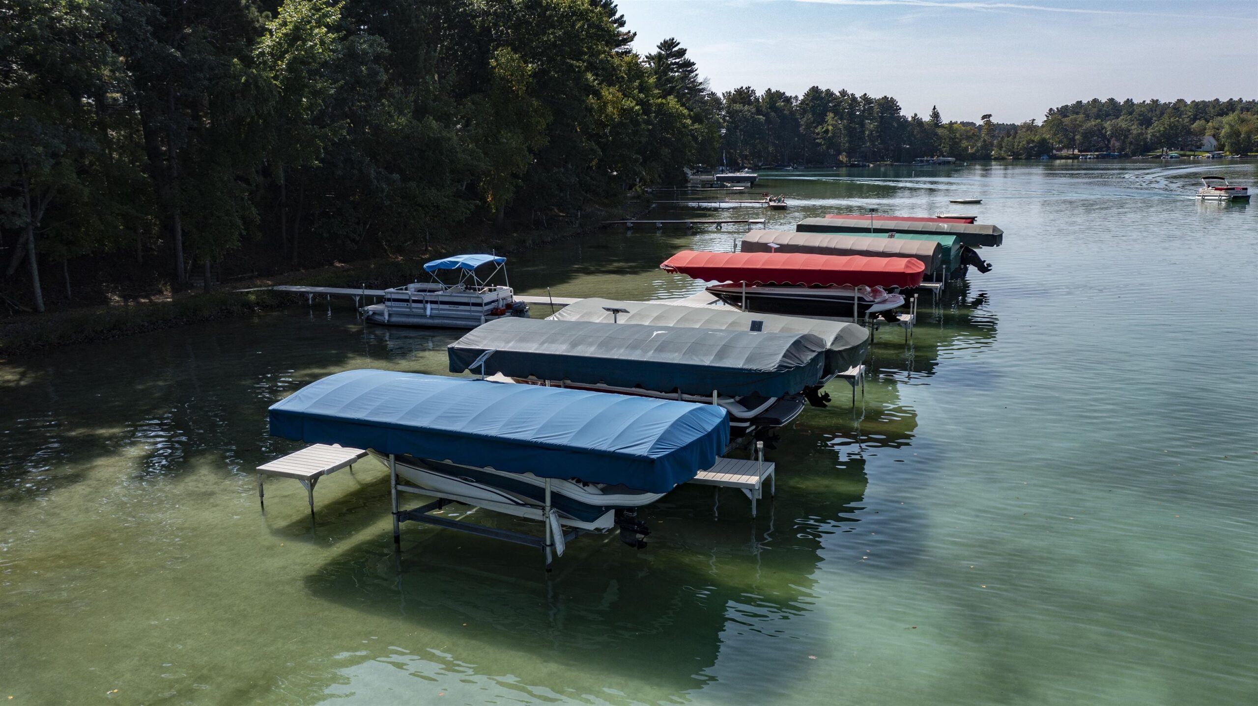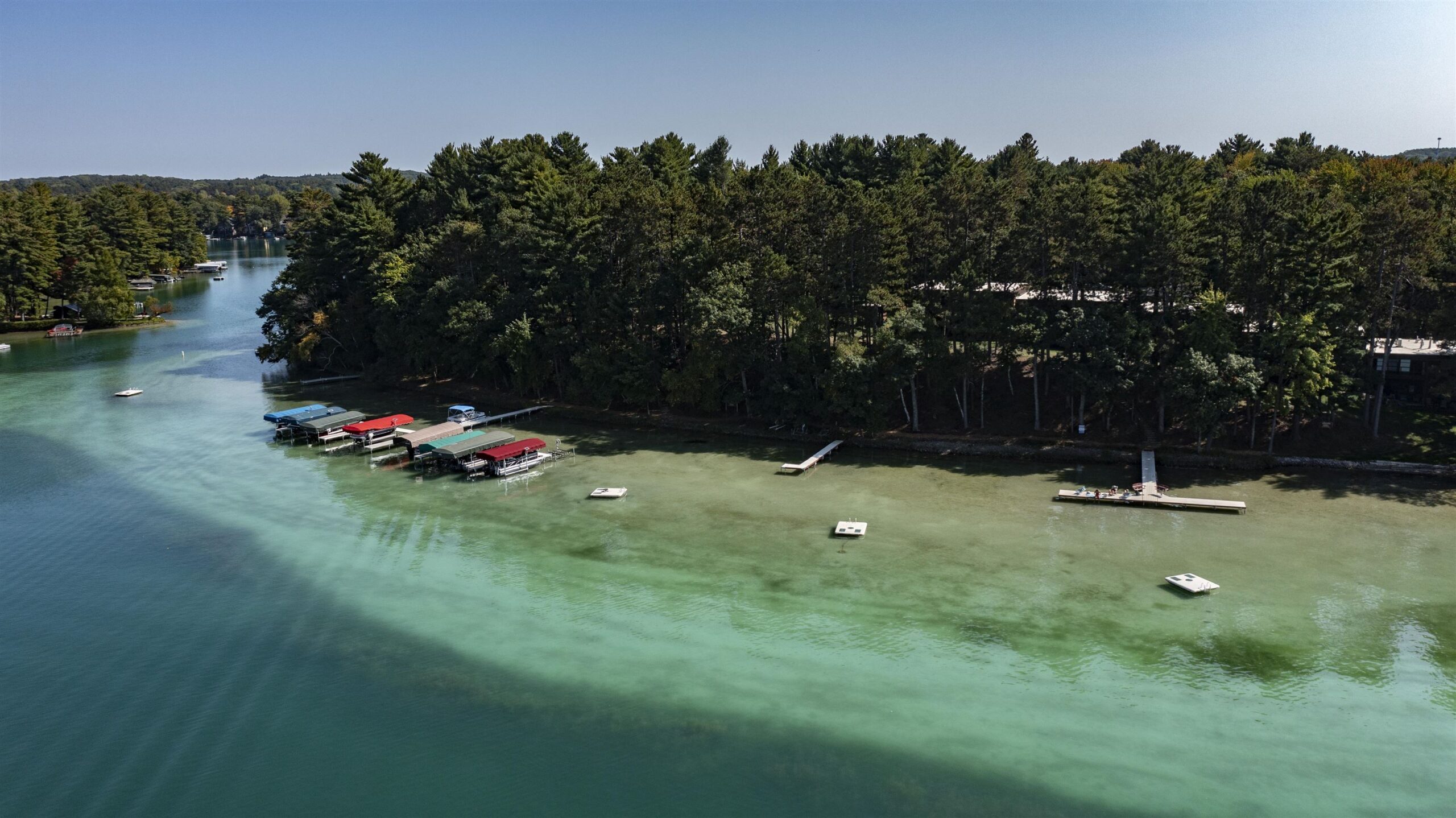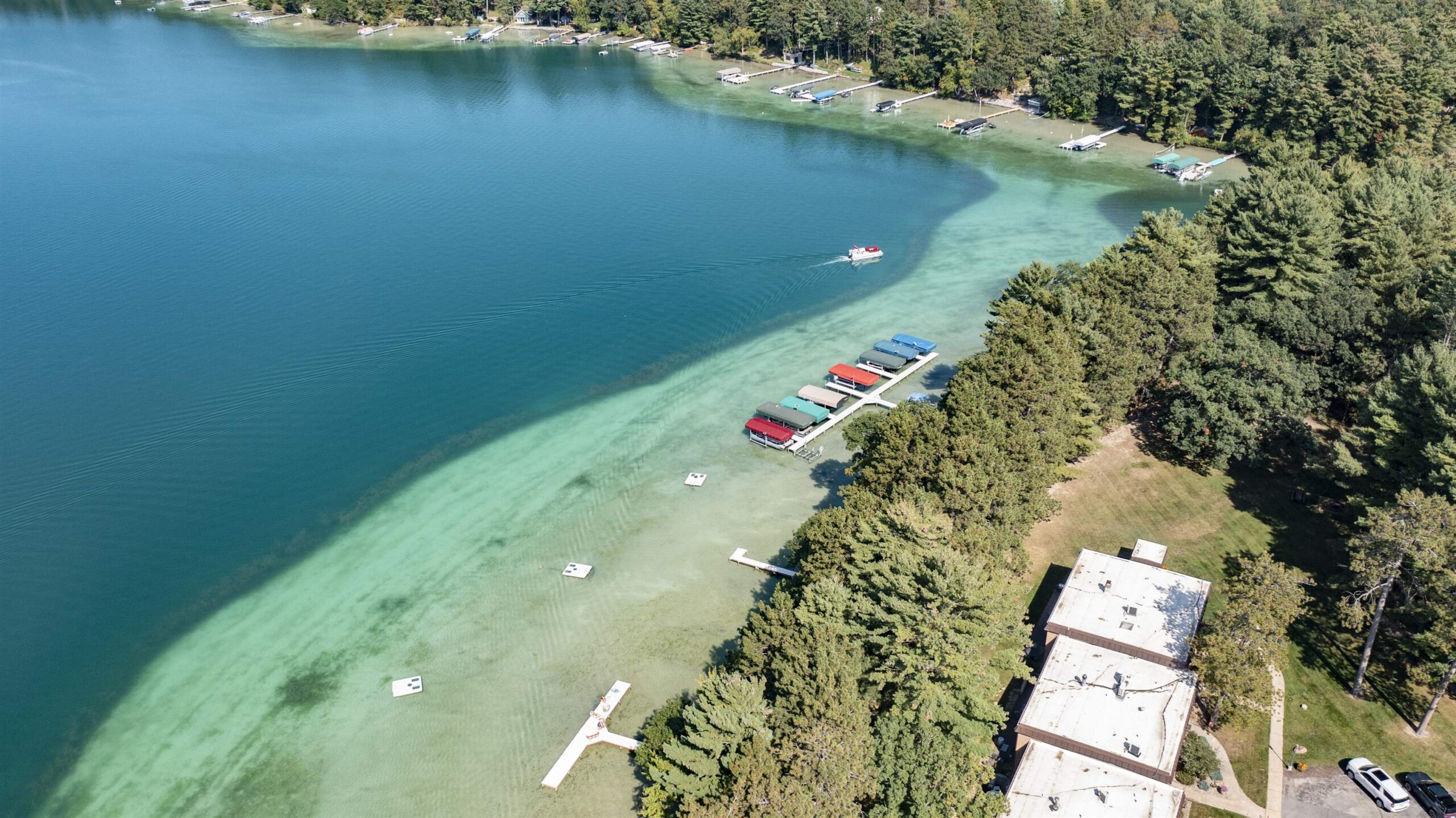 The HOA fees include lawn and dock maintenance, outside maintenance of the buildings, docks, and lawn, trash, and internet and cable.