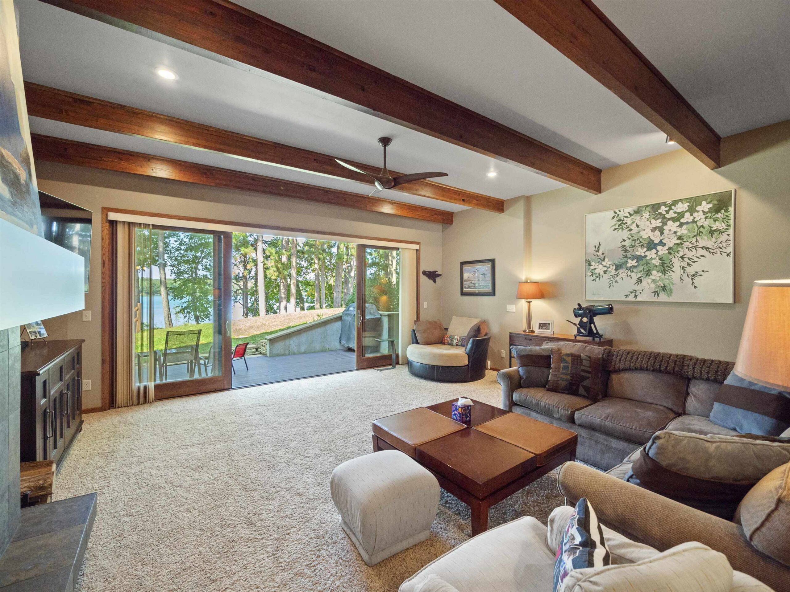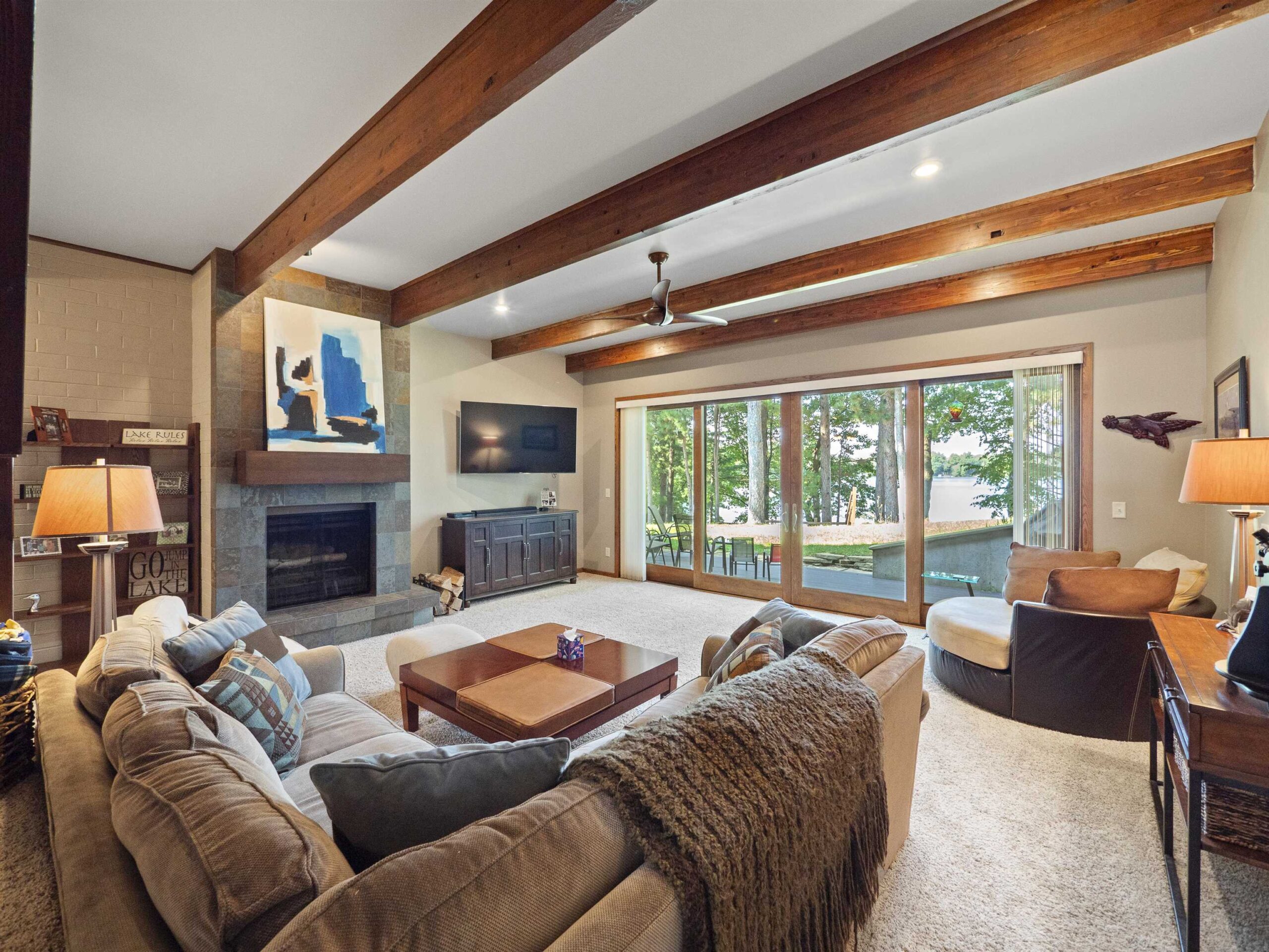 CONDO MLS #50315295 located on the Waupaca Chain O’ Lakes! Renovated Wingspan Condo facing Round Lake with breathtaking sunset views from an extra-large living room and primary bedroom. Carefree living meets hard-sand frontage with 1,200± ft of shoreline on 17 acres, shared by only 18 units, with your own dock space and boat slip. Inside: Open concept, spacious 1,800+ sq ft, oversized windows and patio doors, and a beautifully updated wood-burning fireplace. Step onto a maintenance-free patio for your golden-hour dinners! Tennis & pickleball courts, wide green space, and easy walks to the Wheelhouse & ICC. The association covers grounds & exterior (new roof), so weekends stay free for year-round lake life. Turn-key, lock-and-leave convenience in the heart of the Chain O’ Lakes!