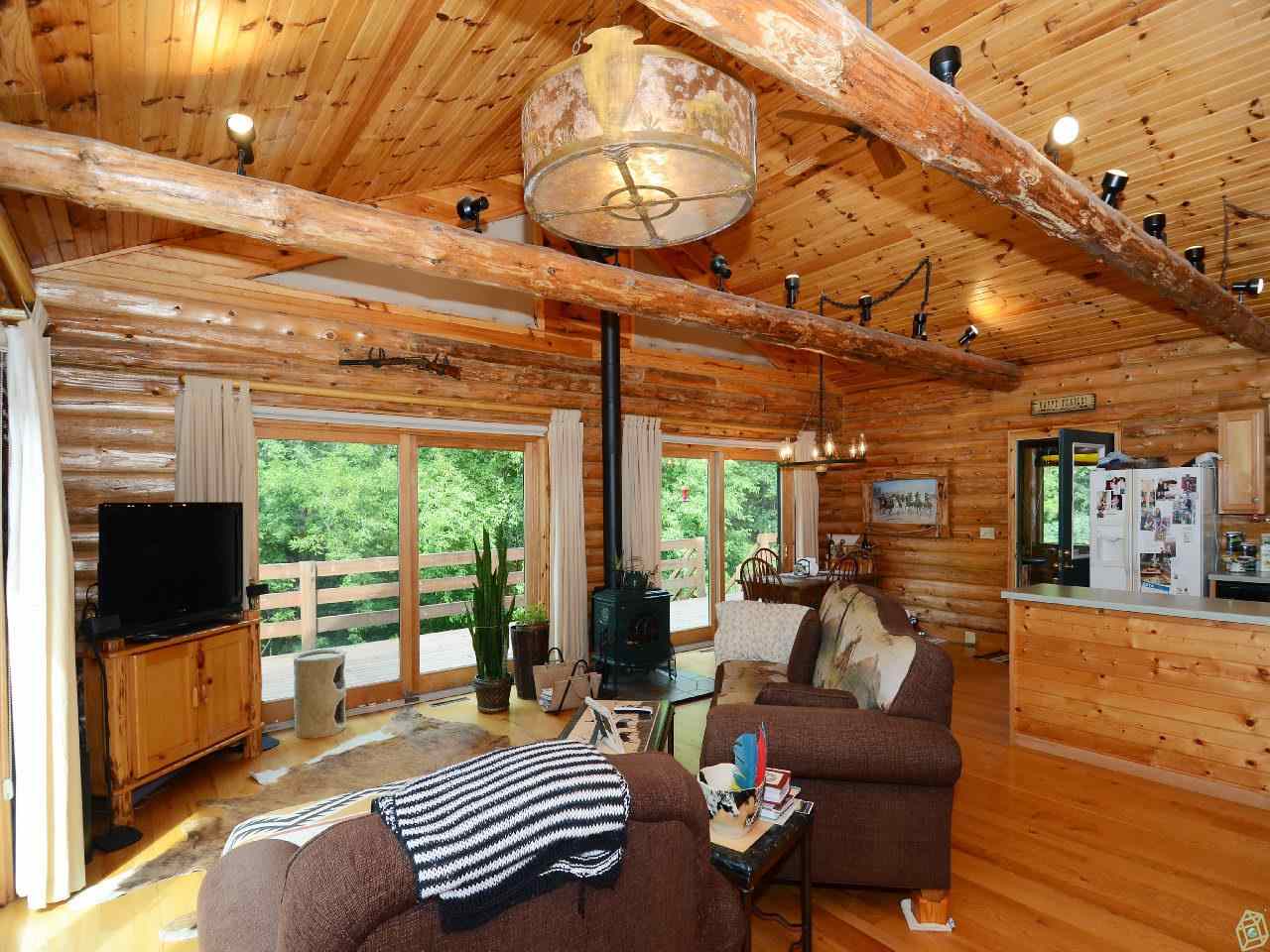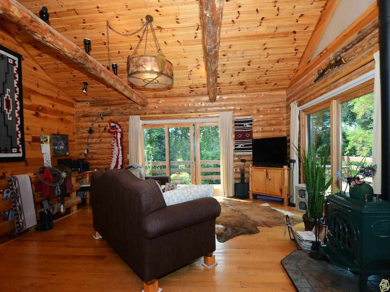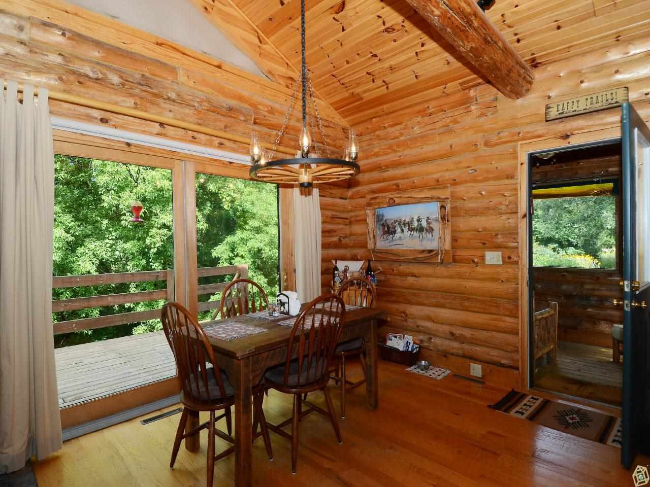 Beautiful log home for that perfect private escape. Two minutes from Devil's Lake State Park, across the rd from Parfrey's Glen natural area. 2 bdrms, 2.5 baths, wrap-around deck, 2+ car gar, open kit/living rm with windows everywhere, large lower level family rm for additional space, screened porch, and the totally maintenance-free space outside will make your life peaceful. Enjoy the miles of hiking trails, wildlife and geology of the area while having a great place to come home to at the end of the day
