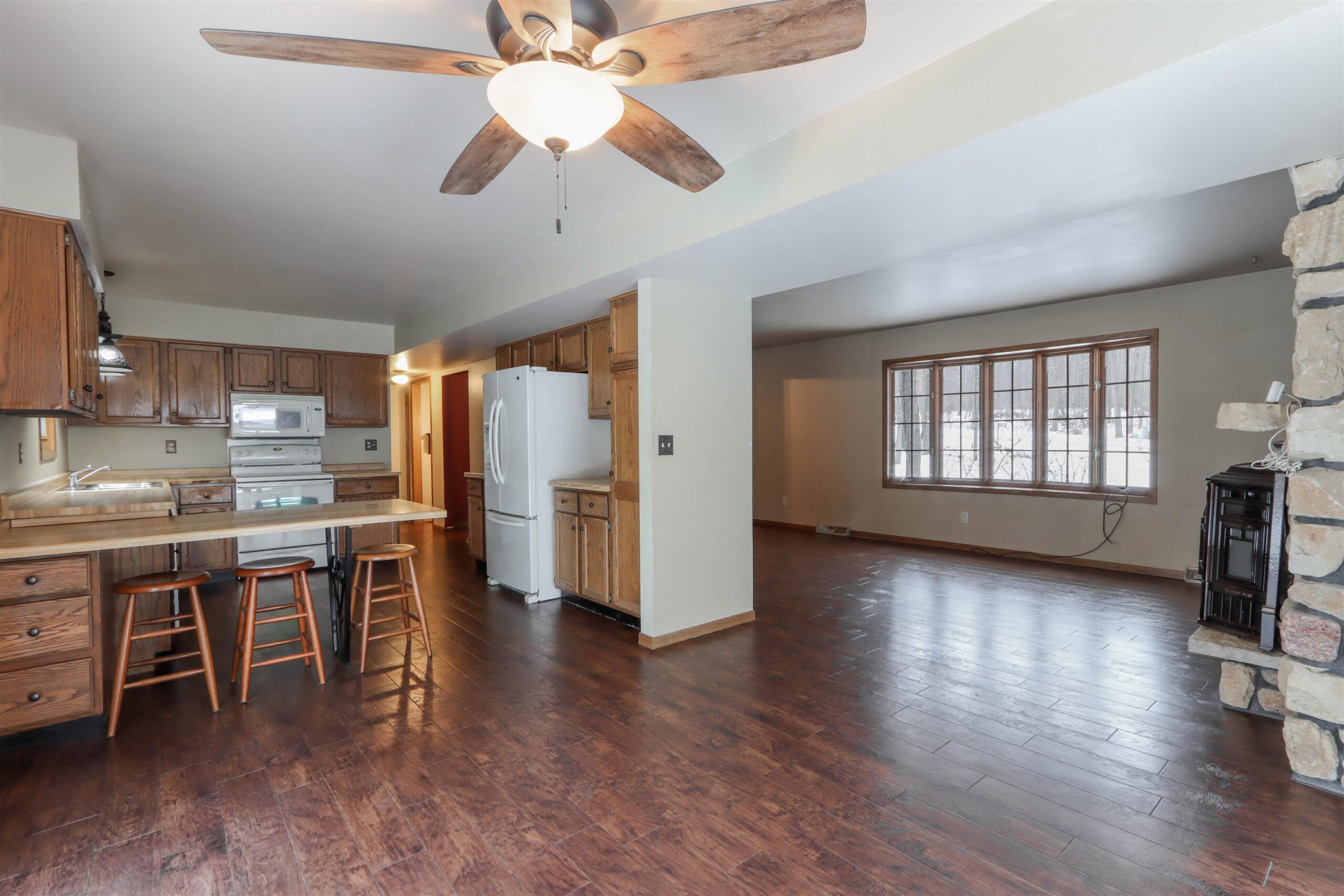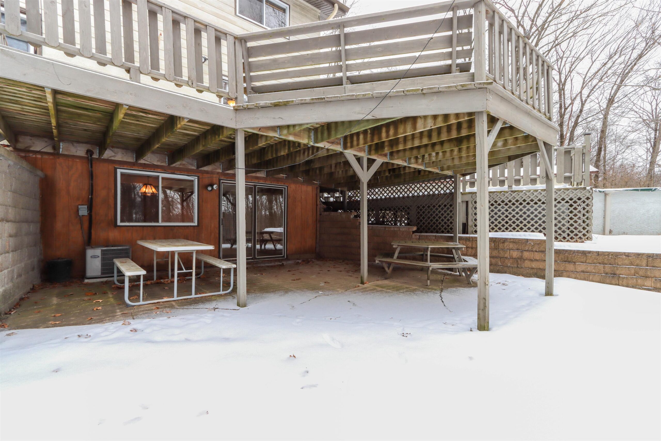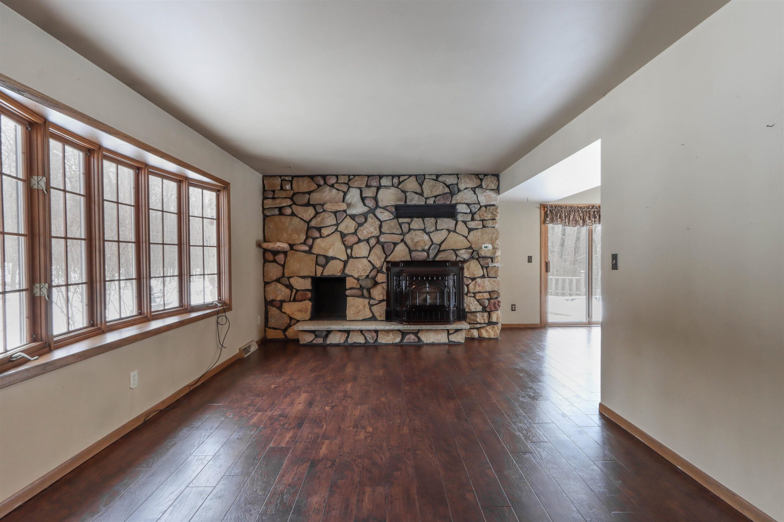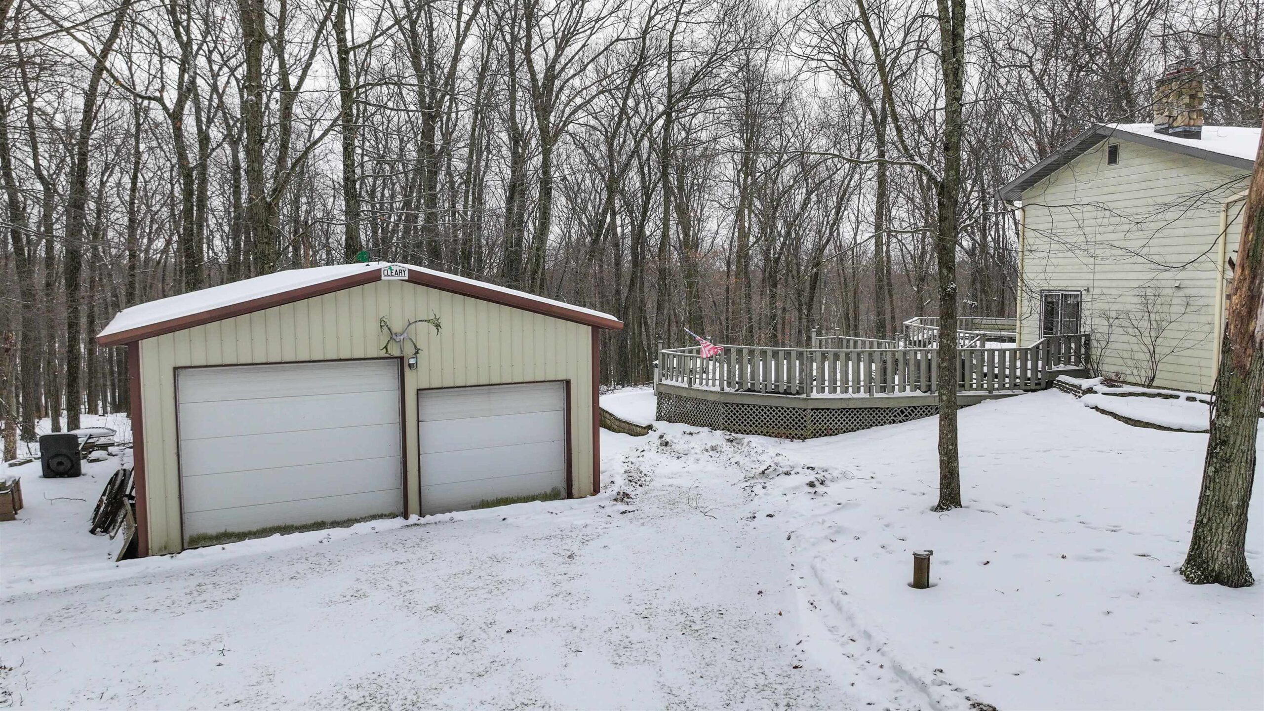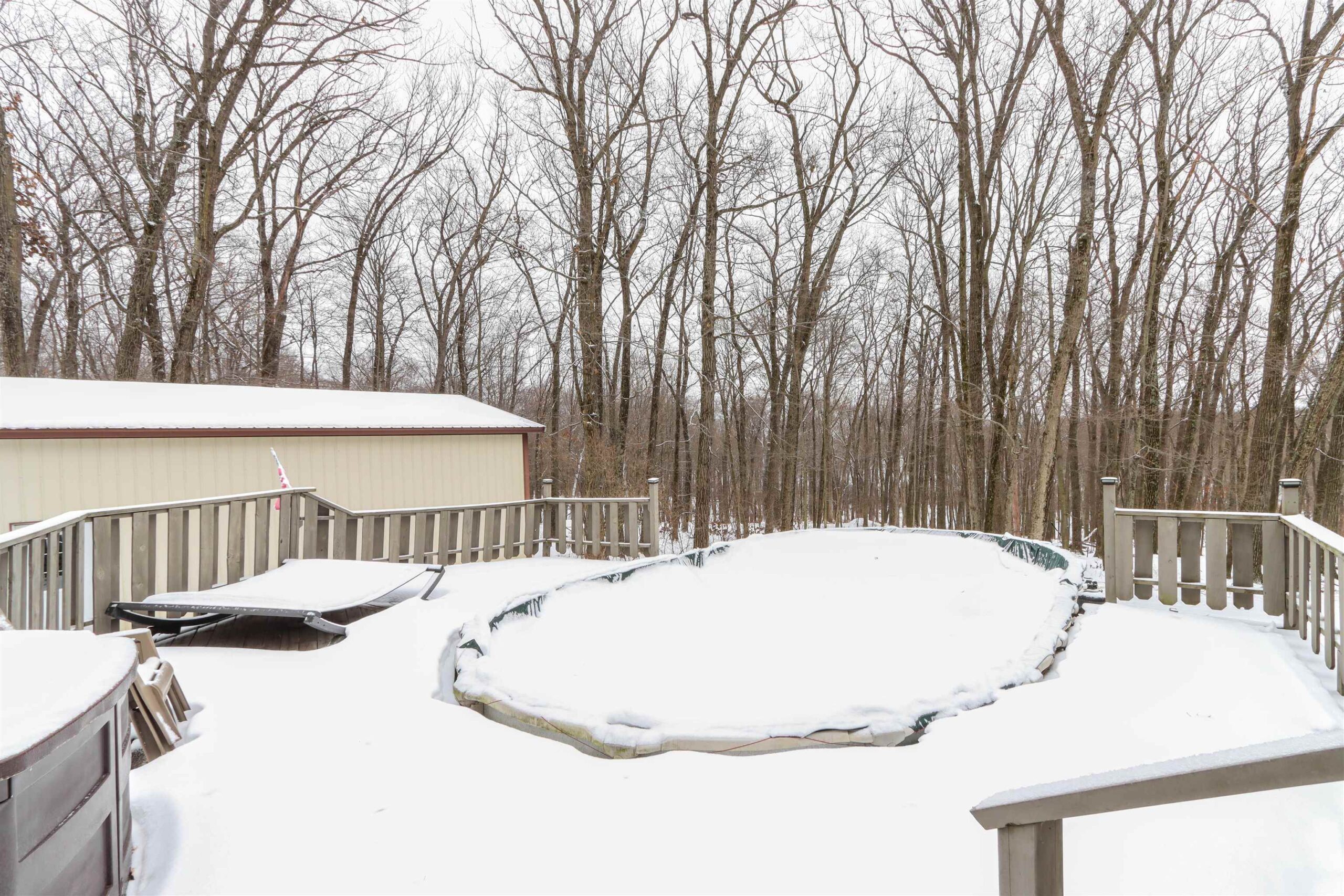 New Year - New Home! Located in the charming Woodridge Subdivision at the very end of the quiet road, this 1-acre property abuts to Waupaca's beautiful Swan Park and the River Ridge Trail for great hiking just steps from your front door! The 4 Bedroom, 3 full bathroom home features 2 fireplaces, one in the lower level walkout basement with wet bar for entertaining. Main floor living room has a stone fireplace w/ pellet stove insert. The home features a tiered deck wrapping around the above-ground pool, overlooking the private wooded setting. In addition to the spacious 2 car garage, there is a bonus 35x27 Cleary pole building with an oversized 10ft door in addition to the 8ft door, concrete floors and electric. Seller is offering a $9k flooring credit. Check it out today!