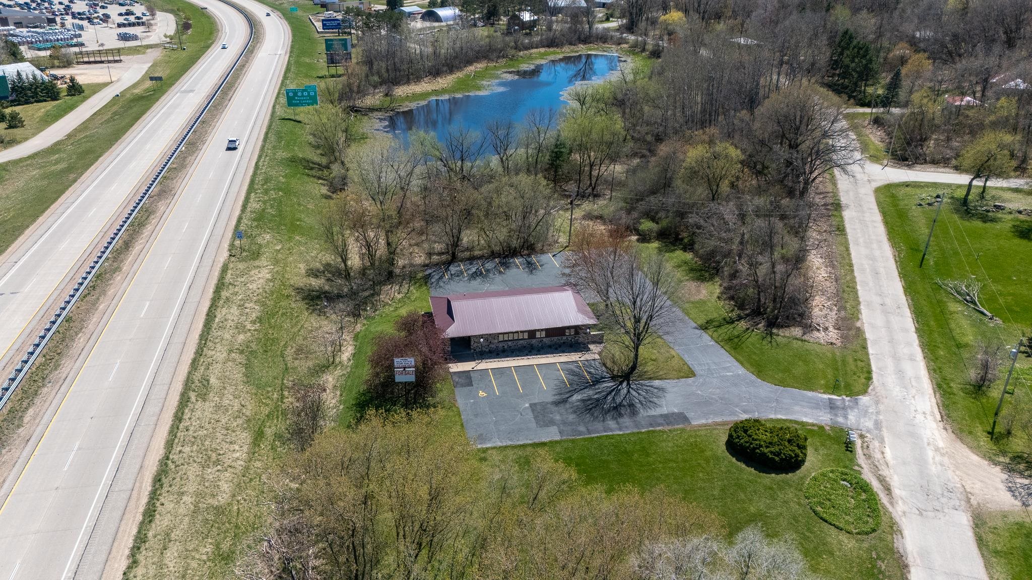 Well-built commercial building with excellent visibility from HWY 10 on the east side of Waupaca! 7.7 acres with it's own lake! Could definitely be multi-use/multi businesses! There's a commercial grade business sign for HWY 10 visibility. New roof, gutters, down spouts, parking lot repaired/sealed, staining exterior, bathrooms remodeled, painting, landscaping plus more updates.
