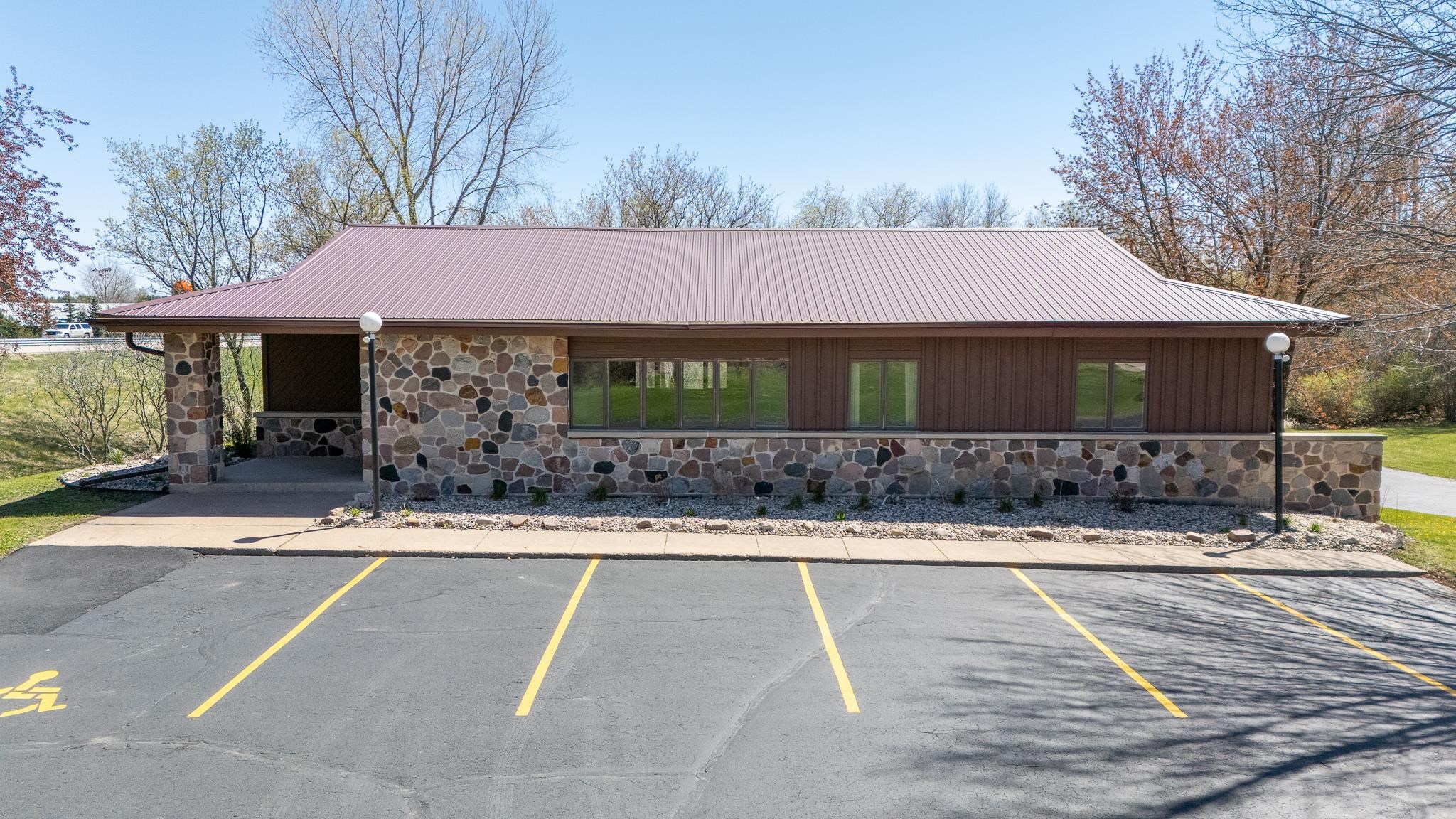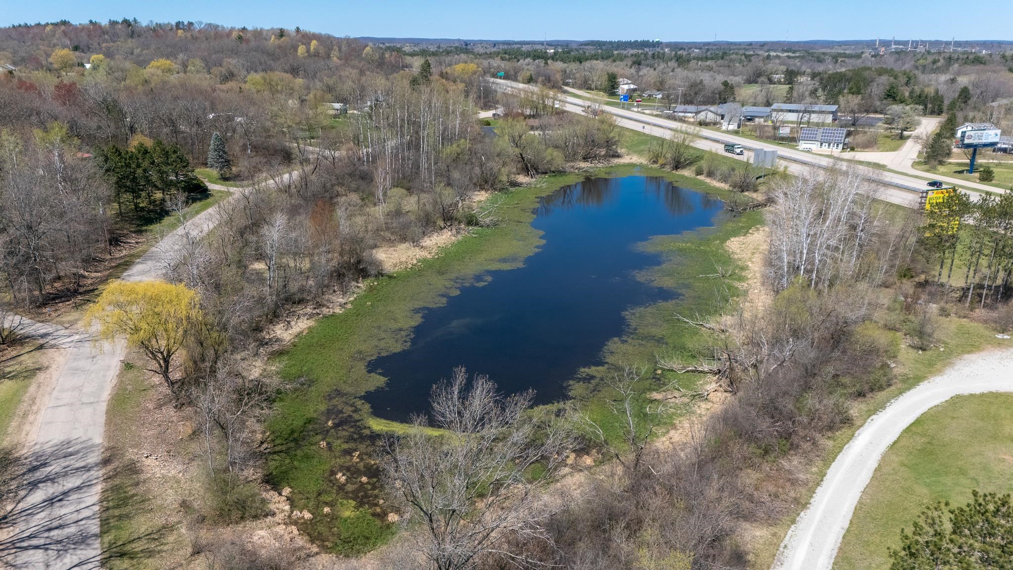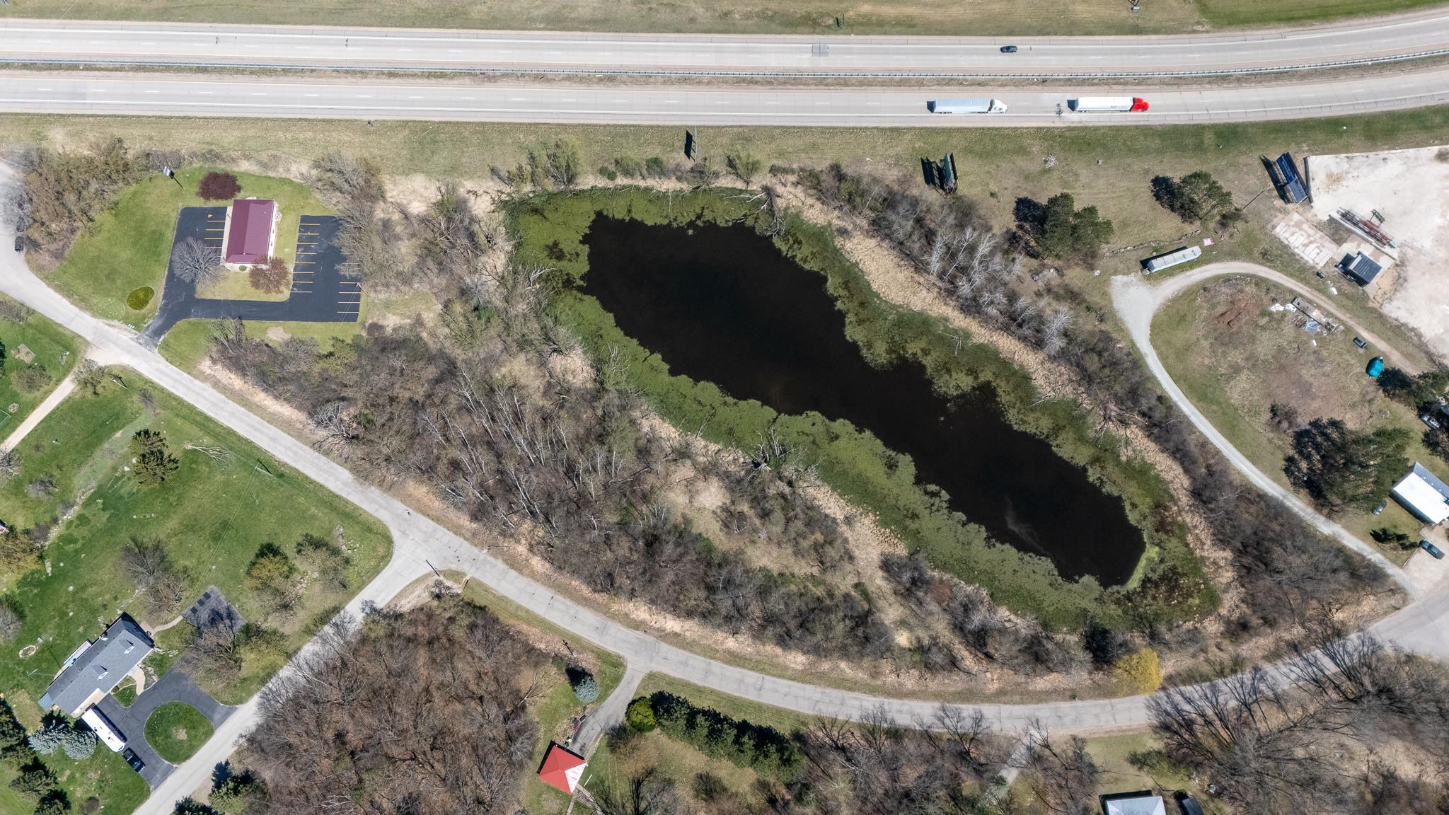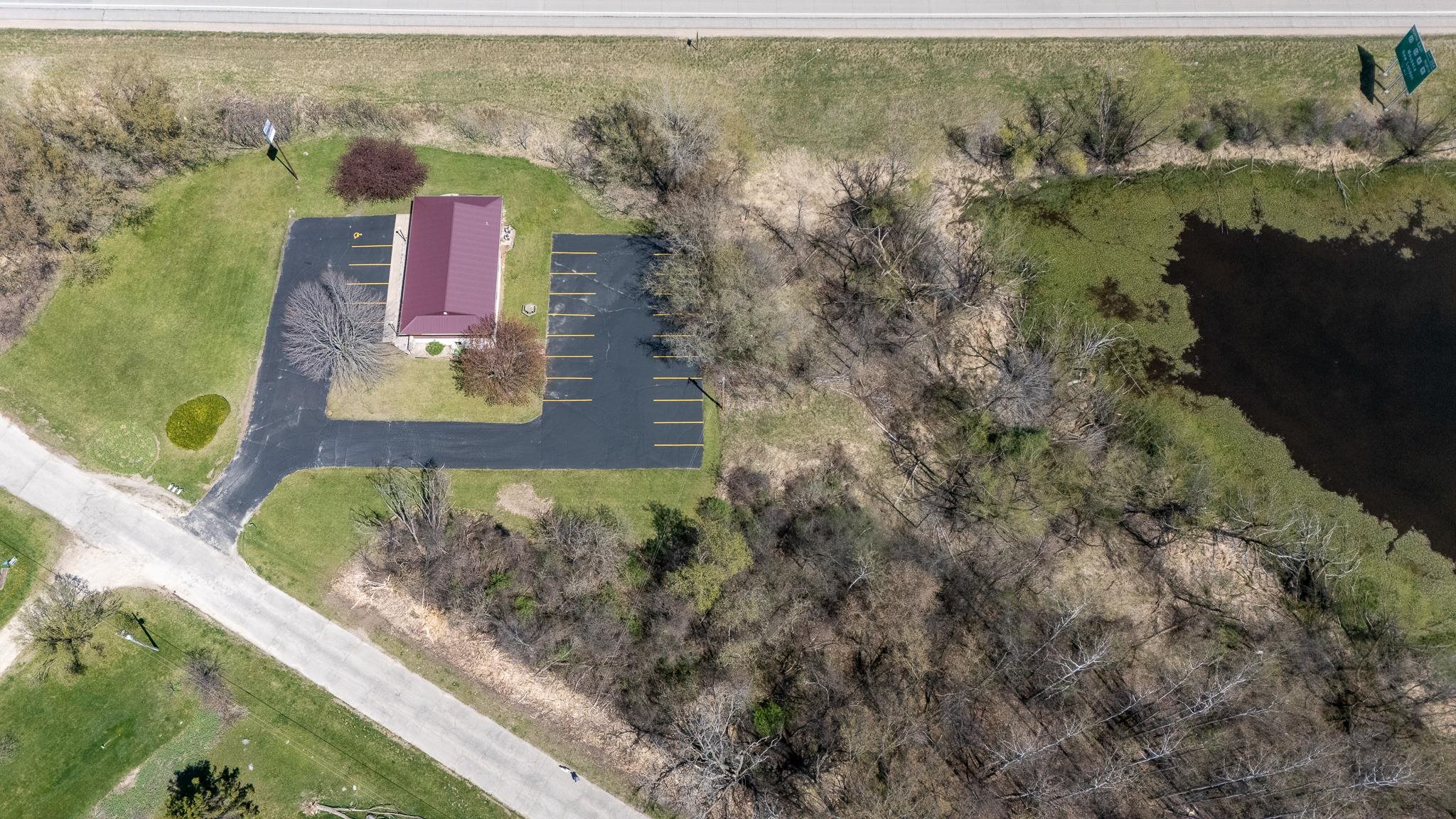Well-built commercial building with excellent visibility from HWY 10 on the east side of Waupaca! 7.7 acres with it's own lake! Could definitely be multi-use/multi businesses! There's a commercial grade business sign for HWY 10 visibility. New roof, gutters, down spouts, parking lot repaired/sealed, staining exterior, bathrooms remodeled, painting, landscaping plus more updates.