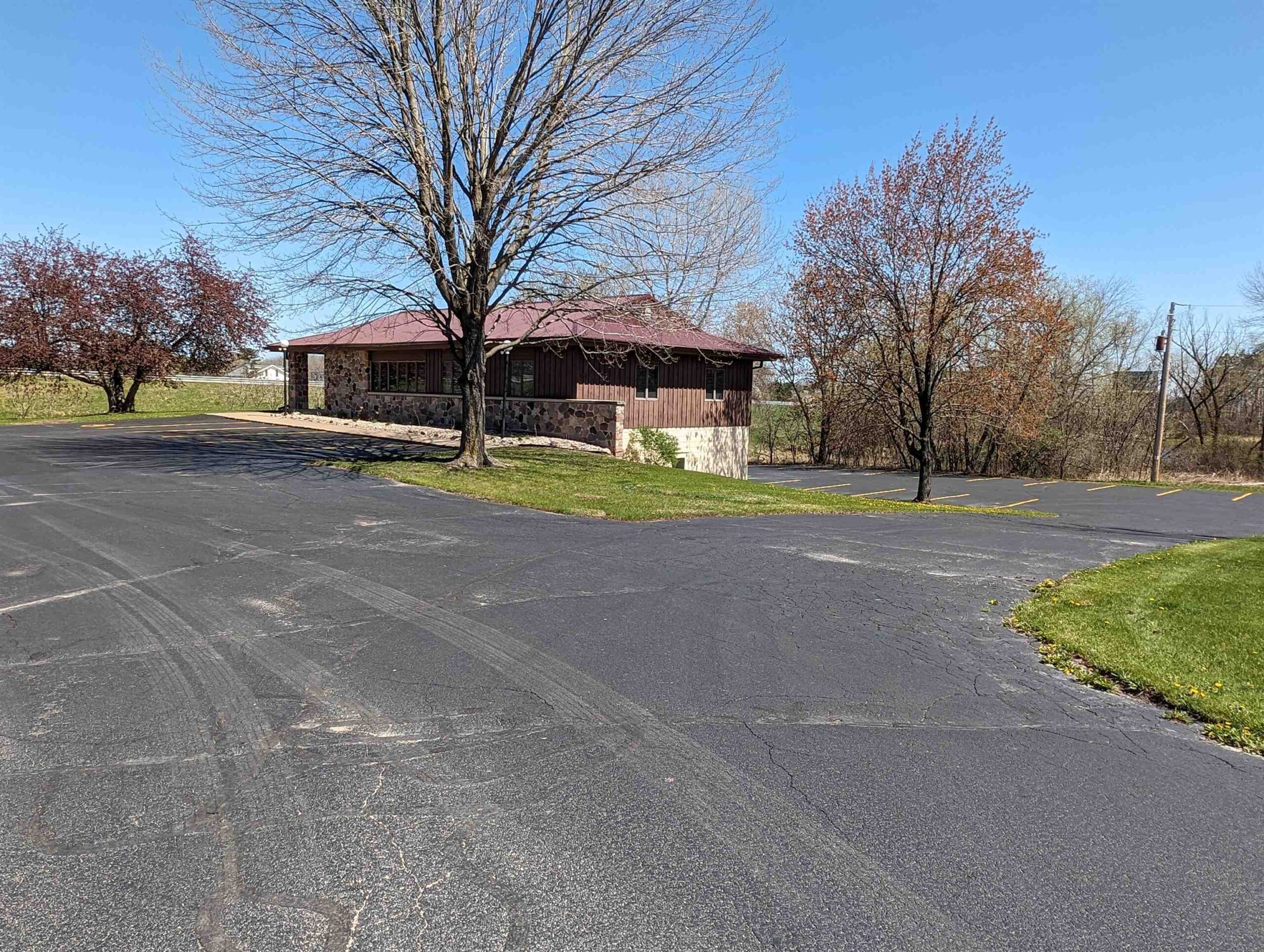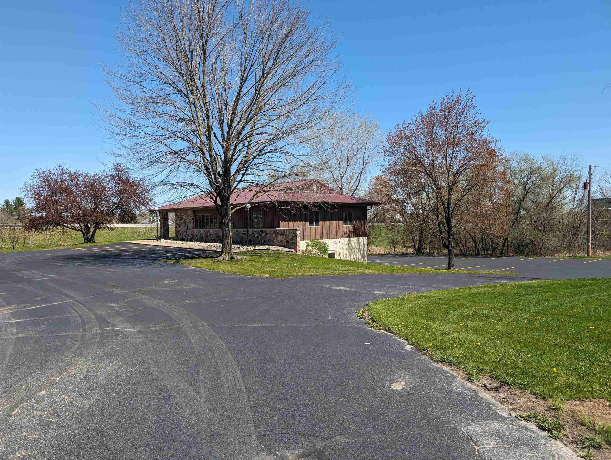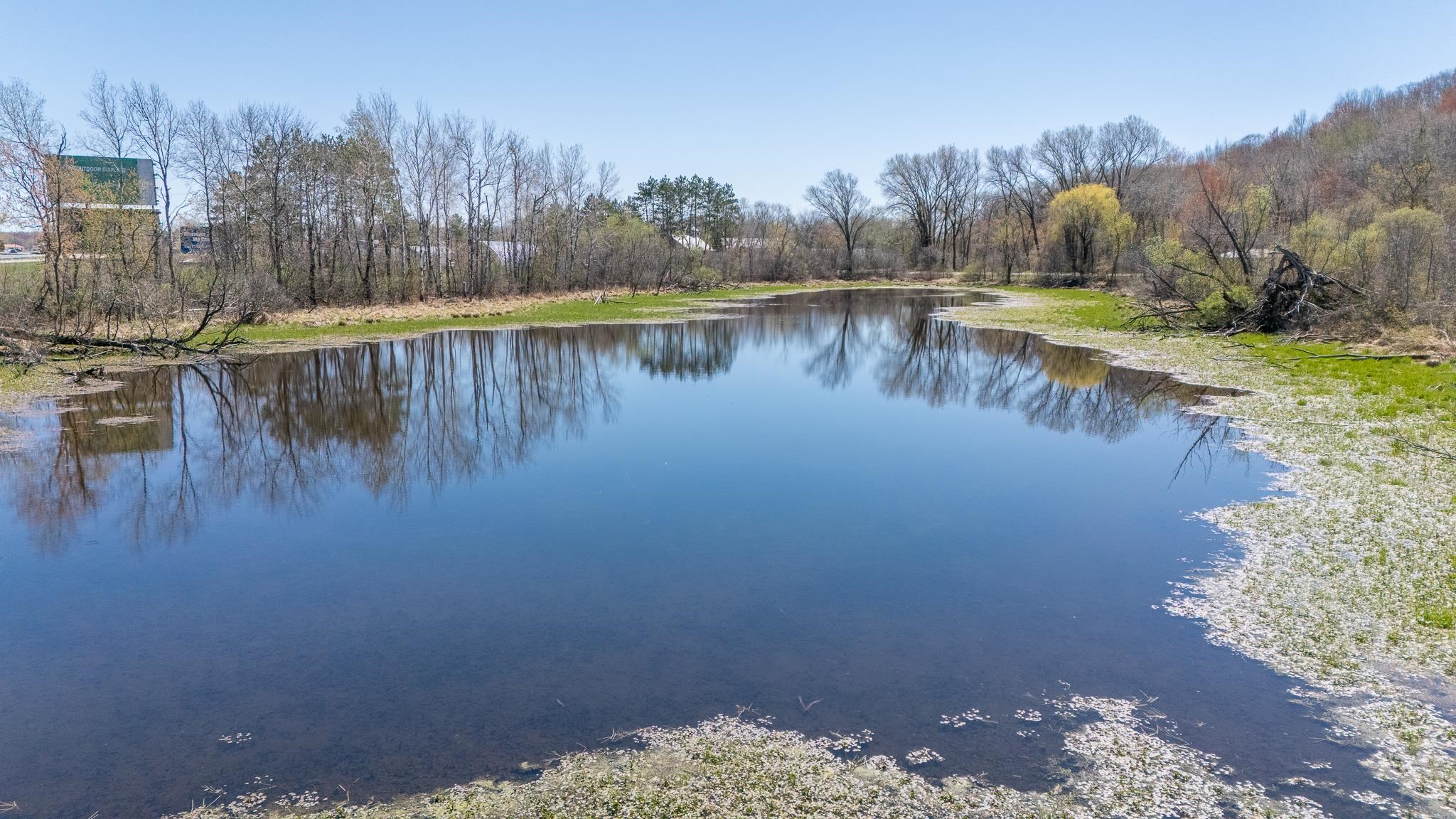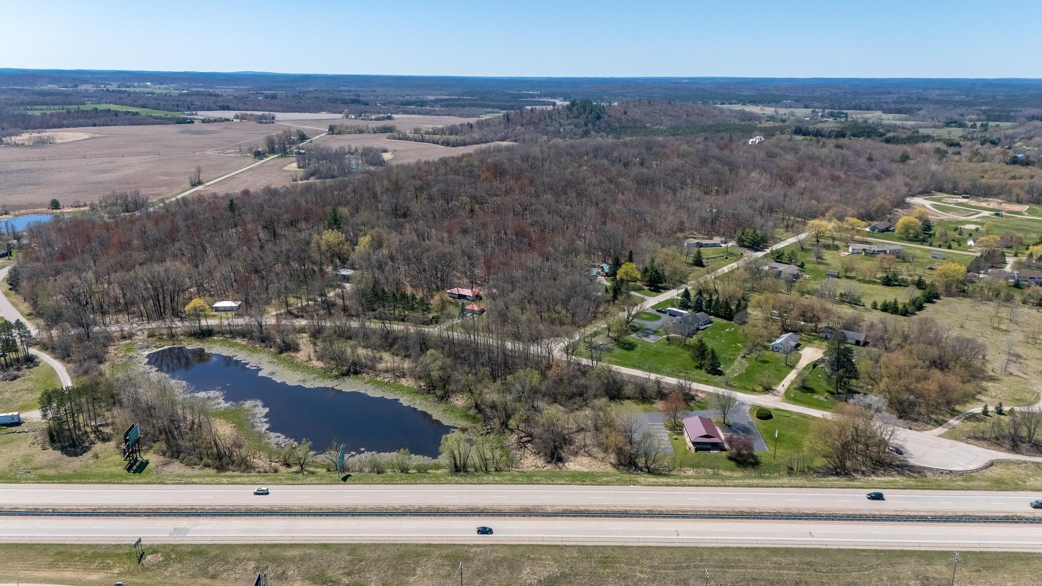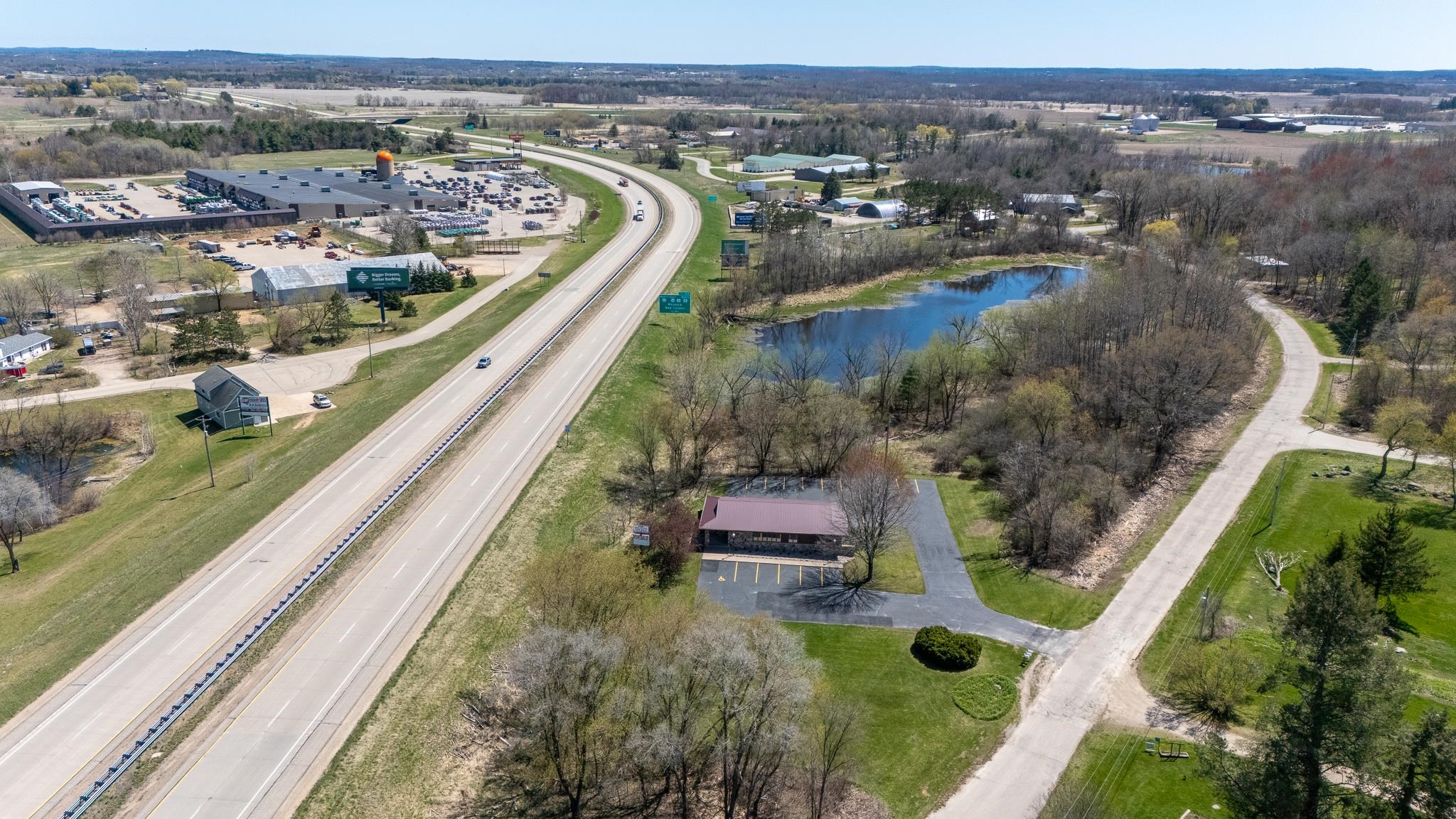 Well-built commercial building with excellent visibility from HWY 10 on the east side of Waupaca! 7.7 acres with it's own lake! Could definitely be multi-use/multi businesses! There's a commercial grade business sign for HWY 10 visibility. New roof, gutters, down spouts, parking lot repaired/sealed, staining exterior, bathrooms remodeled, painting, landscaping plus more updates.