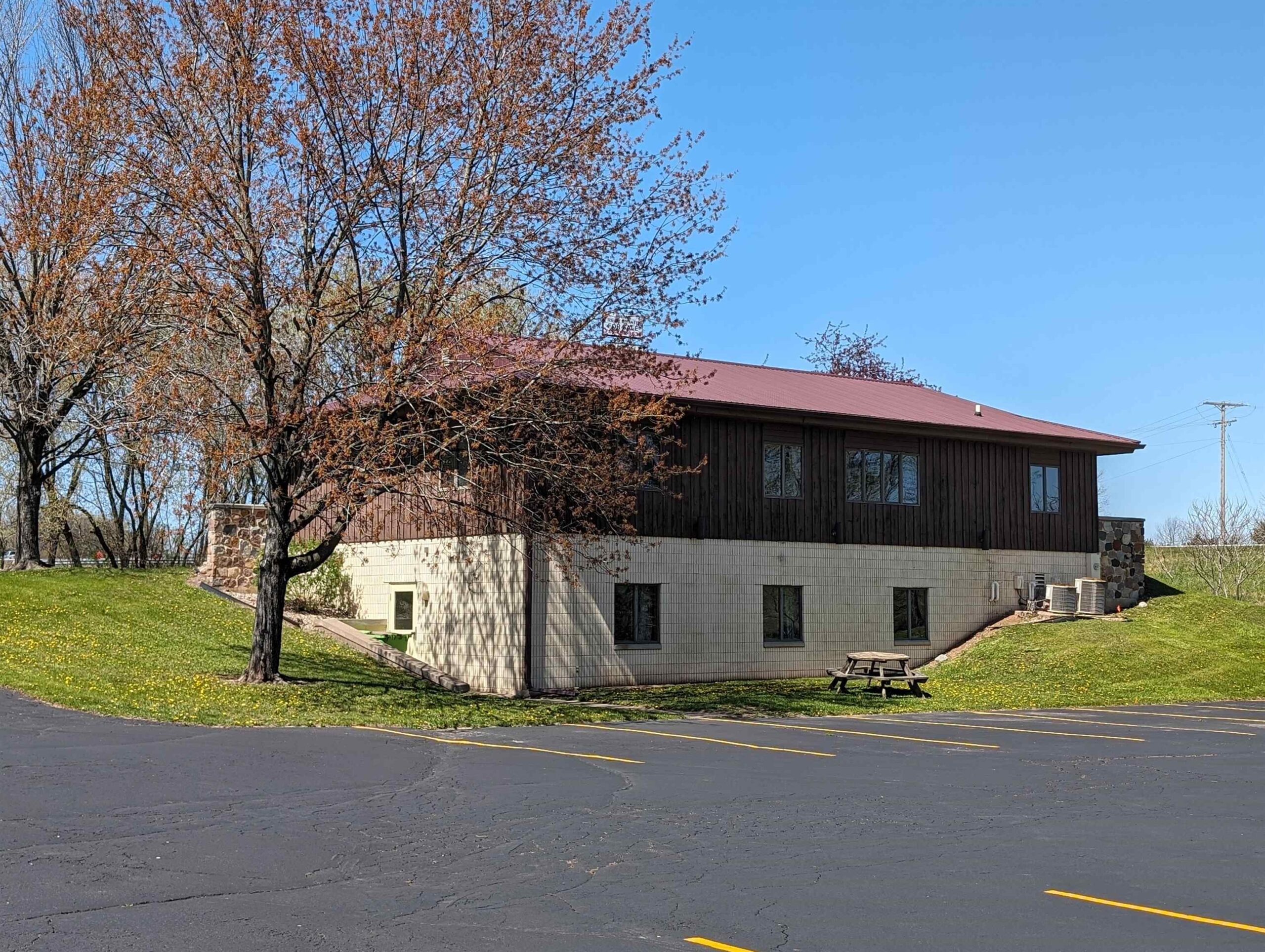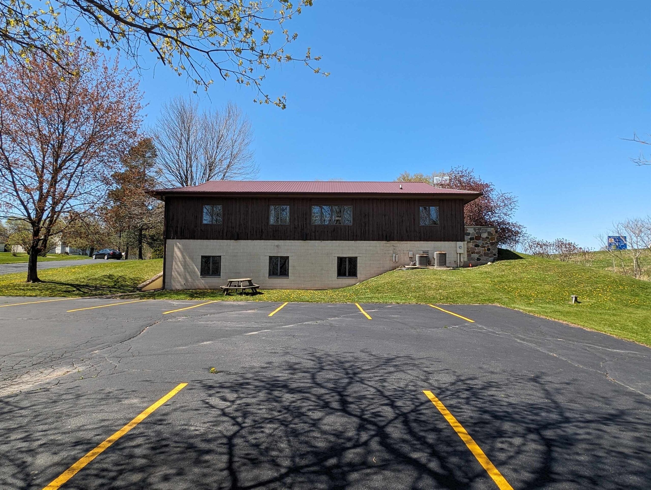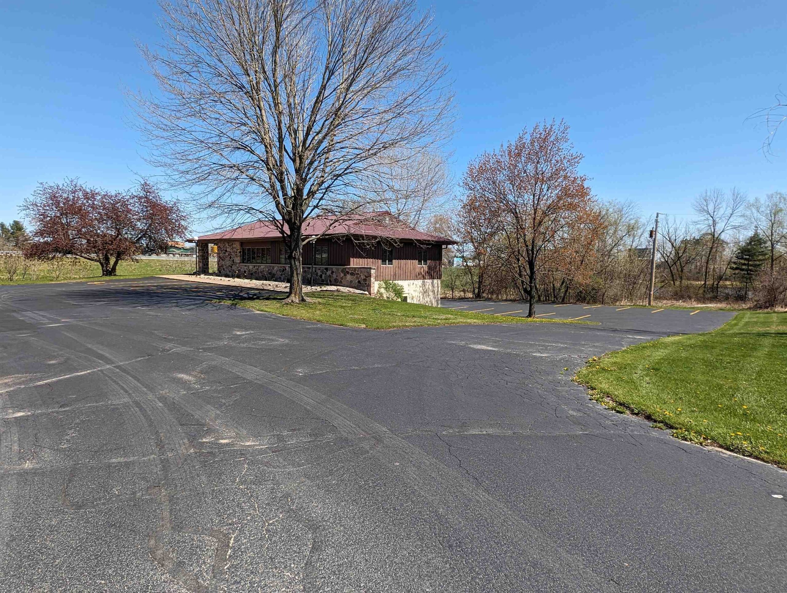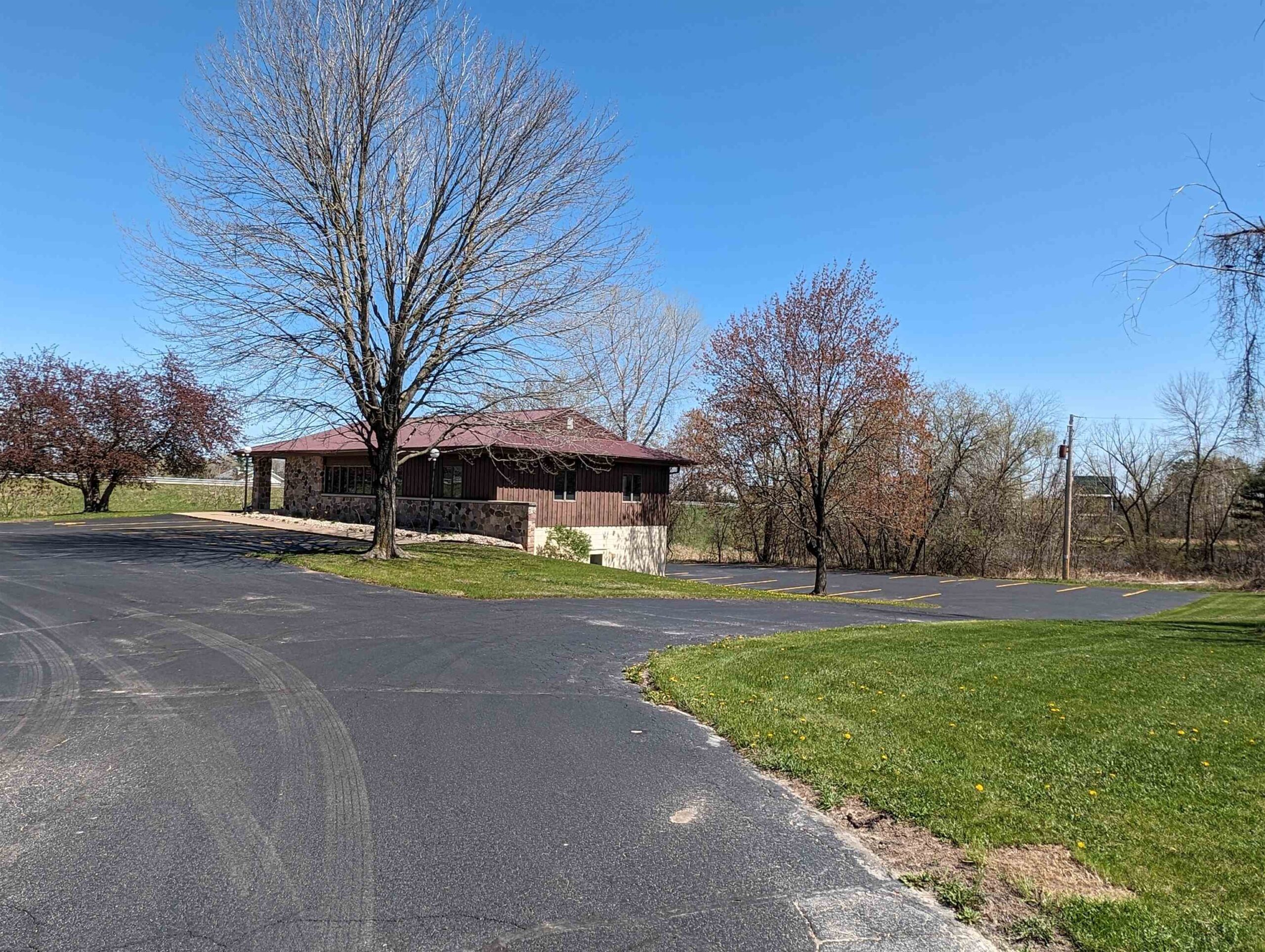 Well-built commercial building with excellent visibility from HWY 10 on the east side of Waupaca! 7.7 acres with it's own lake! Could definitely be multi-use/multi businesses! There's a commercial grade business sign for HWY 10 visibility. New roof, gutters, down spouts, parking lot repaired/sealed, staining exterior, bathrooms remodeled, painting, landscaping plus more updates.