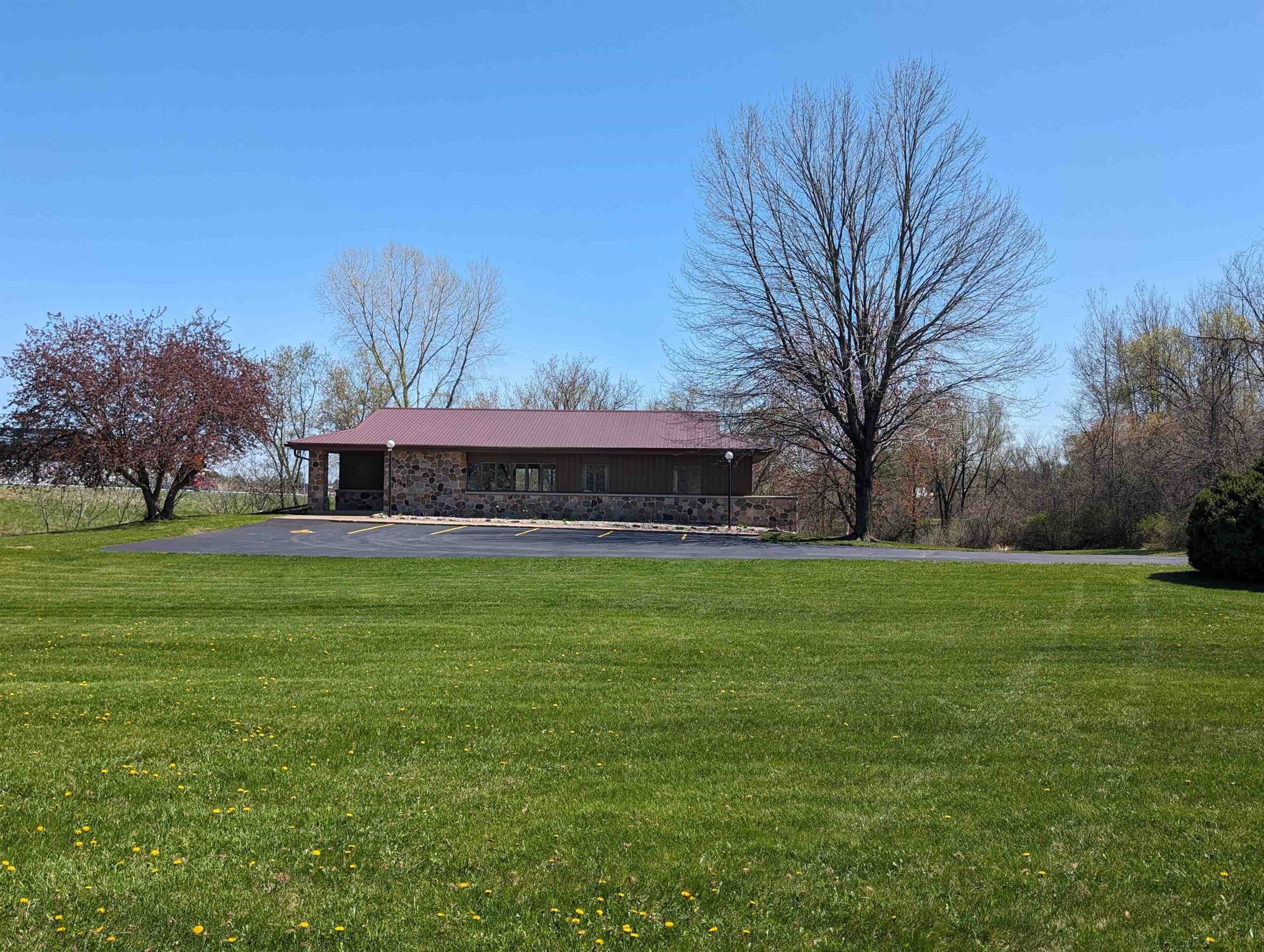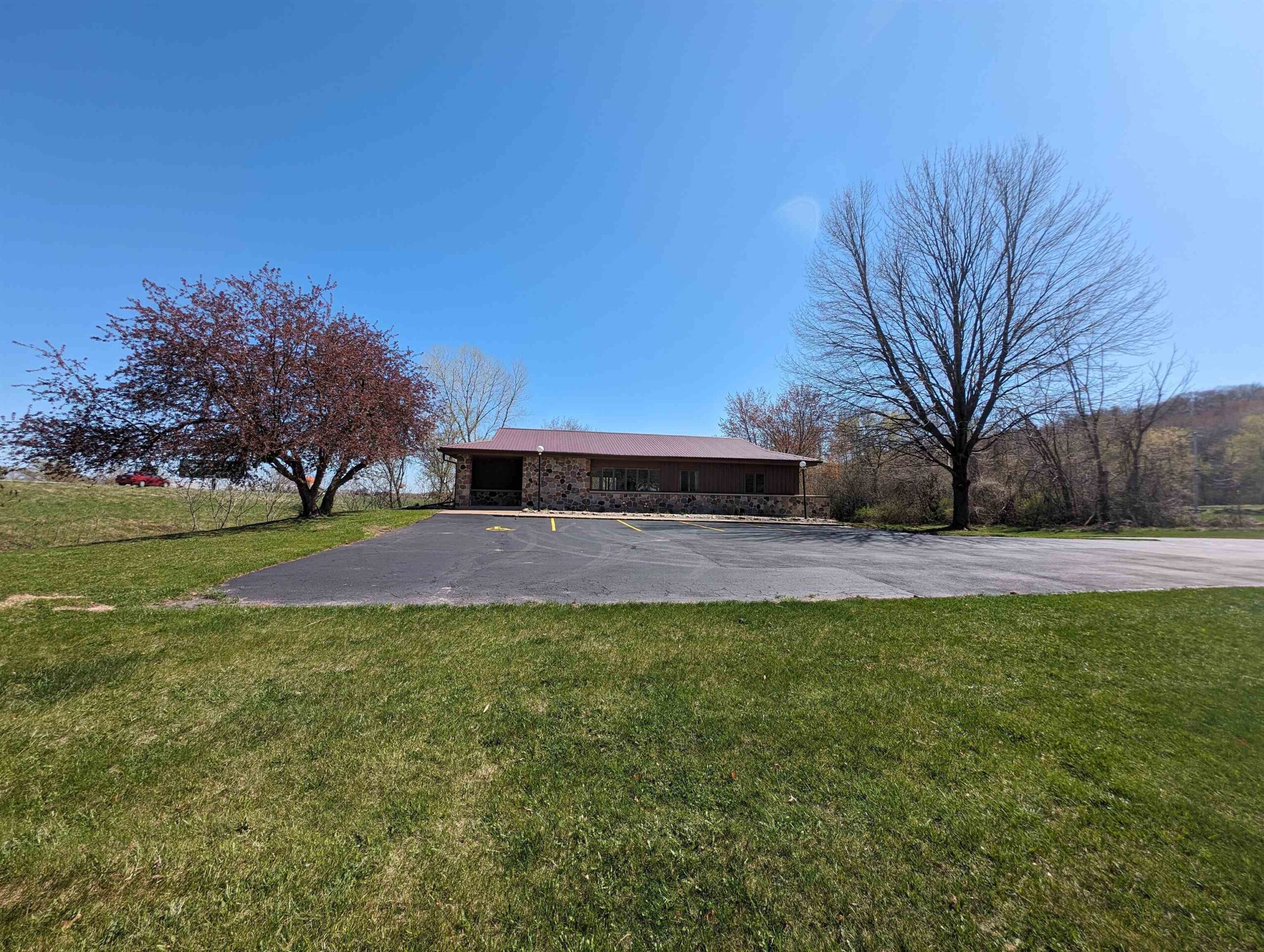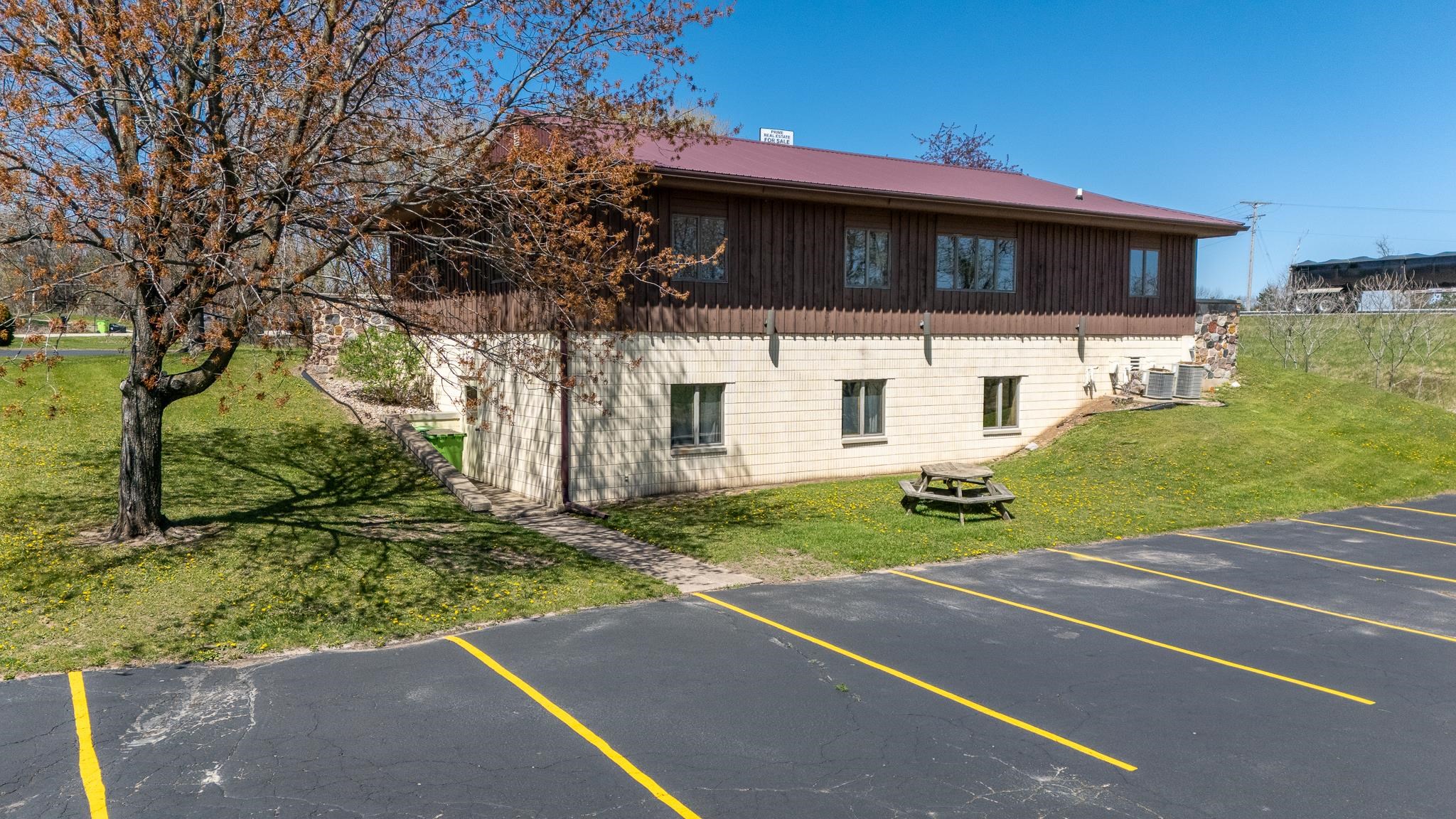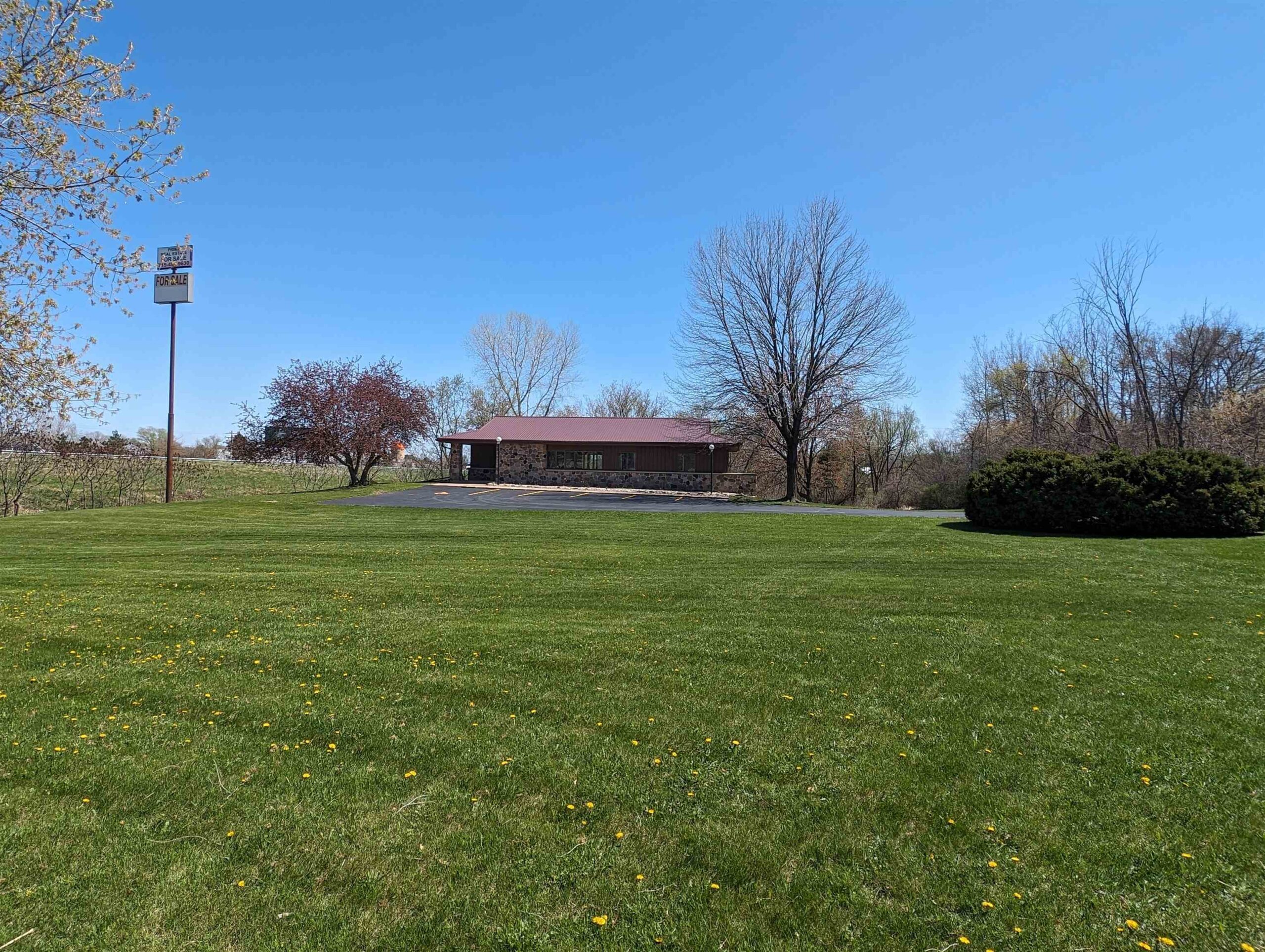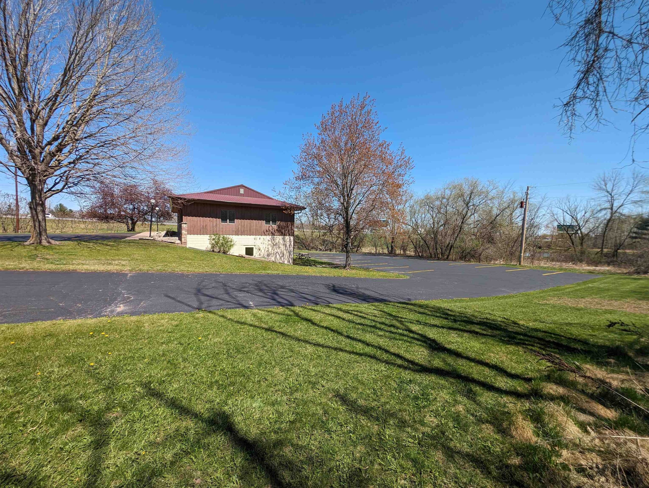 Well-built commercial building with excellent visibility from HWY 10 on the east side of Waupaca! 7.7 acres with it's own lake! Could definitely be multi-use/multi businesses! There's a commercial grade business sign for HWY 10 visibility. New roof, gutters, down spouts, parking lot repaired/sealed, staining exterior, bathrooms remodeled, painting, landscaping plus more updates.