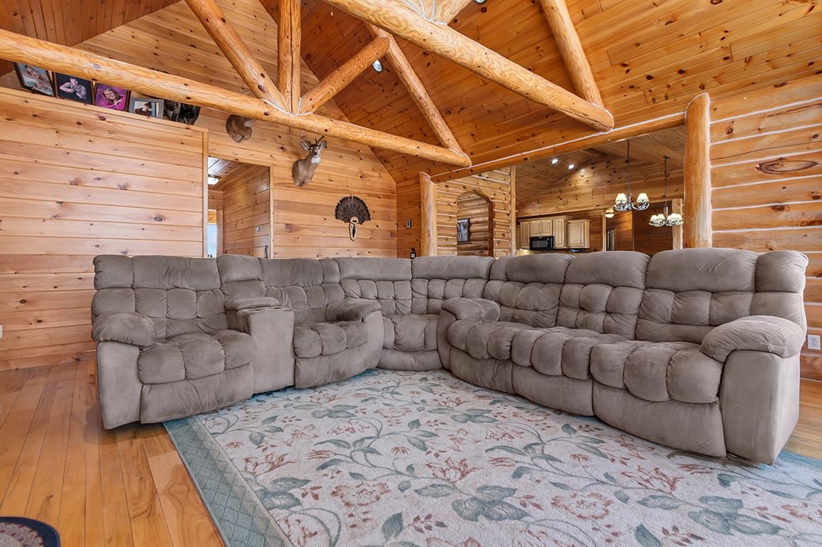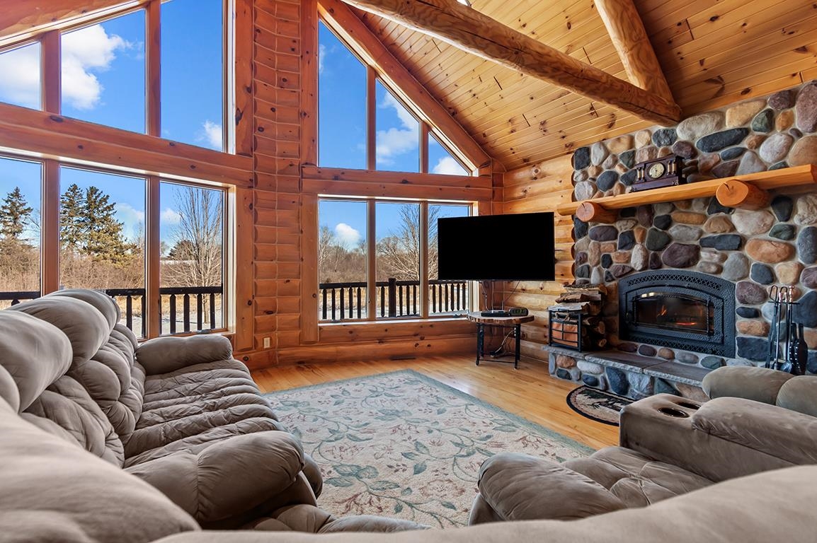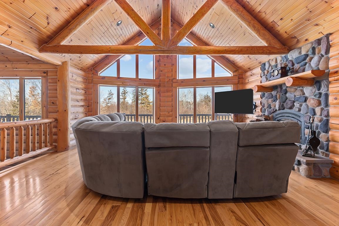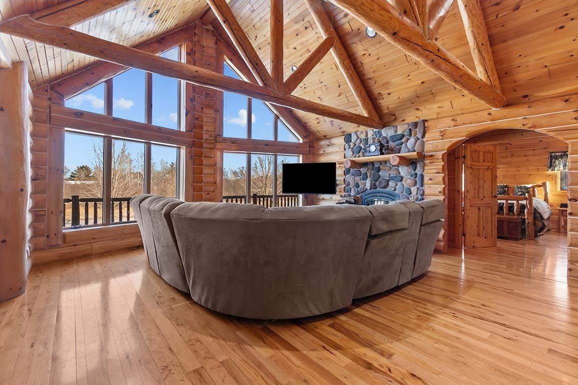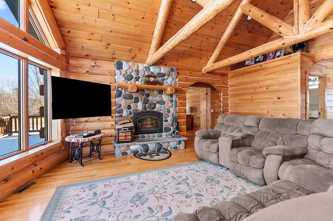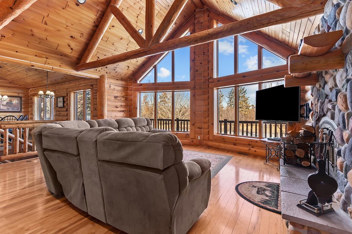 EVERYTHING YOU HAVE DREAMED OF - BREATHTAKING Log Beauty boasting 4BD(easily 5BD)/3.5BA on 11+ AC with 40x64 DET Dream Garage w/14x14 OH Doors, 16FT Sidewall, Welder Hook-Up & even WATER and Watch the WILDLIFE roam! PANORAMIC VIEWS from every Angle - Inviting Foyer leads to TOWERING LOG Ceilings in LR w/HW Floors, Floor-to-Ceiling WOOD FP, SPACIOUS KITCH w/BRKFST Bar, APPL INCL & Dining Area overlooking OPEN STAIRCASE to LL! FRENCH DOOR entry to 1st Fl PRIMARY BD, BEAUTIFUL BATH, & Walk-In Closet PLUS ADDT Full Bath & 2 ADDT Bedrooms on the MAIN! FANTASTIC 1st FL Laundry(WASH & DRY INCL) w/Half Bath & MUD Entry w/Storage Galore! IN-FLOOR HEAT in LL FAM/GAM/REC RM, ADDT BD, Full Bath & OFFICE or 5th BD - YOU CHOOSE! ATT HTD & INSL Garage 30x36 Garage - PRE-APPROVAL or POF Required!