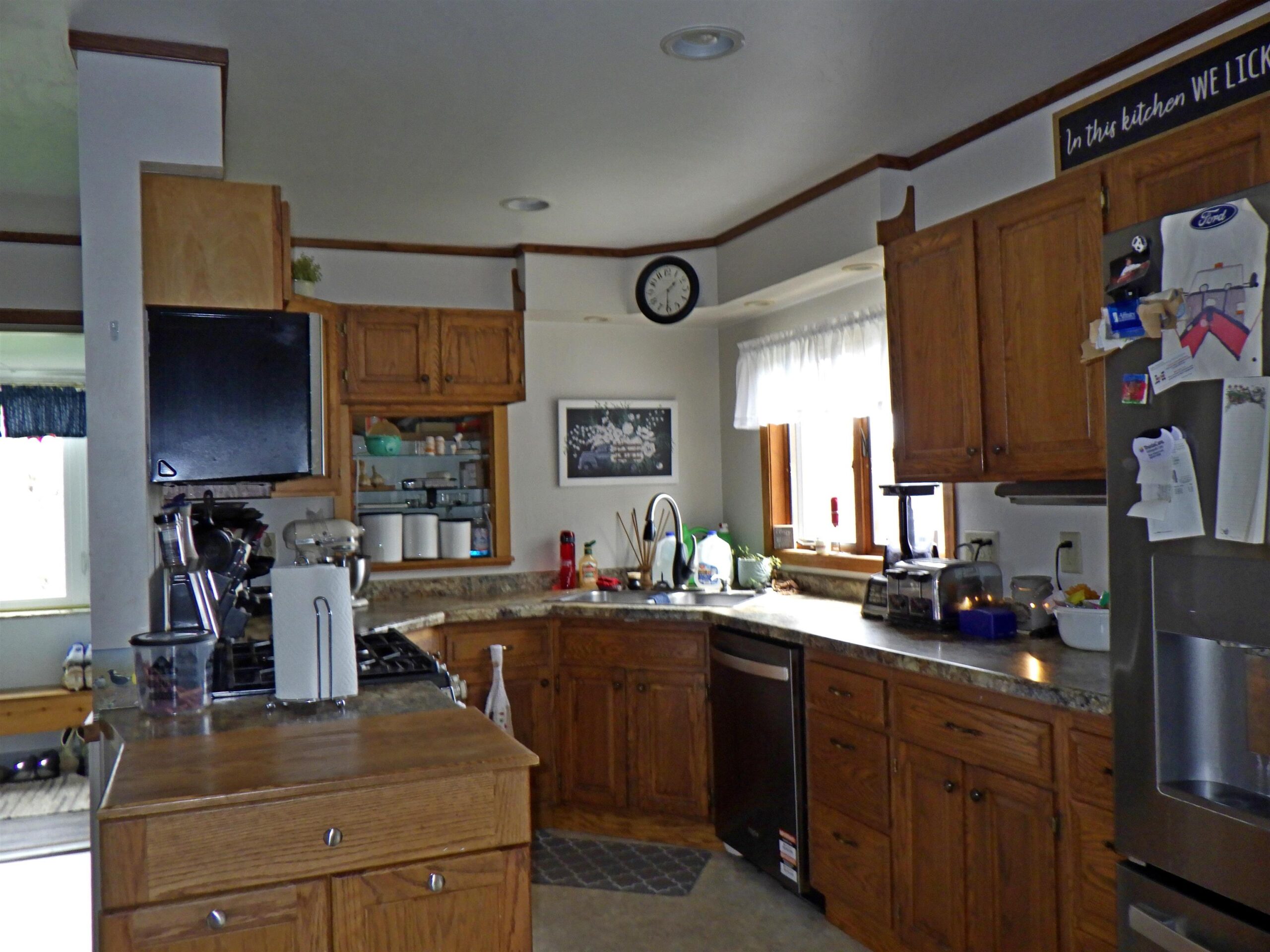 Dishwasher, stove, refrigerator, microwave, pool table