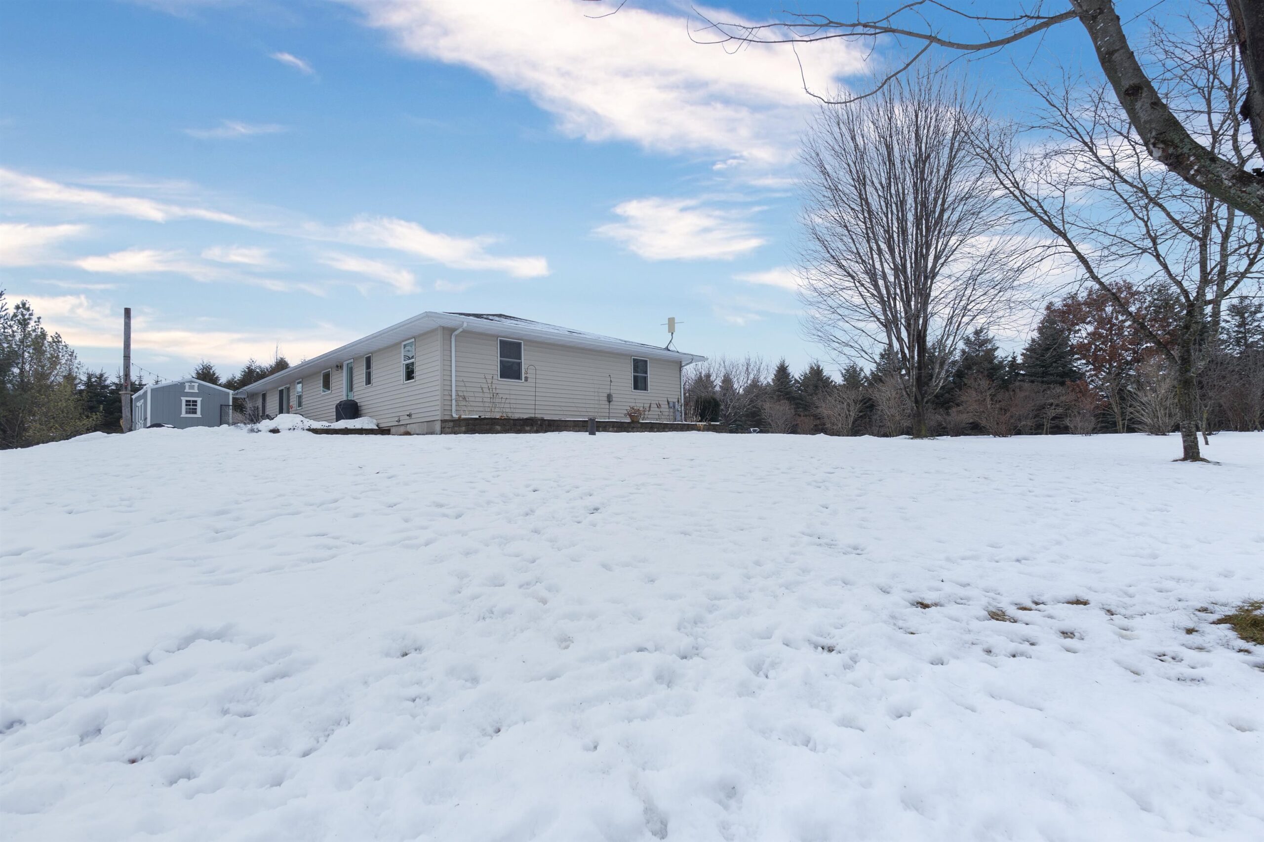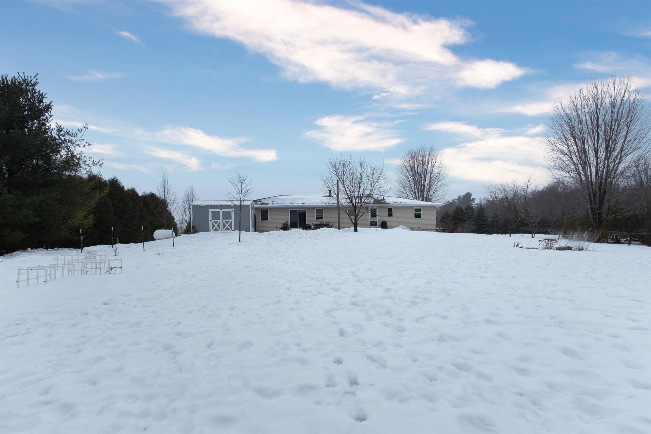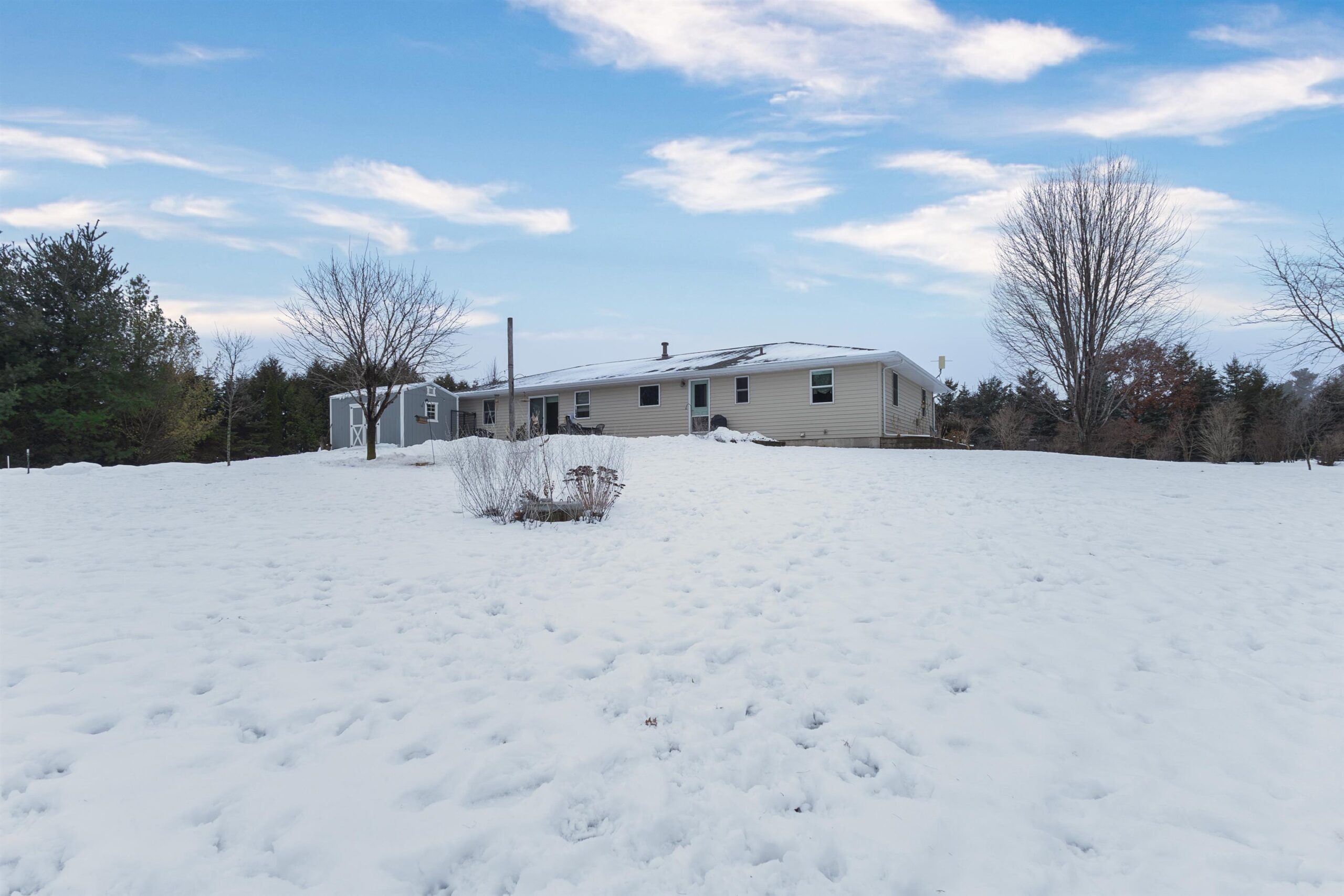 From sunrise to sunset, enjoy the beauty of country living on this peaceful 2.83-acre property. This charming ranch is nestled among mature trees—featuring butternut, plum, cedar, white pine and more—alongside vibrant flower beds that enhance the natural setting. The home offers numerous updates, including a newer roof, hard surface flooring in the main living area, a poured patio perfect for outdoor enjoyment, and a dog kennel for your pets. Whether you're relaxing indoors or exploring your private, partially wooded lot, this home offers the comfort and space you’ve been looking for. LP tank rented. Showings begin 1/14/26. Offers to be reviewed on 1/19/26. Don’t miss your chance to make this country retreat your own!