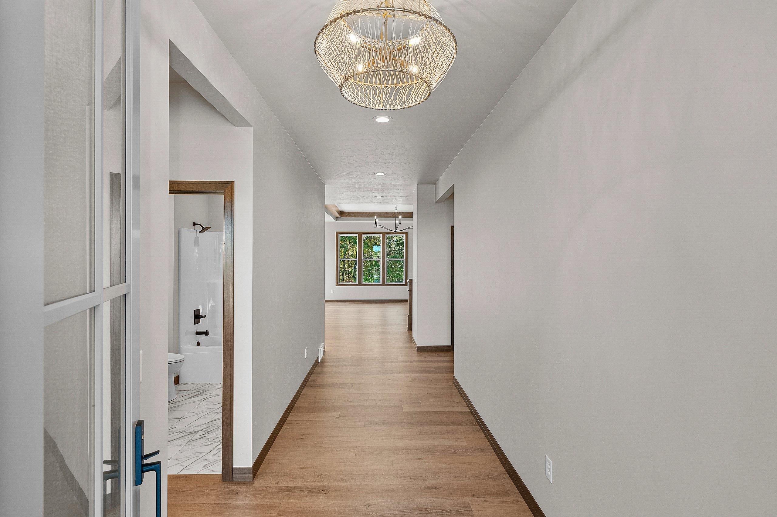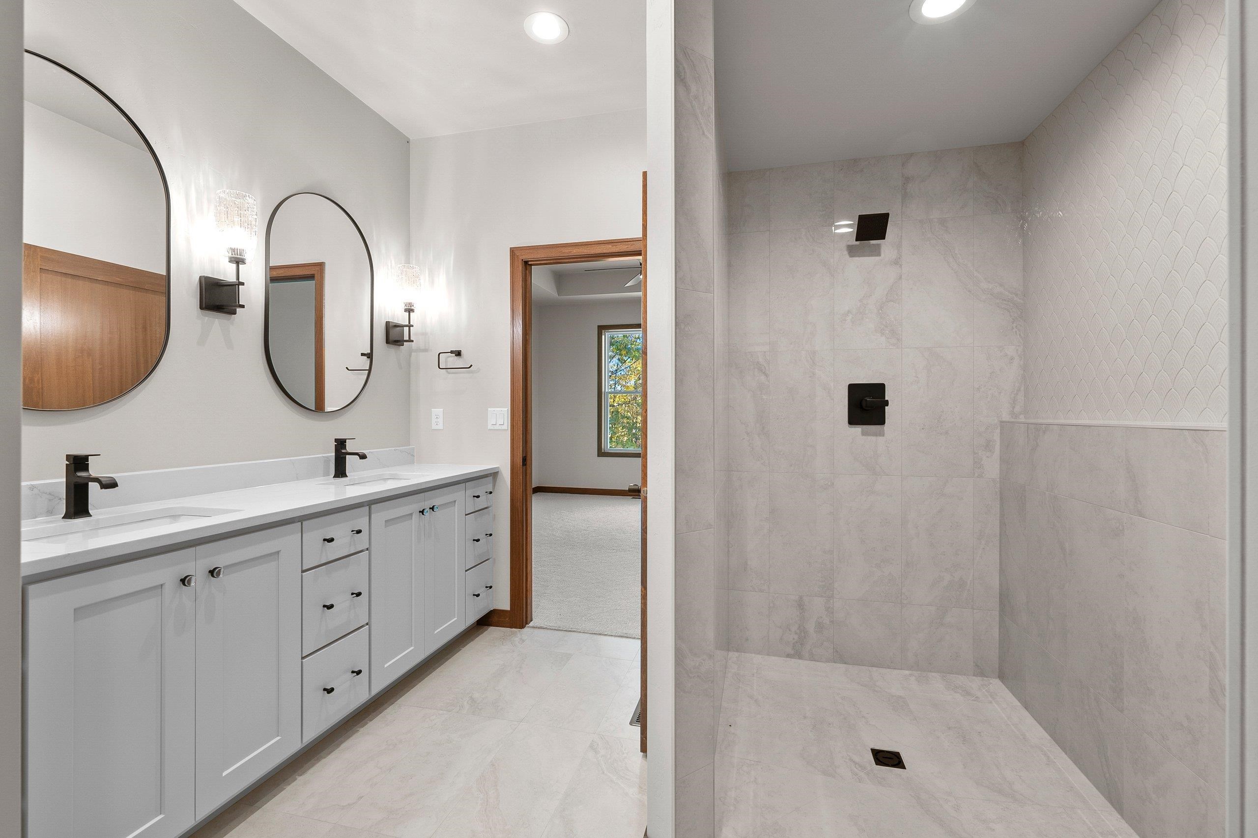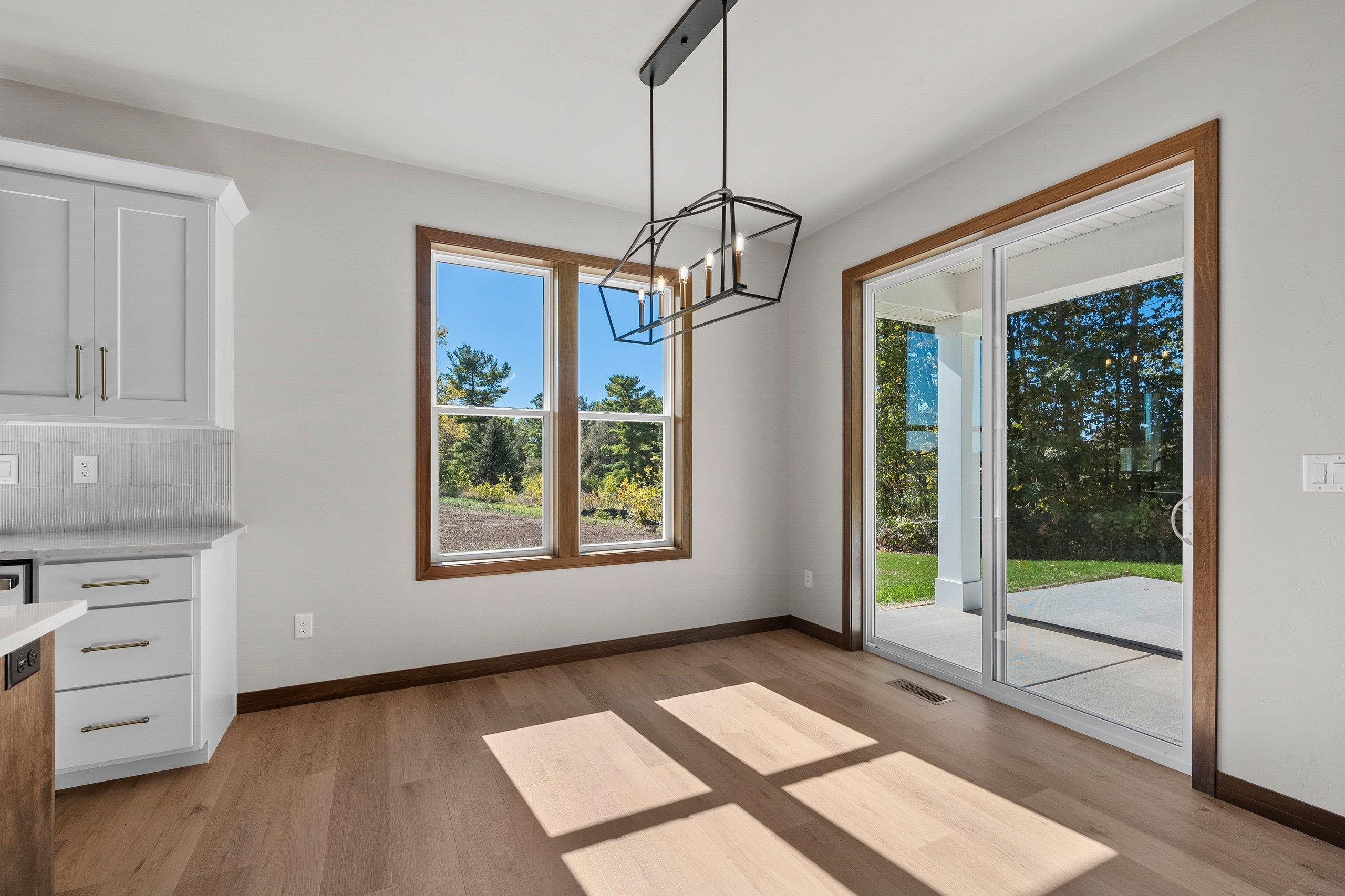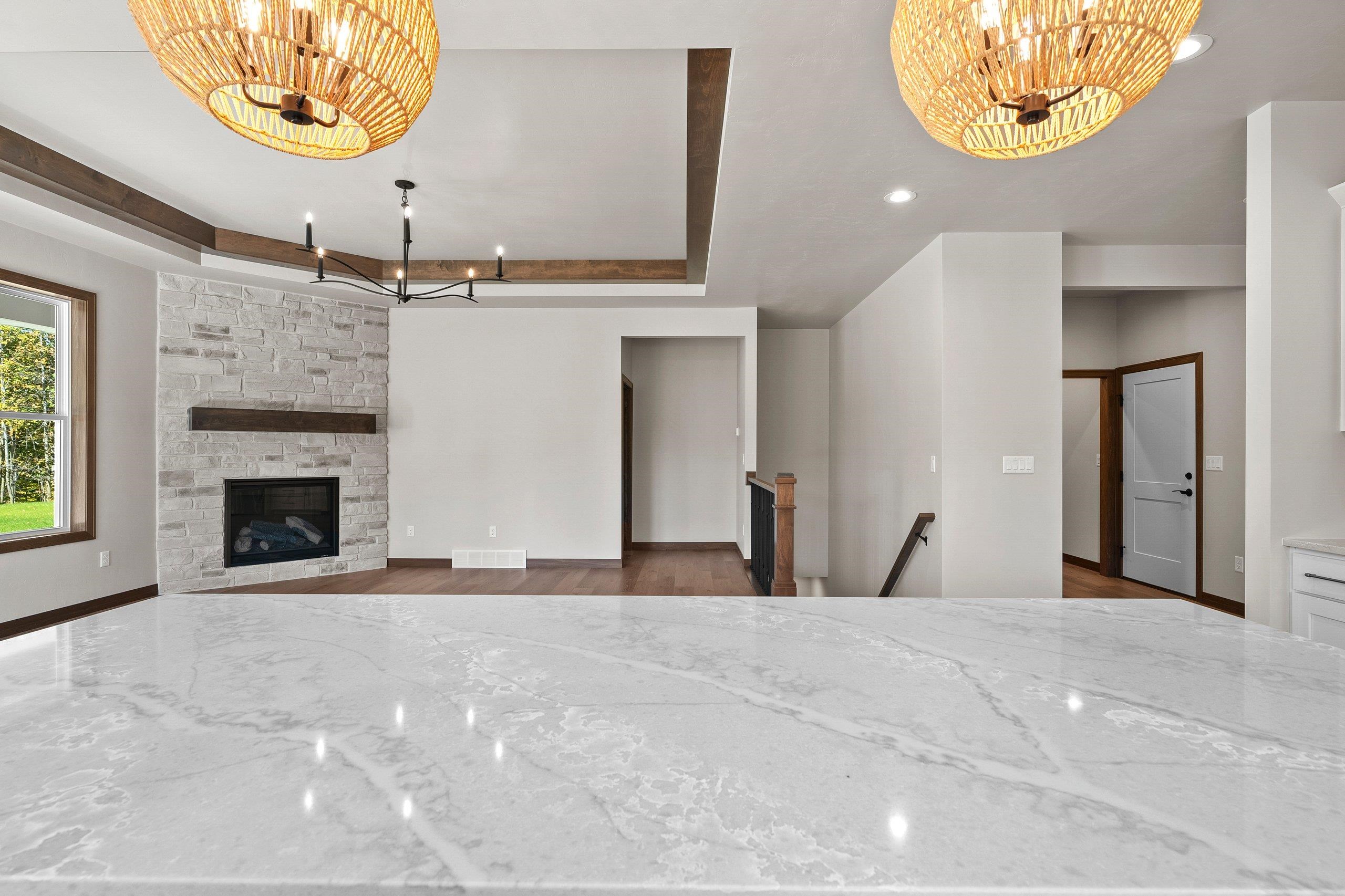 Enjoy the privacy & convenience of this beautiful zero entry condo located in the desirable Woods Reserve. Spacious open concept design flows into cozy LR w/ floor-to-ceiling stone fireplace, tray ceiling w/ wood beam perimeter & lg daylight windows. You will love the amazing kitchen w/ oversized center island, custom cabinets, quartz countertops & pantry. From the dining area, step outside to a covered porch which provides great outdoor space for entertaining w/ private lot backing up to Baird's Creek. Primary Bedroom offers a peaceful retreat w/ tray ceiling & walk-in closet. Primary Bath includes dual sinks & zero entry tiled walk-in shower. Other amenities include a finished garage & LL stubbed bath for future expansion.