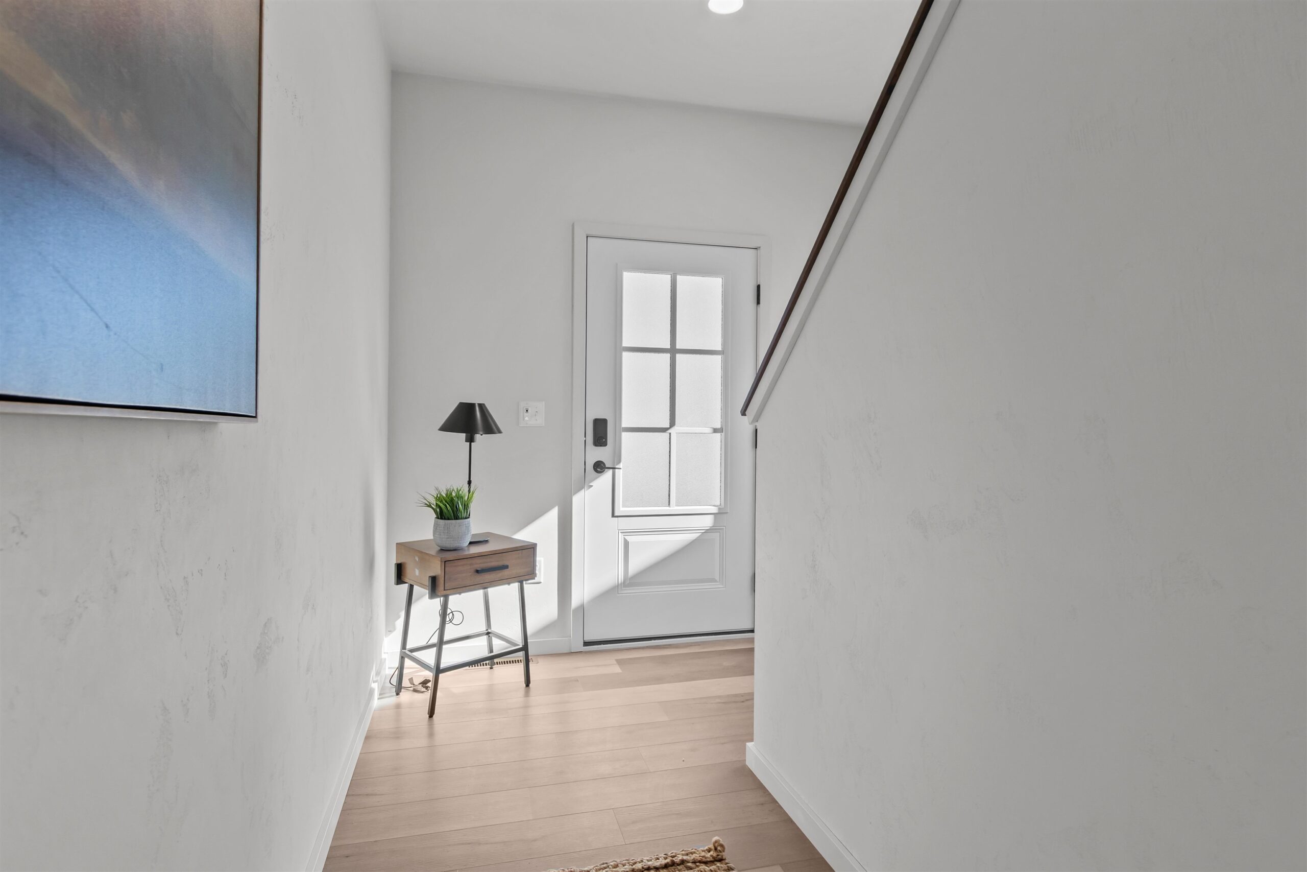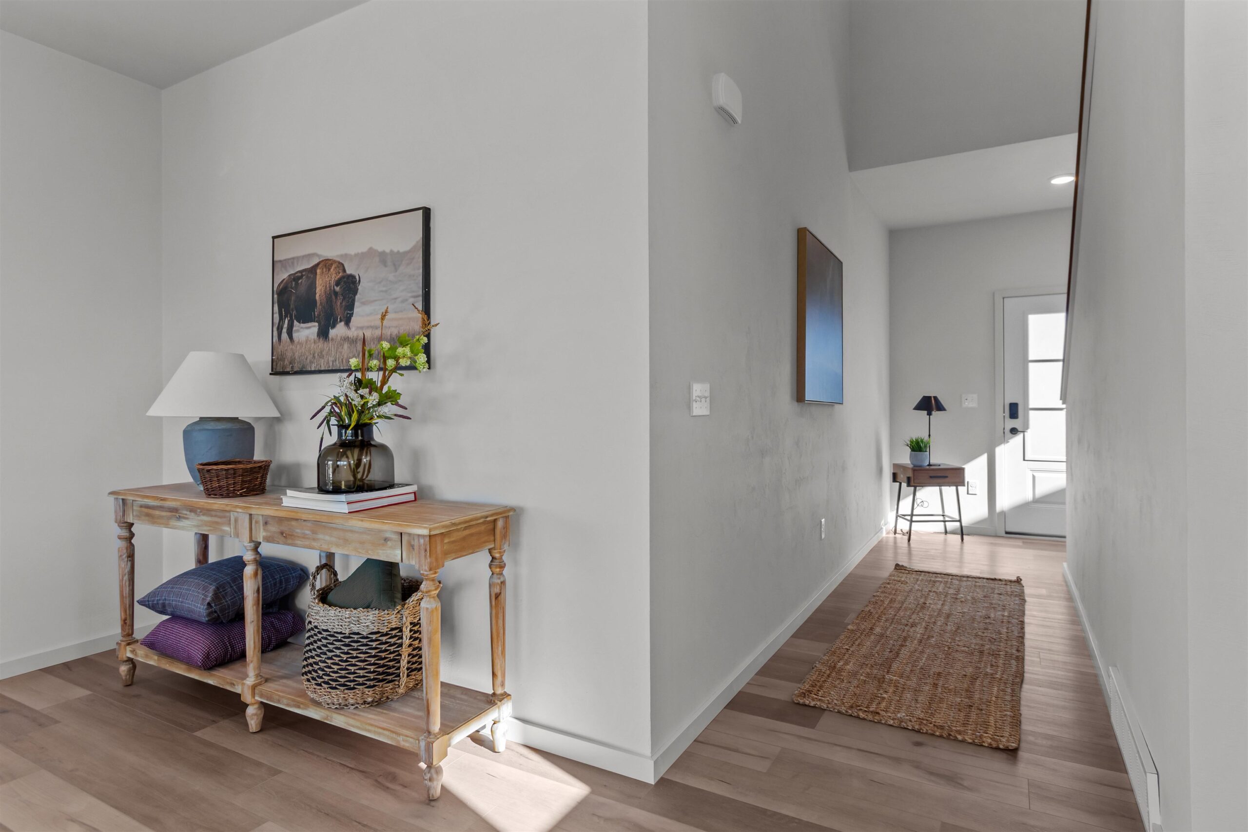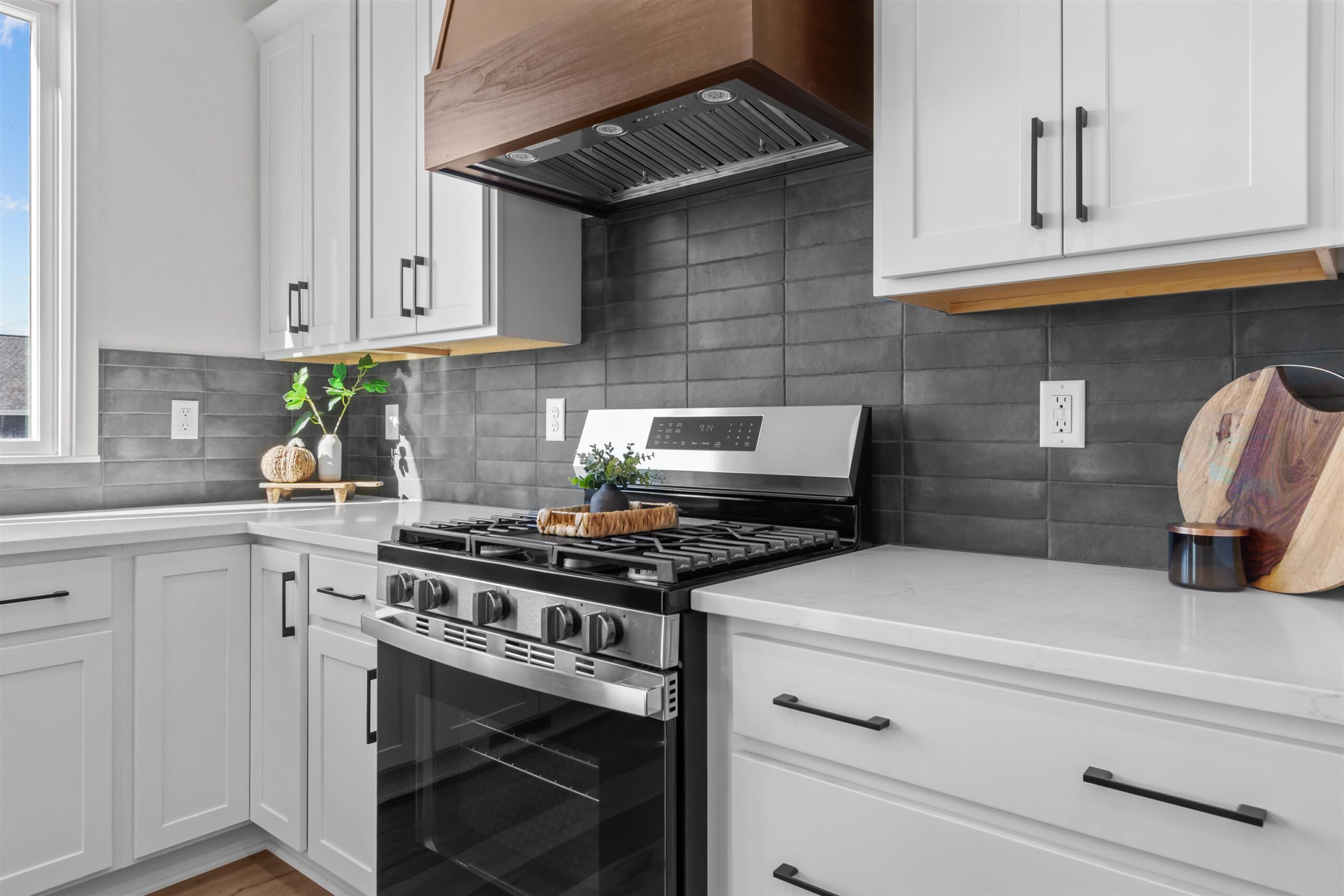 Kitchen appliances, smart thermostat, video doorbell, front door lock, garage door opener, sidewalk, 1 year builder home warranty.