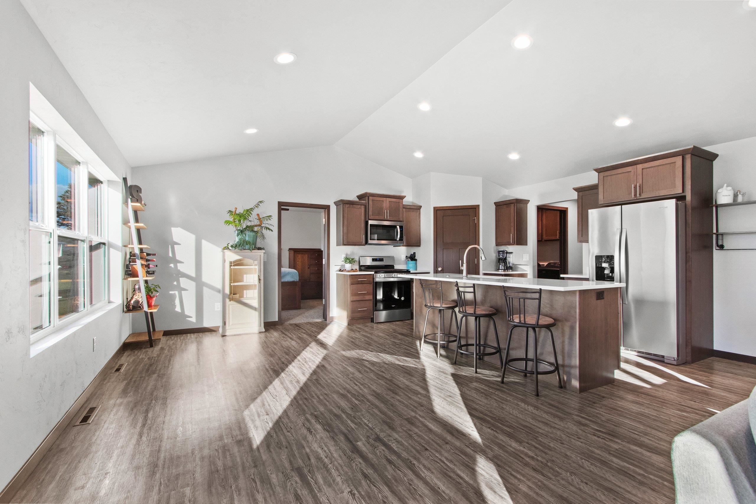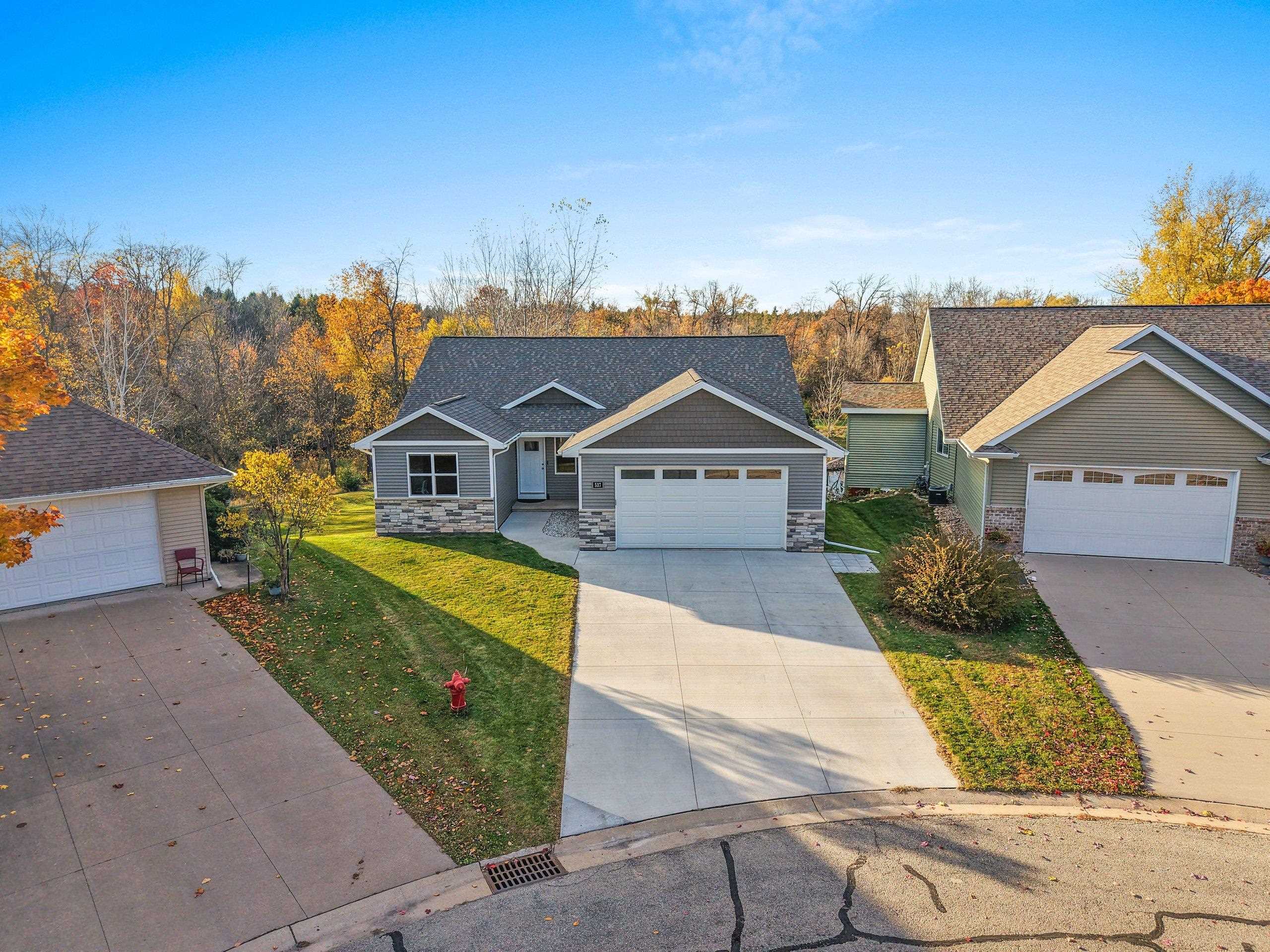 Nearly new Tom McHugh Construction walkout ranch overlooking a serene pond and the 3rd hole of Grand View Golf Club. Located at the end of a quiet cul-de-sac in an established Hortonville neighborhood surrounded by mature trees and wildlife. This impeccably maintained 3-bedroom, 2-bath home features an open-concept layout, quartz countertops, and a walk-in pantry with custom wood shelving. The spacious primary suite includes a large walk-in closet with direct access to the laundry room. Exceptional craftsmanship, peaceful views, and a prime location make this home a rare find.