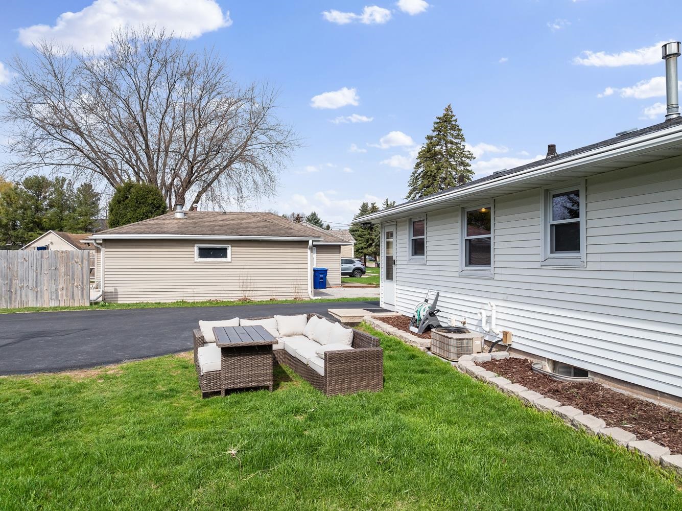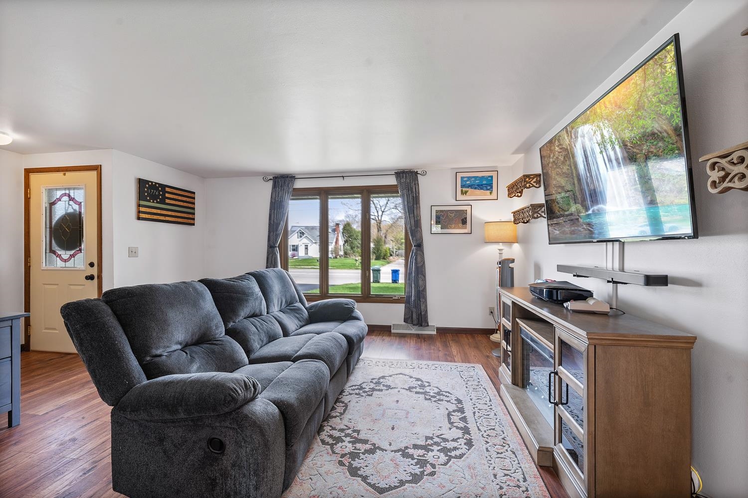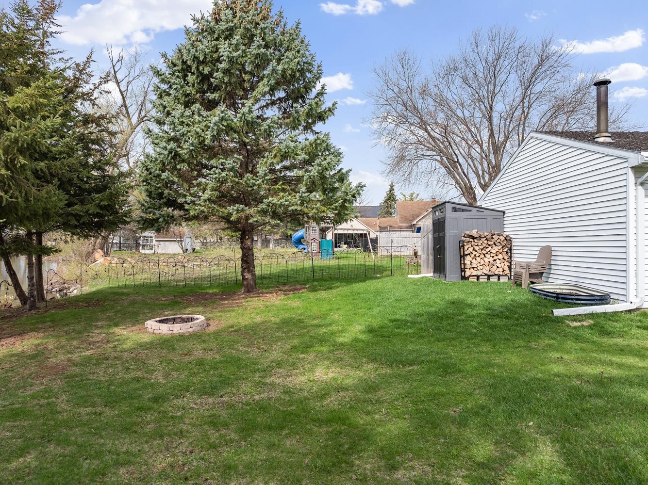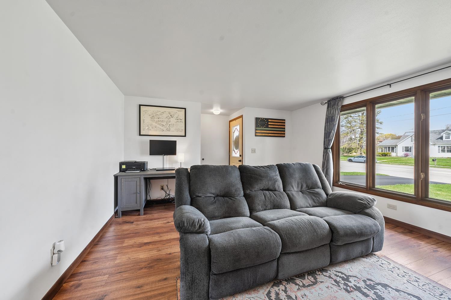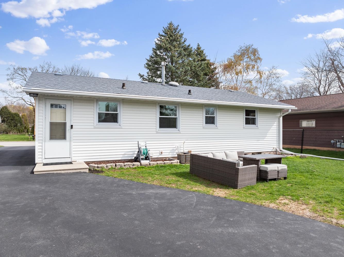 Charming 3BR/1BA ranch features kitchen w/ appliances, LR w/ casement windows & handy locker, and bedrooms w/ hardwood floor! Bathroom w/ modern vanity, fixtures, and updated shower surround ('21). Kitchen exits home to back yard w/ 2.5 stall garage w/ updated opener ('23) & peaceful natural scene on the edge of a shared pond. LL offers a large partially finished rec-room, clean & dry storage, and laundry room w/ included washer+dryer! Tankless WH ('21), sump-pump new ('25), updated receptacles ('22), and so much more! Closing end of June preferred.