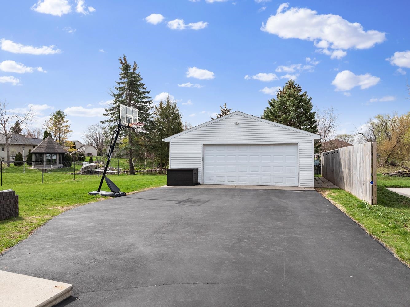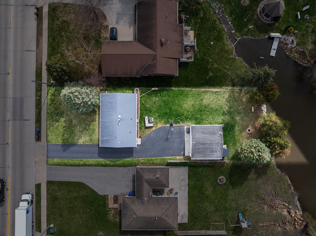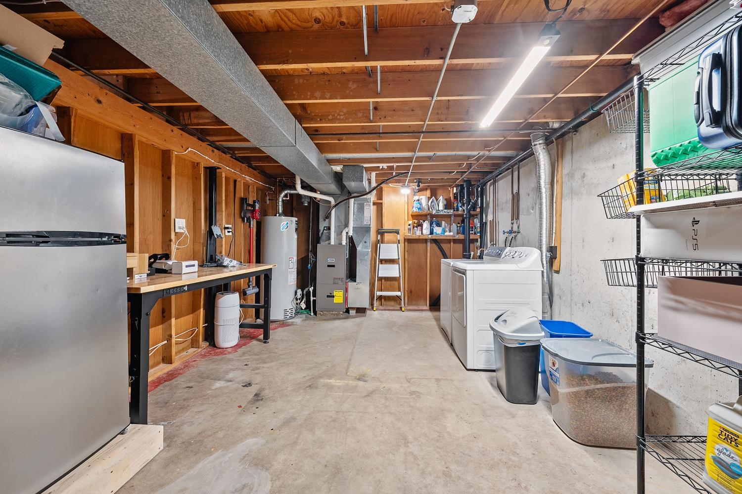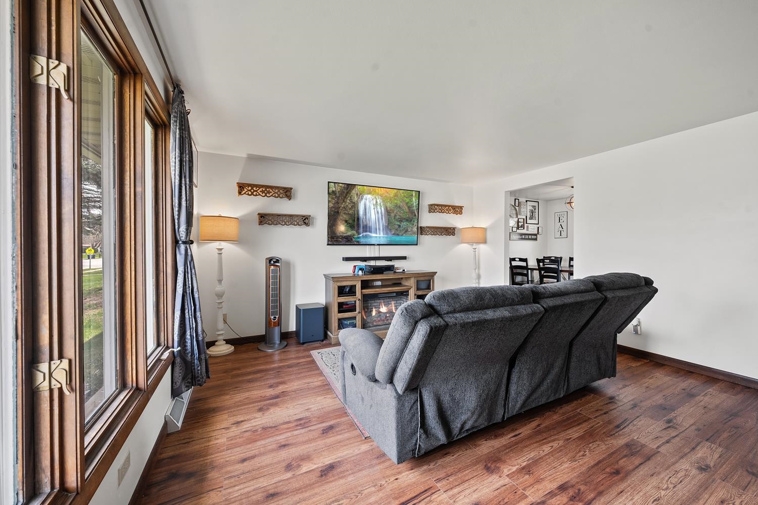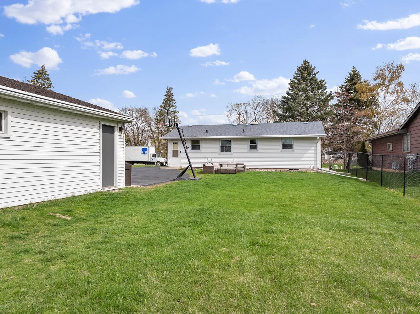 Charming 3BR/1BA ranch features kitchen w/ appliances, LR w/ casement windows & handy locker, and bedrooms w/ hardwood floor! Bathroom w/ modern vanity, fixtures, and updated shower surround ('21). Kitchen exits home to back yard w/ 2.5 stall garage w/ updated opener ('23) & peaceful natural scene on the edge of a shared pond. LL offers a large partially finished rec-room, clean & dry storage, and laundry room w/ included washer+dryer! Tankless WH ('21), sump-pump new ('25), updated receptacles ('22), and so much more! Closing end of June preferred.