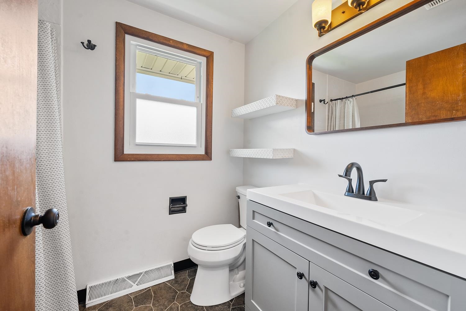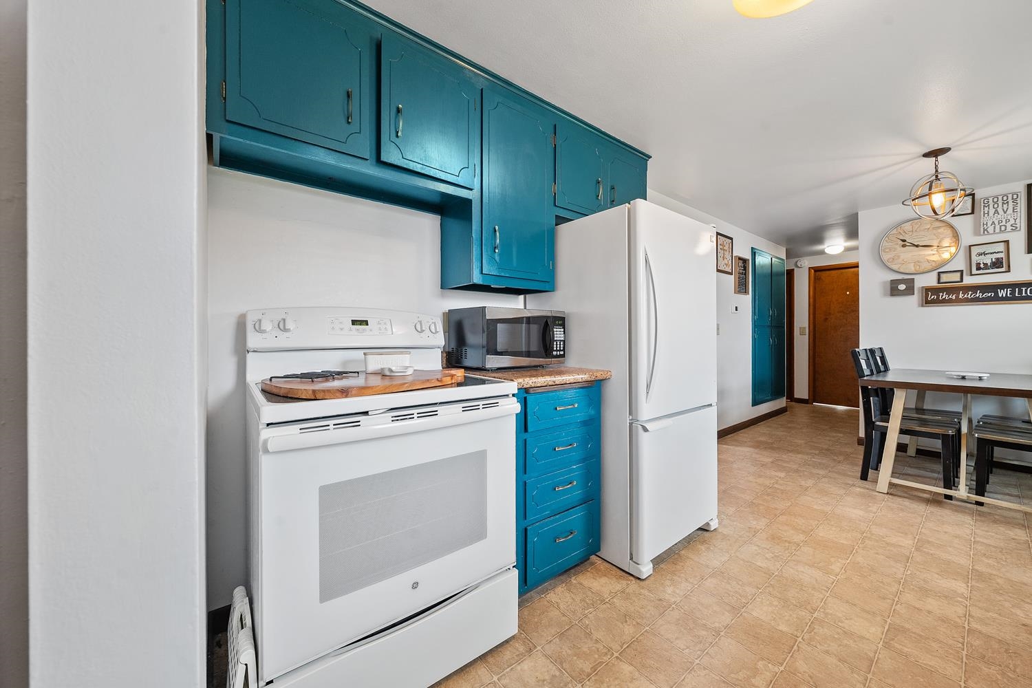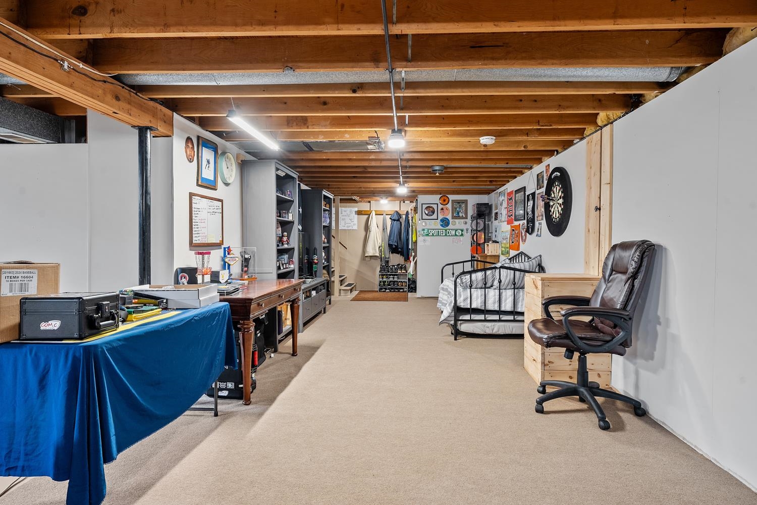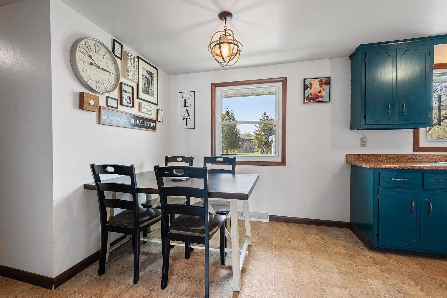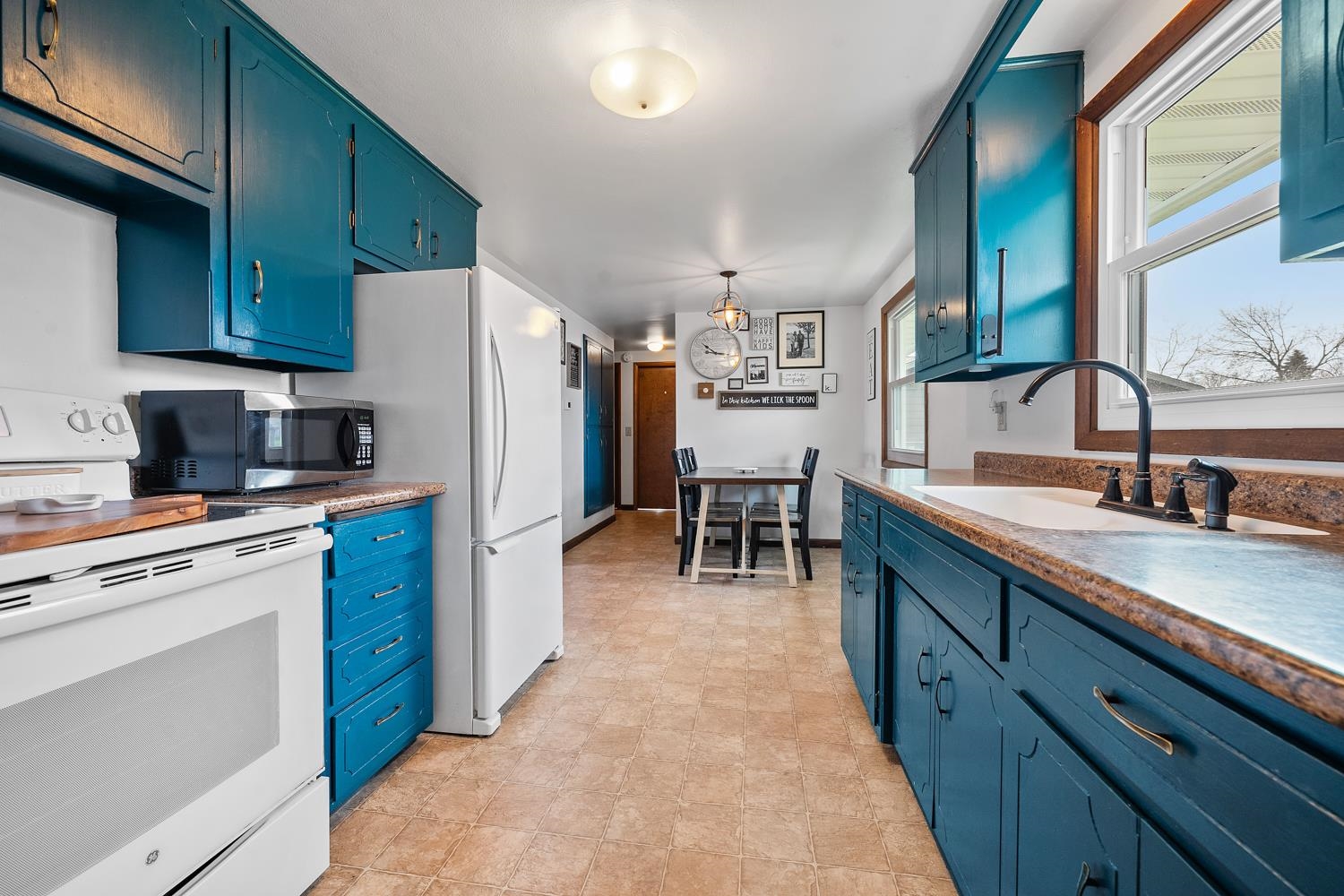 Charming 3BR/1BA ranch features kitchen w/ appliances, LR w/ casement windows & handy locker, and bedrooms w/ hardwood floor! Bathroom w/ modern vanity, fixtures, and updated shower surround ('21). Kitchen exits home to back yard w/ 2.5 stall garage w/ updated opener ('23) & peaceful natural scene on the edge of a shared pond. LL offers a large partially finished rec-room, clean & dry storage, and laundry room w/ included washer+dryer! Tankless WH ('21), sump-pump new ('25), updated receptacles ('22), and so much more! Closing end of June preferred.