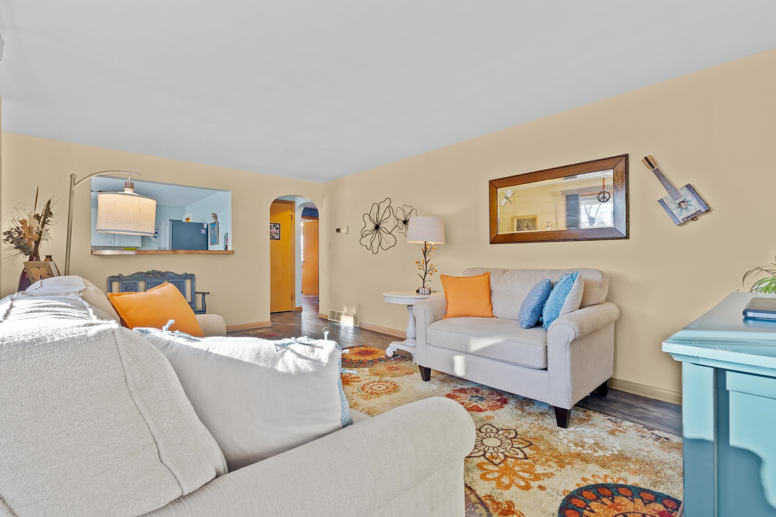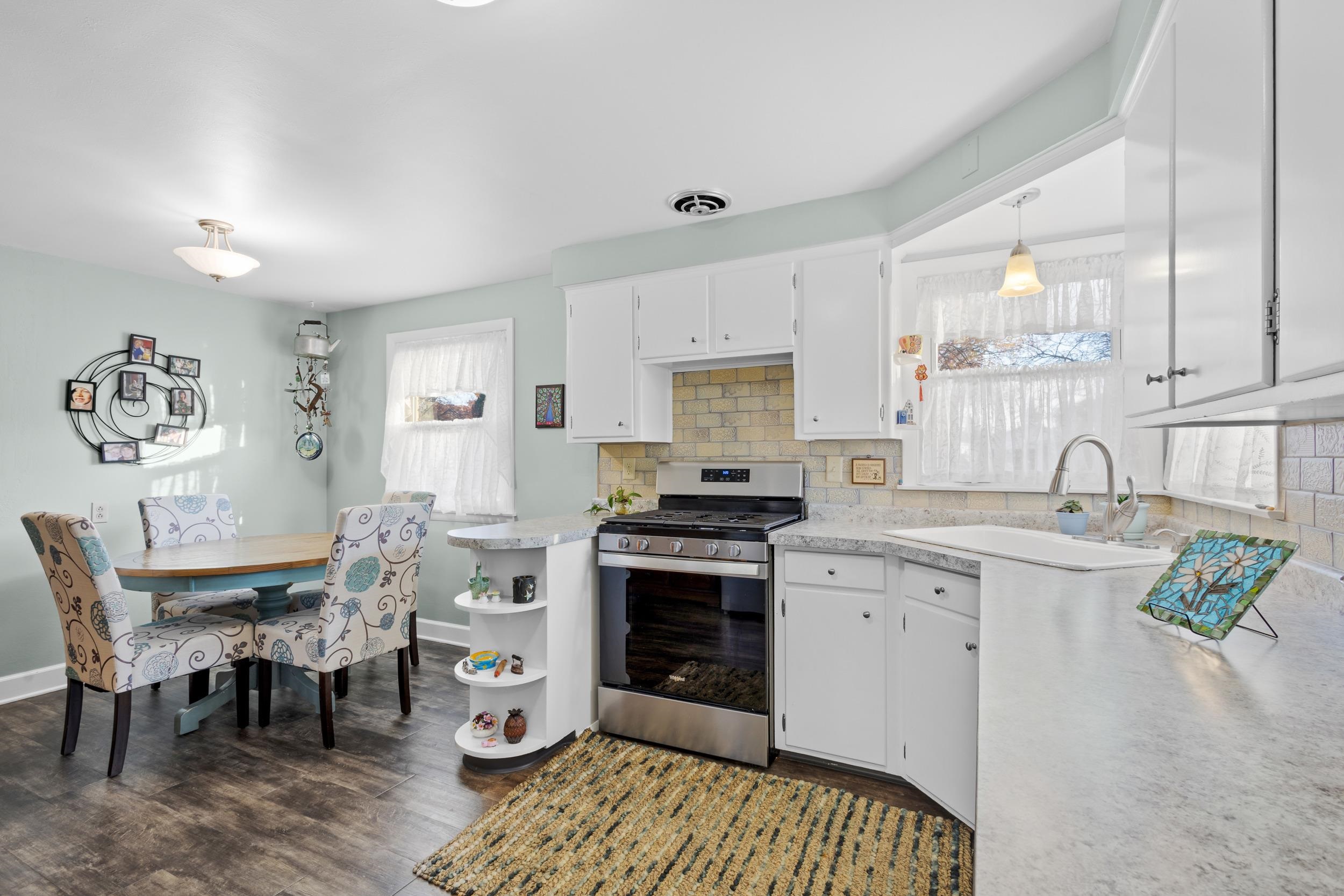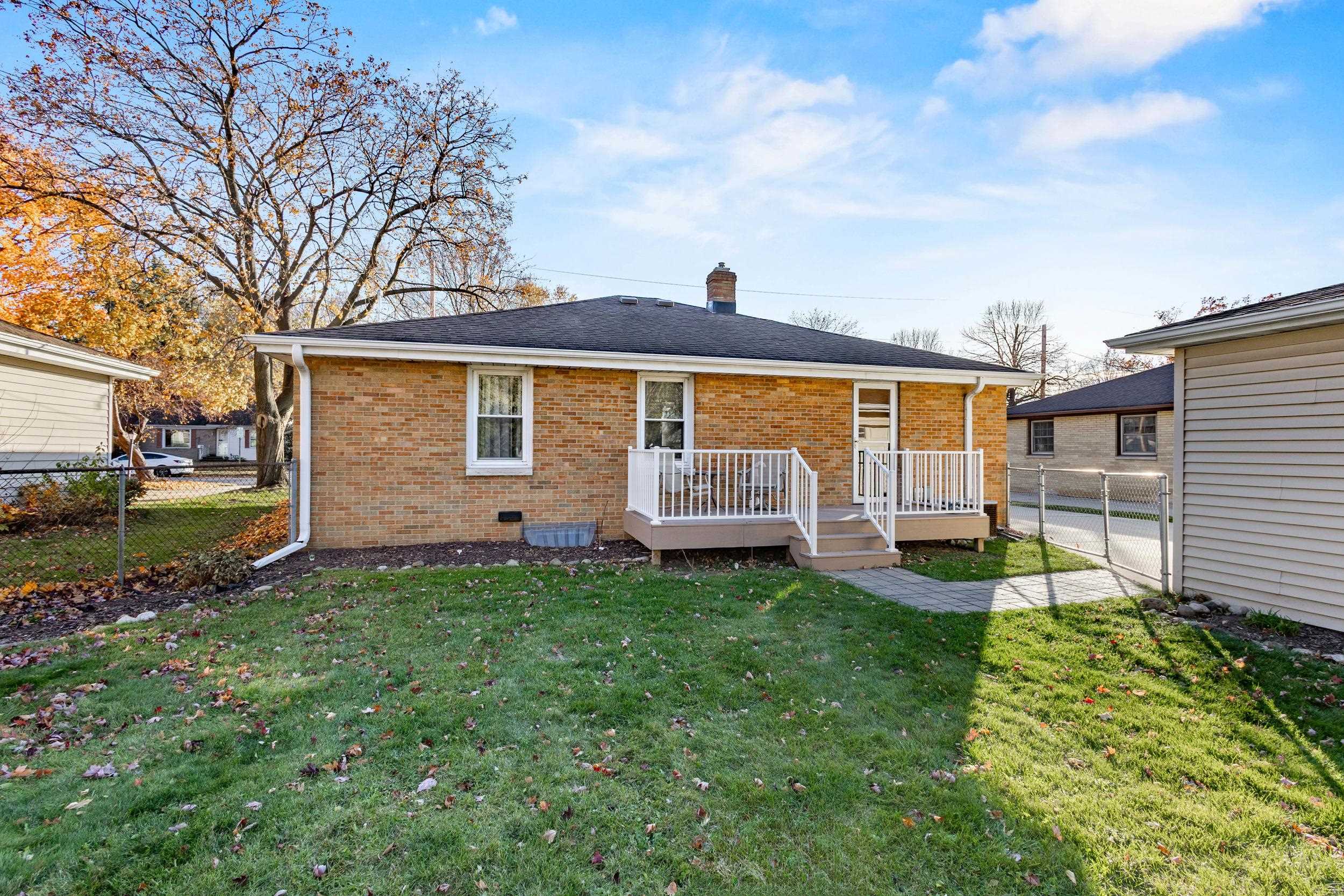 This all-brick updated 3-bedroom home sits on a landscaped fenced-in yard! The updated Cook's Delight kitchen includes an appliance package and opens up to a bright, cheery living room. Spacious bedrooms with wood floors, a full basement, newer deck and windows, detached 2-car garage. Just a walk to the park and shopping! Come see this gem for yourself!