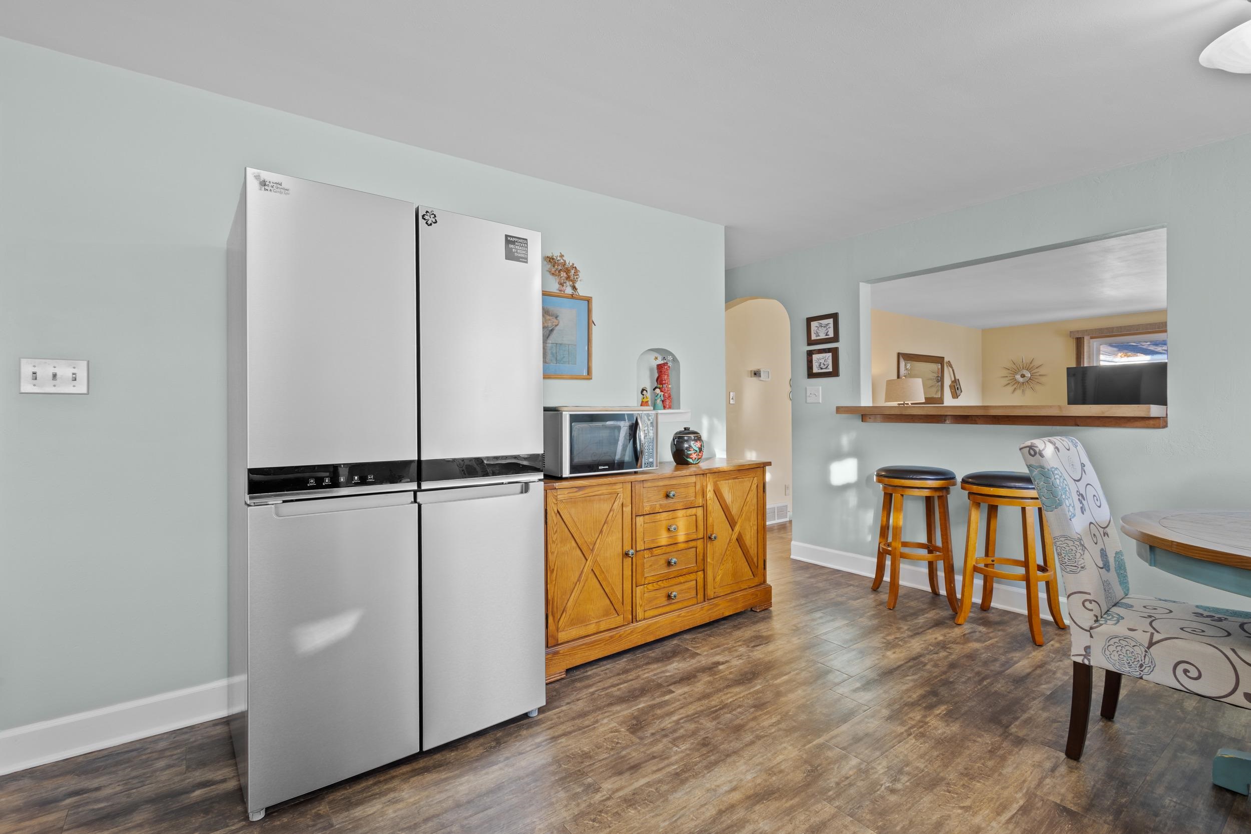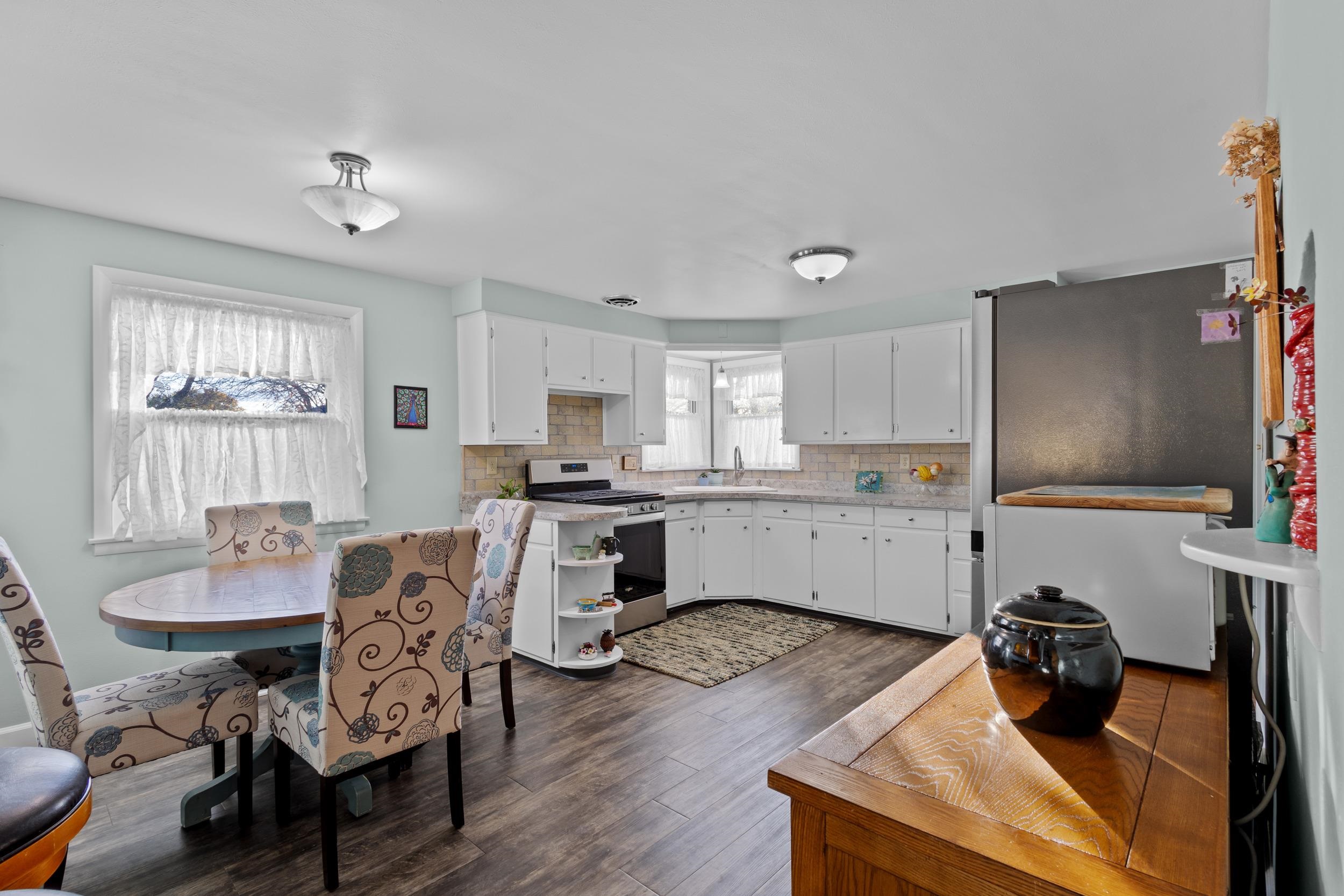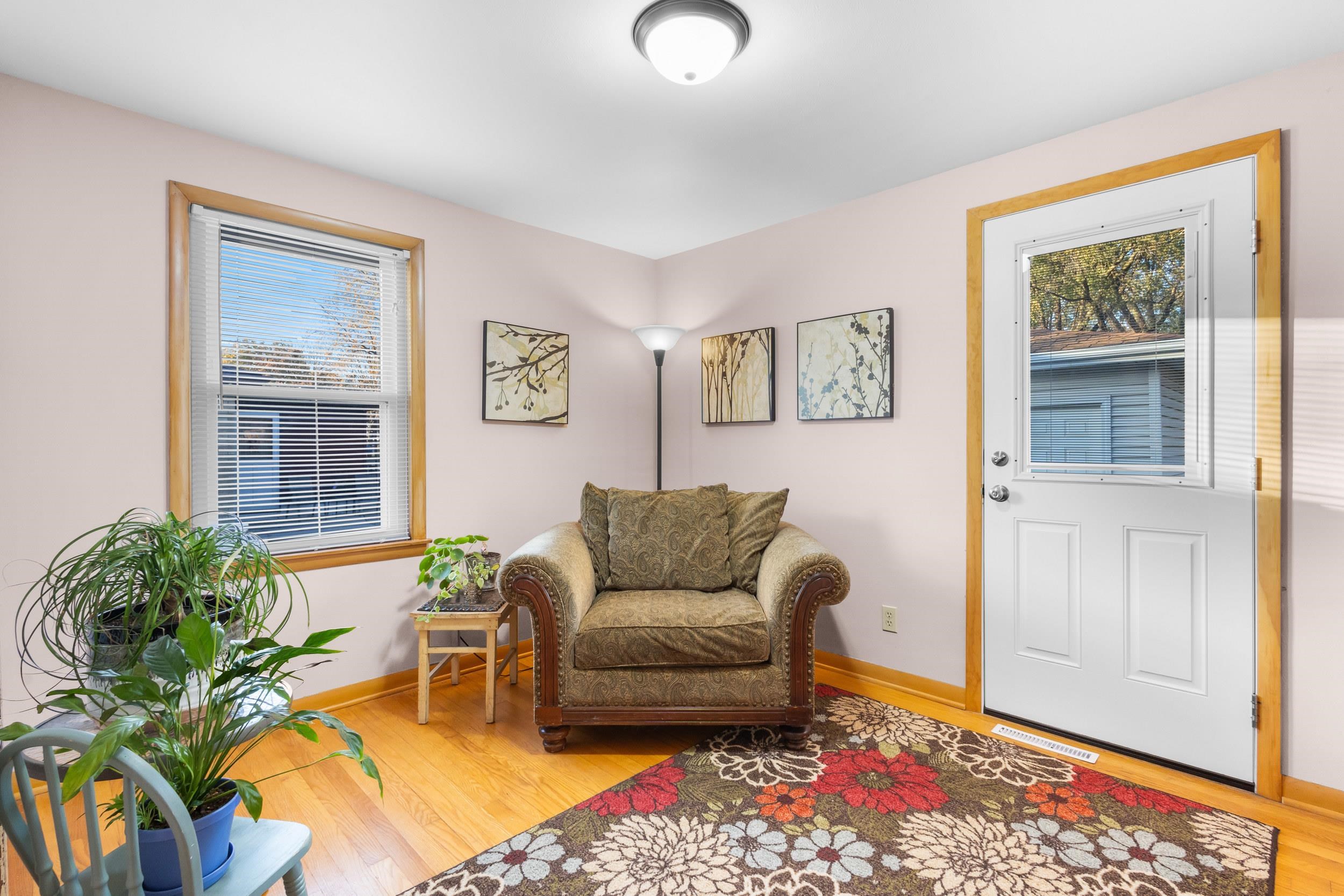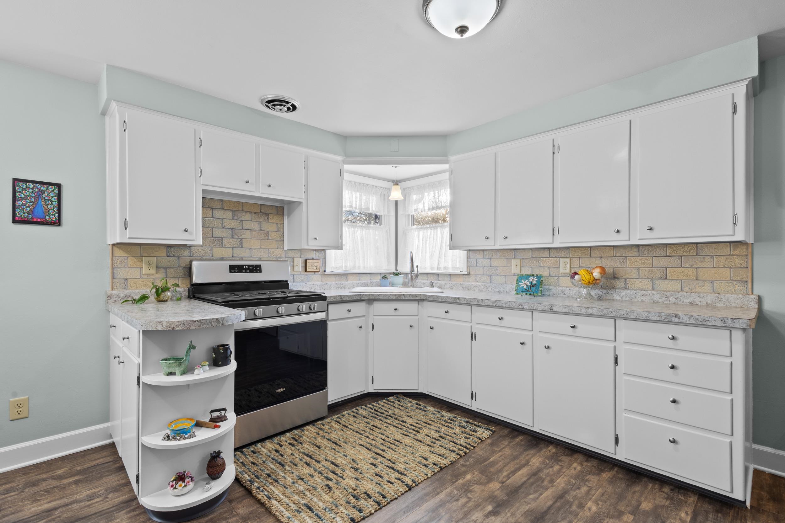 This all-brick updated 3-bedroom home sits on a landscaped fenced-in yard! The updated Cook's Delight kitchen includes an appliance package and opens up to a bright, cheery living room. Spacious bedrooms with wood floors, a full basement, newer deck and windows, detached 2-car garage. Just a walk to the park and shopping! Come see this gem for yourself!