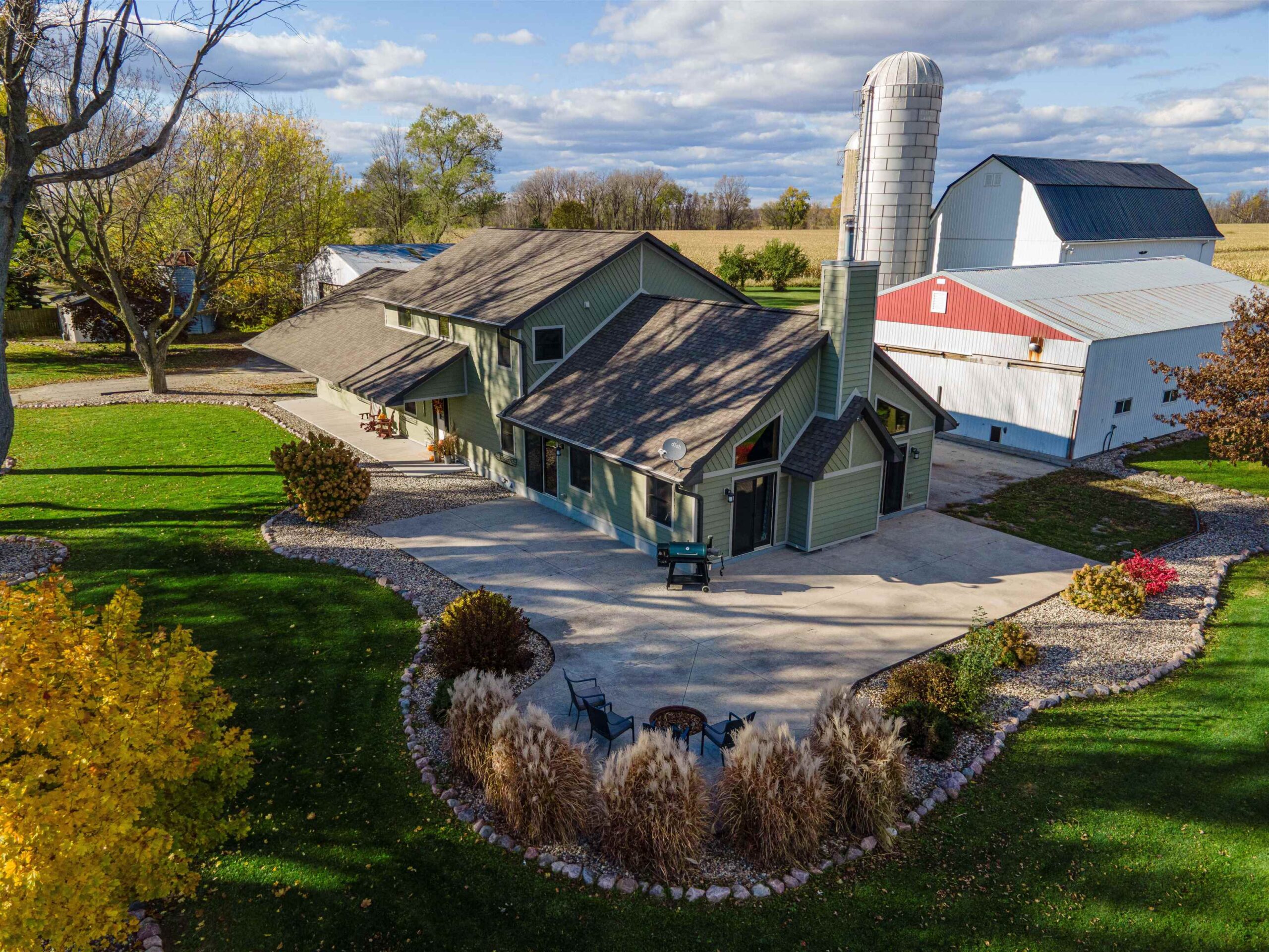 Step inside this knotty pine masterpiece featuring vaulted ceilings, exposed beams all situated on 16.6 acres. The open floor plan flows beautifully from the spacious living room with a wood-burning fireplace to the gorgeous kitchen with cabinets galore, a massive island, and an inviting dining area. Outdoors is a dream for horse lovers featuring 7 acres of enclosed electric fencing, ample pasture space, and room to add stalls or an arena. Multiple outbuildings include a 46x60 heated shop, 24x36, 12x16, and 50x90 structures, plus silos, grain bins, and utility sheds offering endless storage for tack, feed, trailers, and equipment. Bring your horses and your hobbies this one has it all! Priced below appraised value—gain instant equity!
