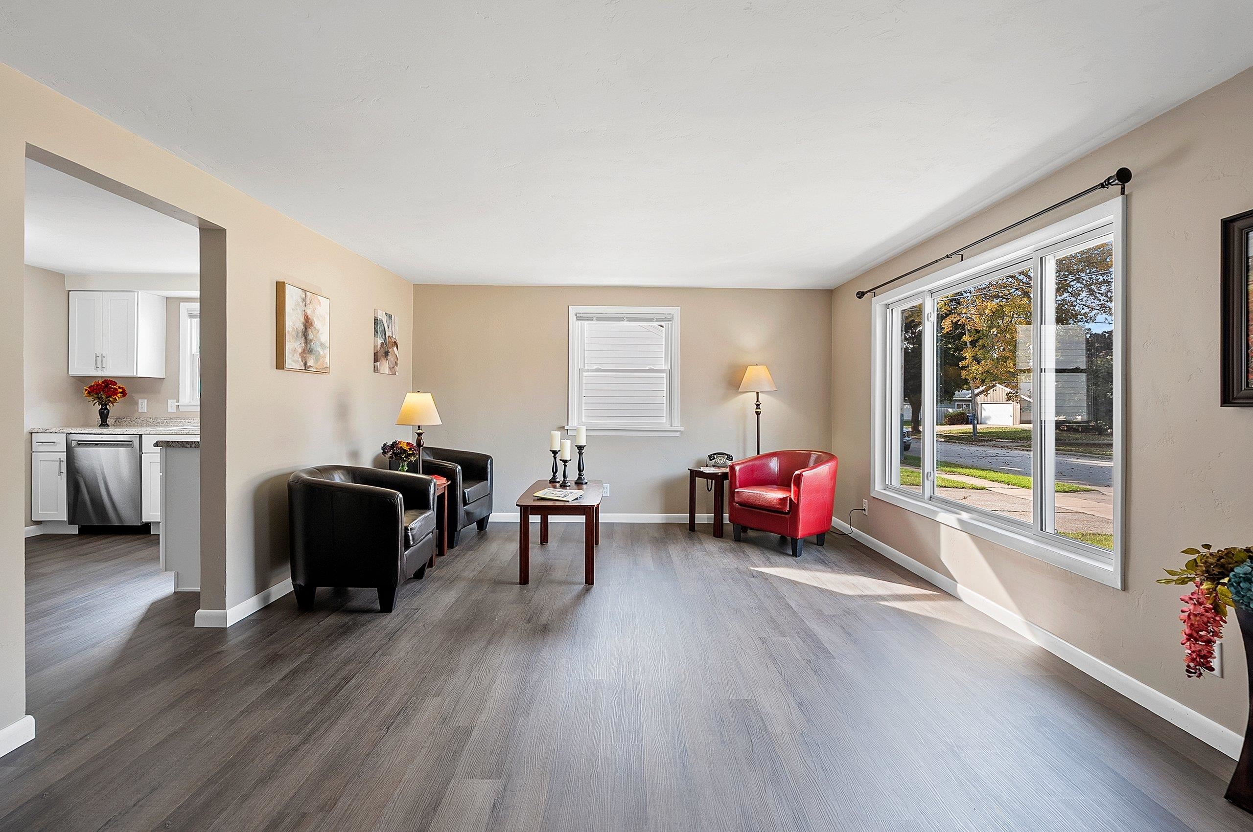 Step inside and fall in love with this beautifully updated spacious 4 bedroom home. It boasts a large and bright living room, a very spacious kitchen, two main floor and two upper bedrooms that are all generously sized, and a completely renovated bath. You'll love the newly renovated kitchen with new stainless steel appliances, new cabinets and countertops. This home has numerous updates including, roof, siding, windows, garage doors, new lighting inside and out, new A/C unit, and water heater to name just a few, see seller list of updates provided. This move in ready home checks all of the boxes!
