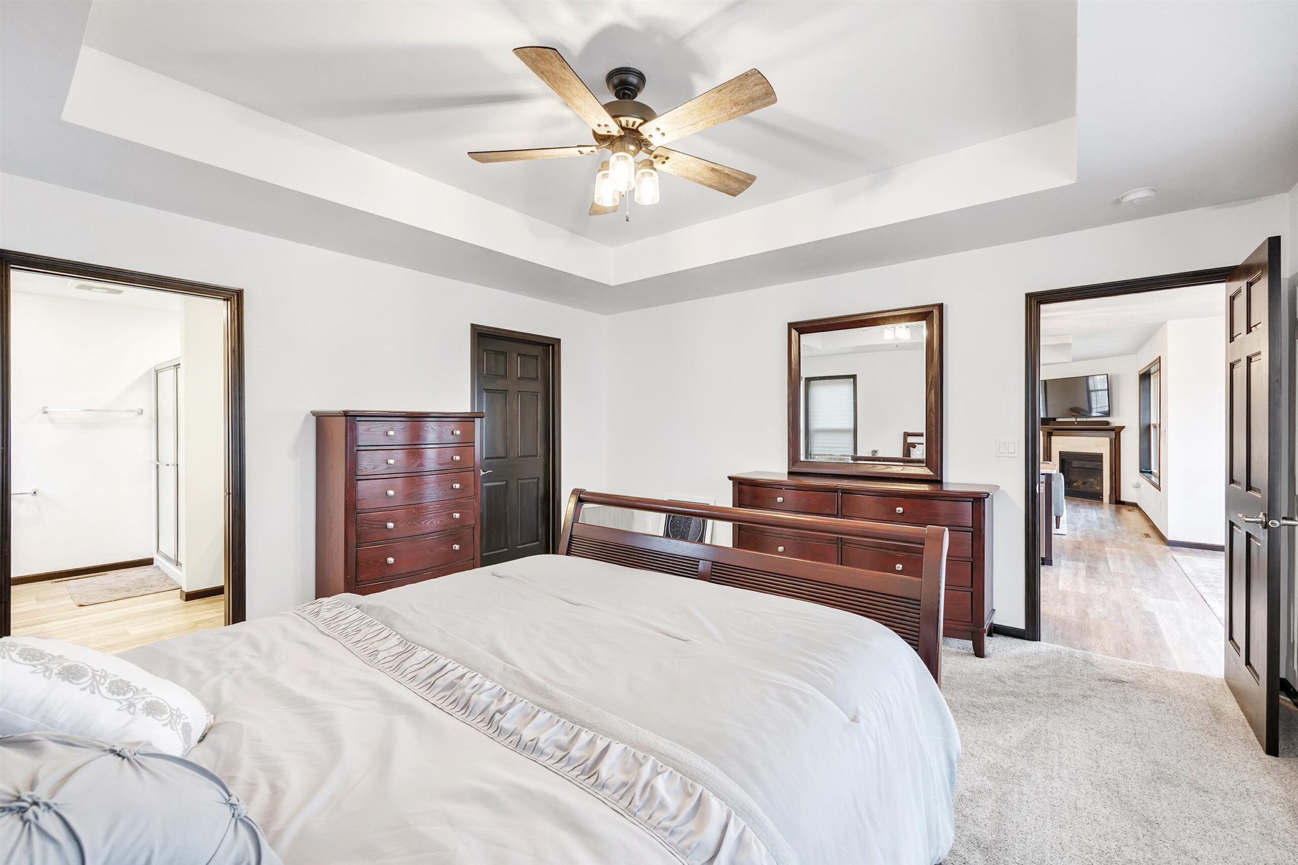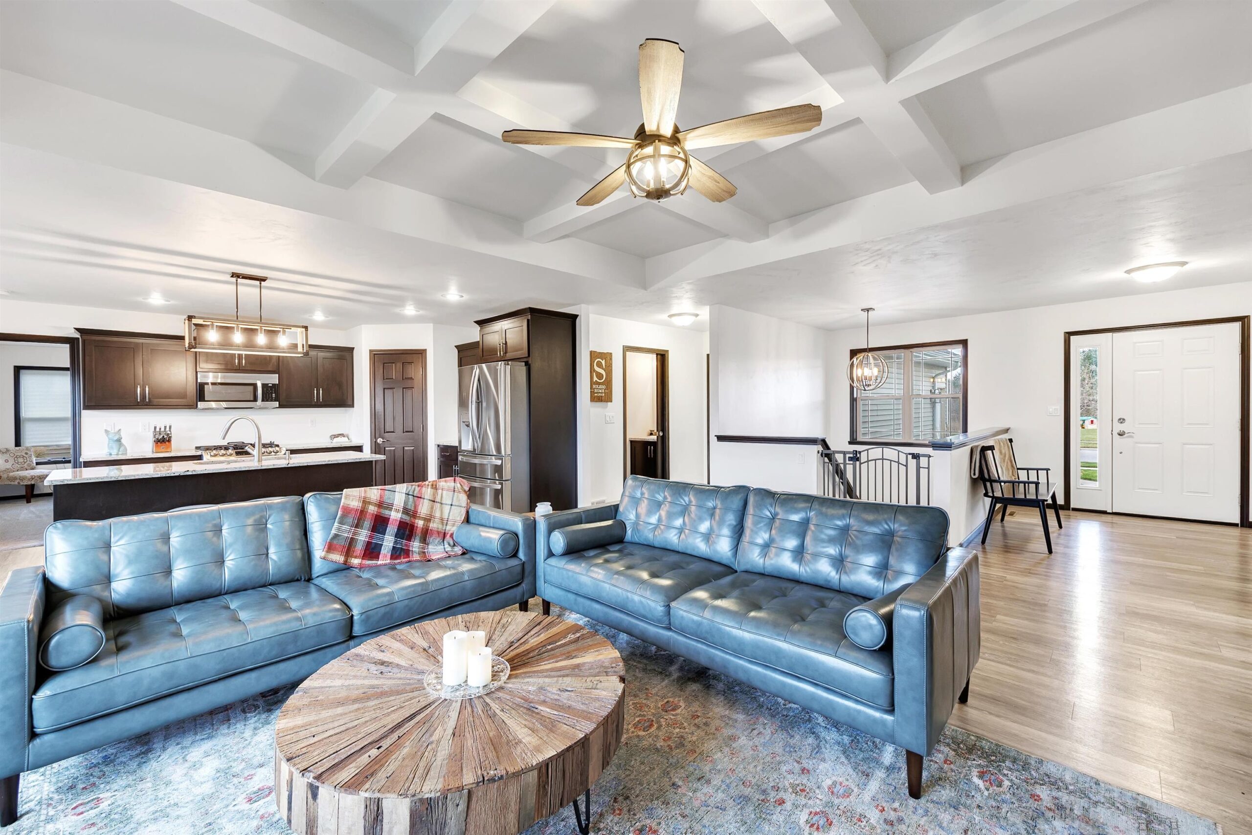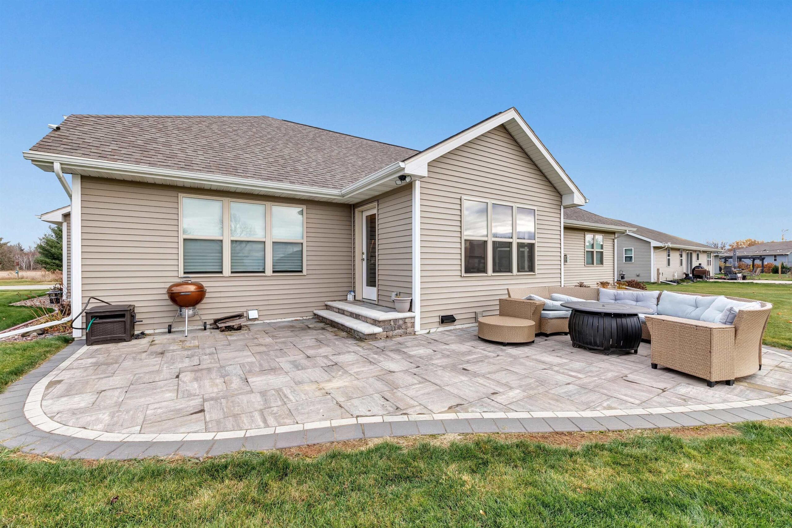Better than new, 4 year young ranch on large .56ac lot. over 3000 sf w/split 4 bedroom, 3.5 bath design & 3+stall att garage. Large foyer opens to living room w/coffered ceiling & gas FP. Kitchen w/custom maple cabinets, island w/sink, walk in pantry & fully applianced kitchen. Master w/tray ceiling, private bath w/walk in shower, double sinks & large walk thru closet opening to laundry room that includes washer/dryer, which opens to ½ bath. Full finished LL with Egress, Wet Bar area, Large Rec area, Workout Room, 4th BR Suite and two small offices. Lots of curb appeal with front porch, decorate posts, paver patio, concrete curbing, fully landscaped with sprinkler system on .56 Lot. Home also includes passive radon system. Prefer before end of year closing with 3–5 days of post occupancy.