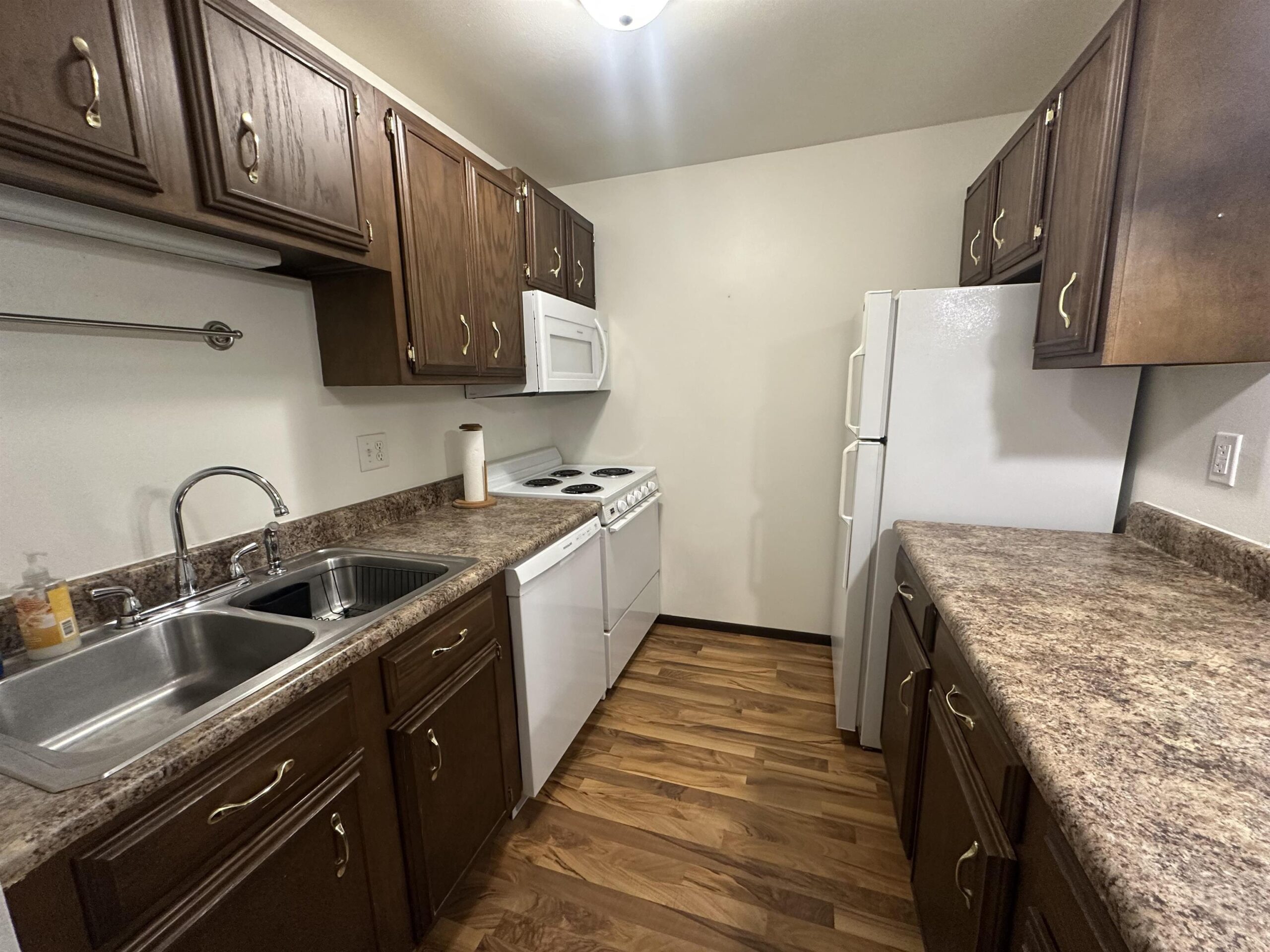Range, refrigerator, microwave, dishwasher