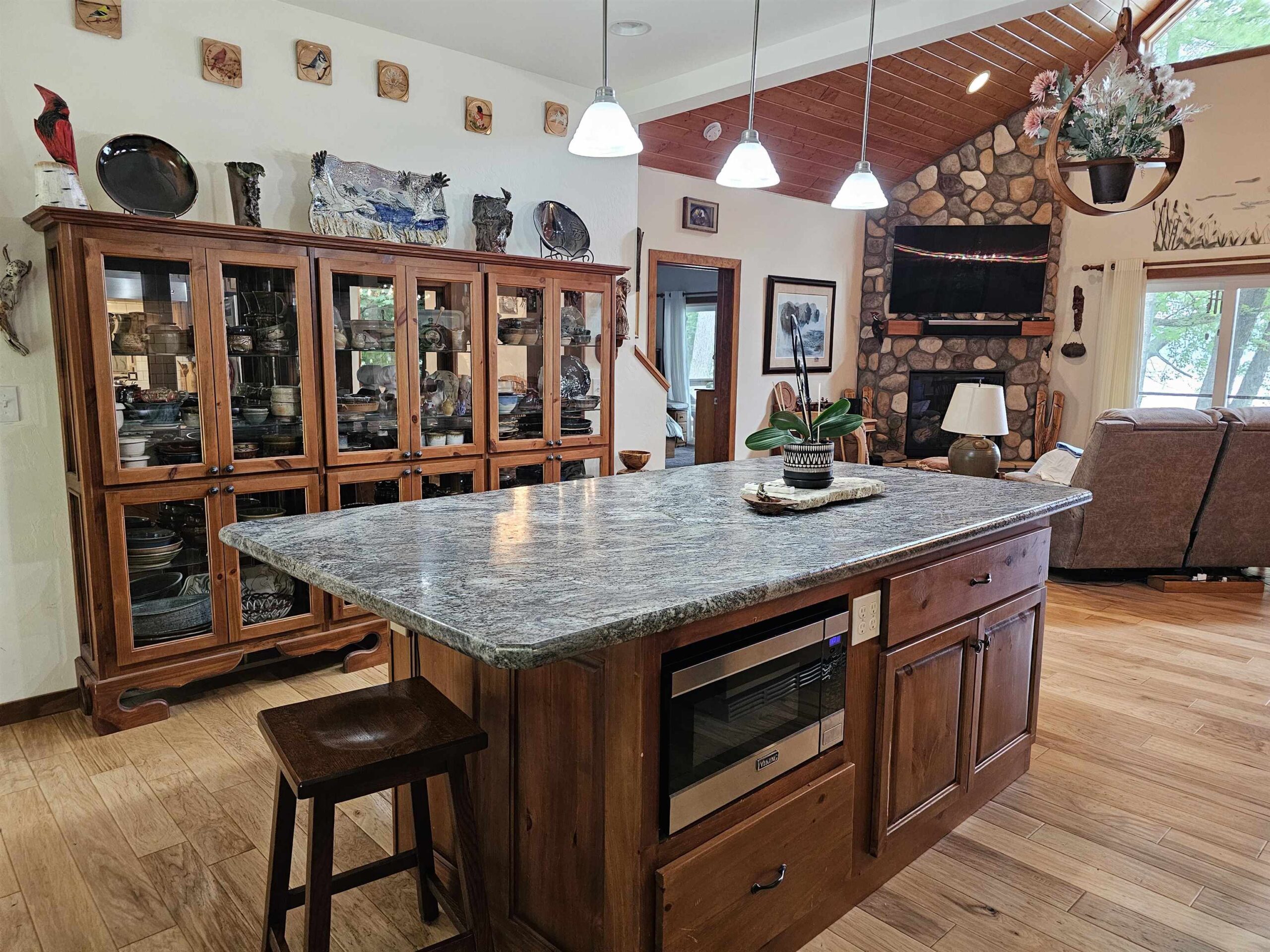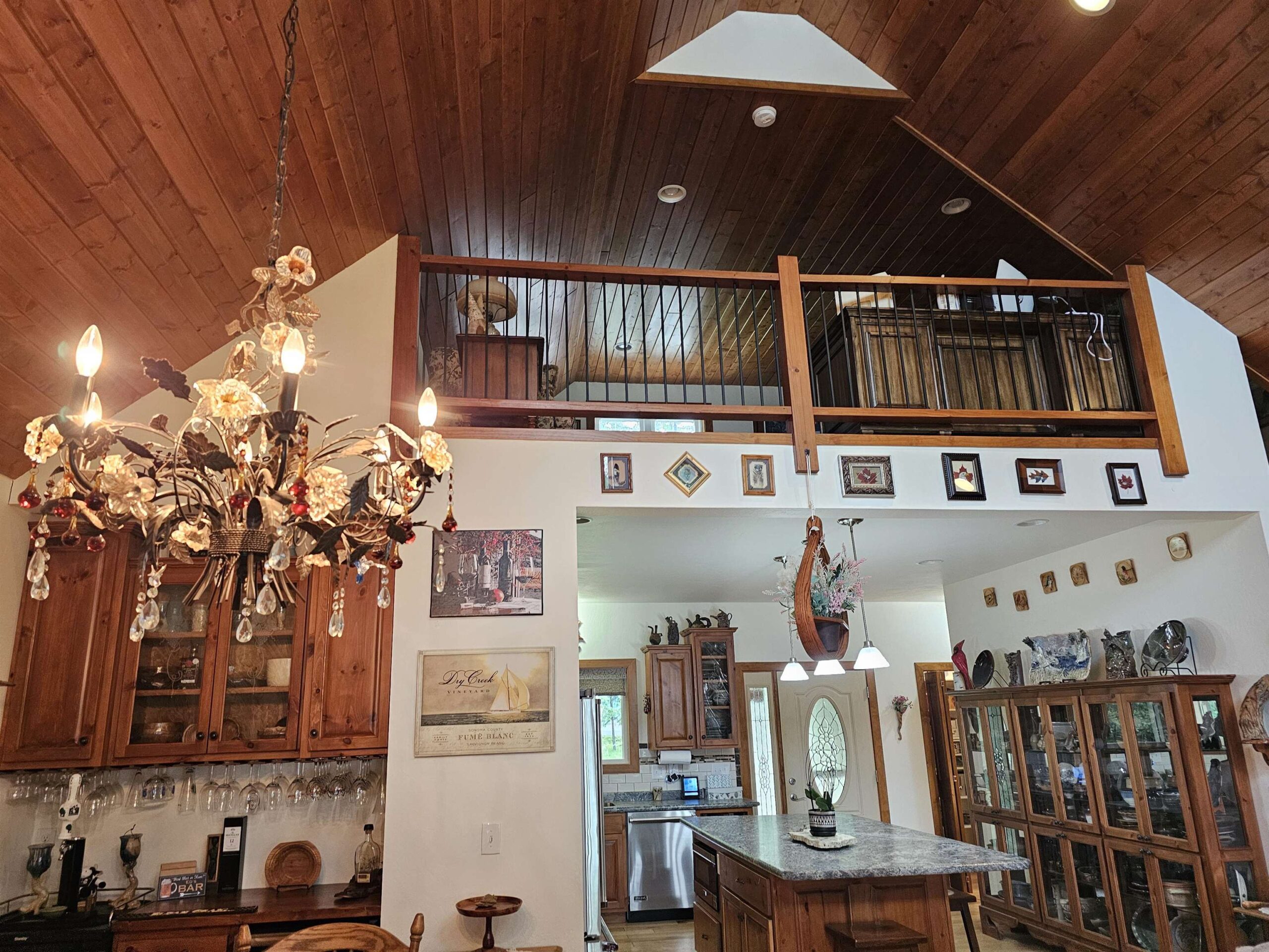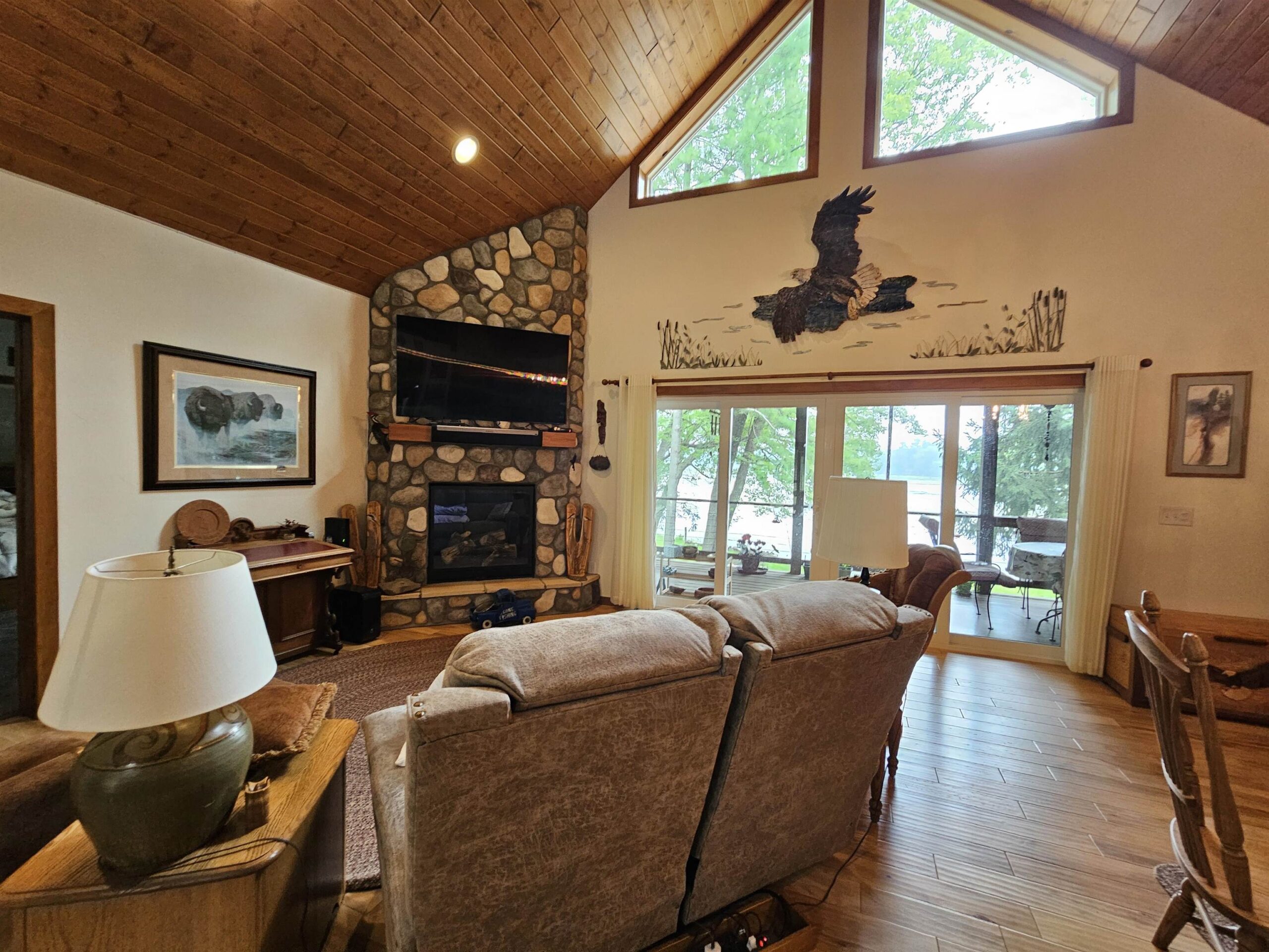This lovely 3BD/2.5-bath home nestled among the pines on Iola millpond offers comfort, luxury, & year-round recreation. Snowmobiling, skiing, & snowshoeing in winter, kayaking & canoeing spring to fall, plus fishing & hunting. The home boasts a Chef’s kitchen w/Viking apl, large pantry, great room w/beautiful gas fpl & loft. Main level ensuite with lake view, dbl shower, walk-in tub & walk-thru closet to laundry, 42x8 screened porch. Walk-out lower-level has 2 bds, craft rm, workshop & wine cellar. Private dock, new (8/25) septic drain field. Wildlife makes every season magical; eagles, deer, herons, cranes & more. Less than 5 mi. from Iola Winter Sports Club with its ski jumps and trails. Don’t miss your chance to add your personal touches & be ready to enjoy your next beautiful home!