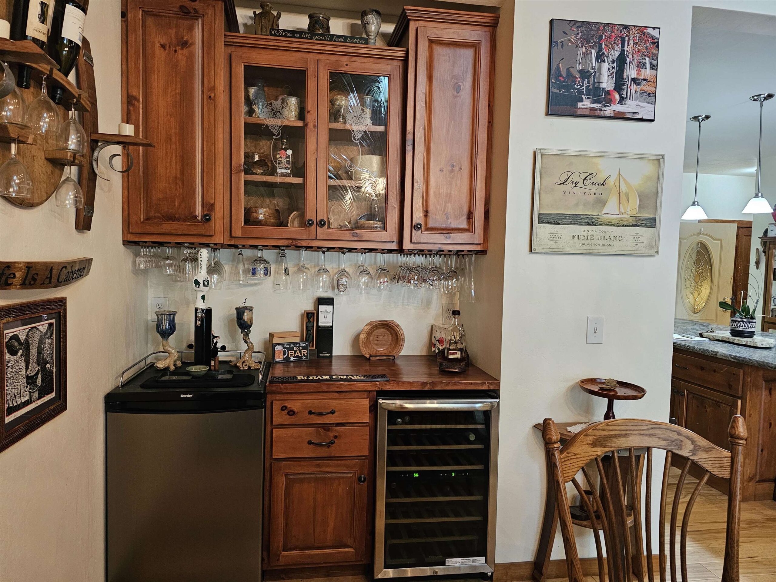 1 Freezer in garage, Refrigerator & Freezer in basement, wall decorations, 2 TV's& brackets, reverse osmosis system, tapper in beverage area.