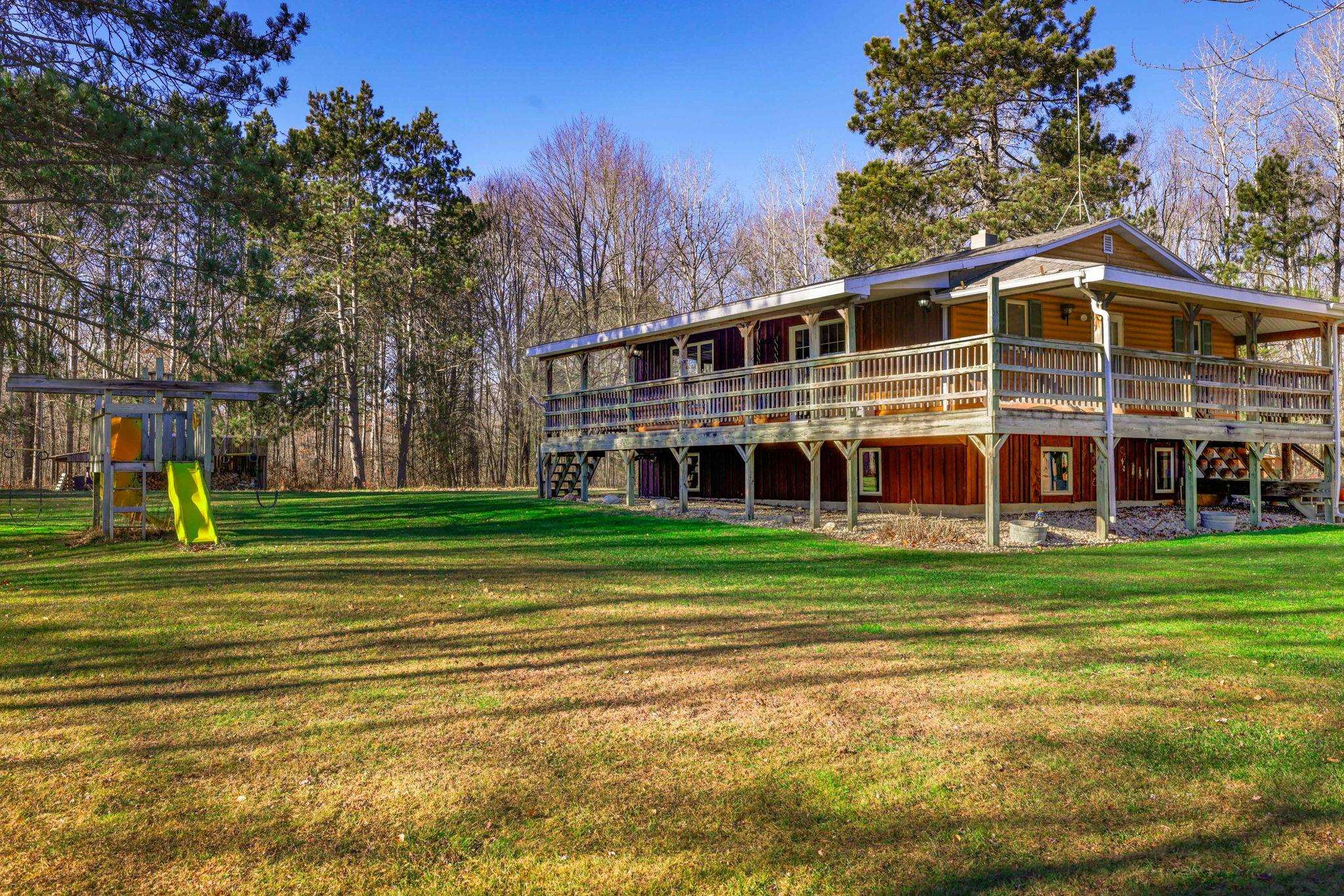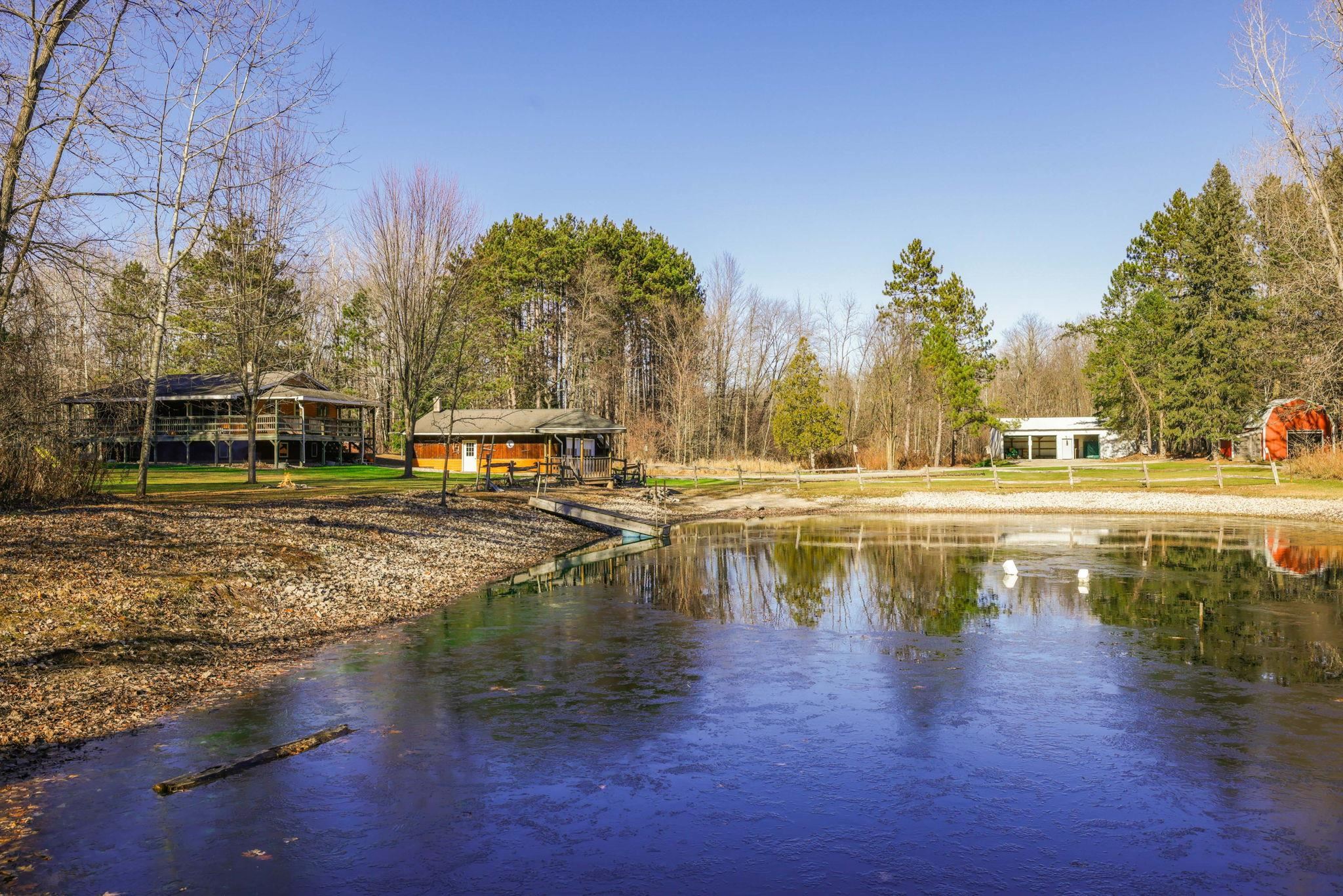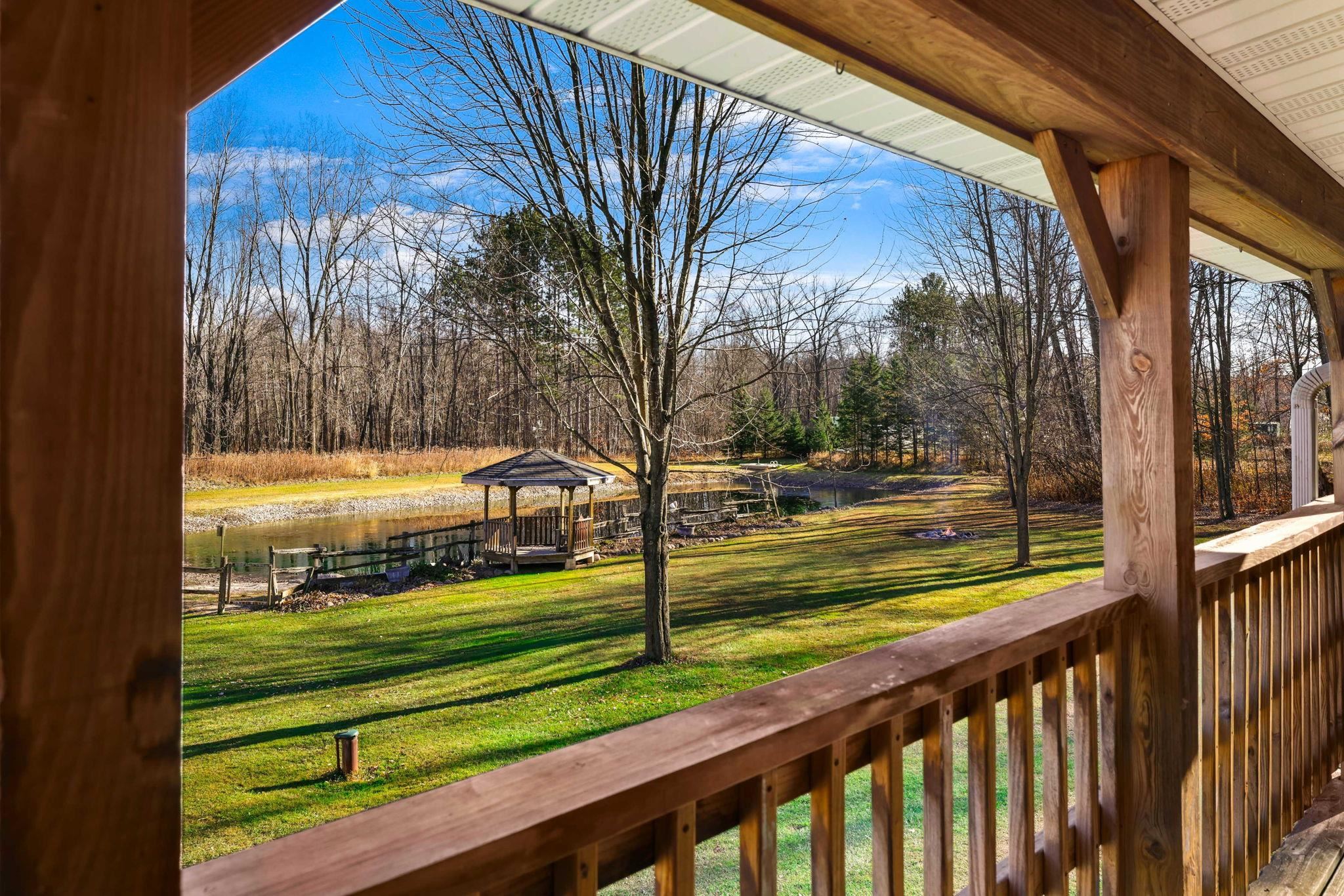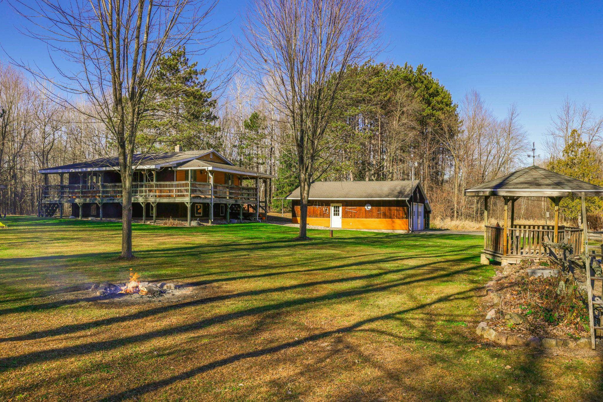 Escape to your own private retreat on 4.94 acres in Shawano County! This inviting 4-bedroom, 2-bath home is surrounded by mature trees and open green space, offering both privacy and room to enjoy the outdoors. A tranquil pond with a gazebo provides a picture-perfect setting right in your backyard. The property features a detached garage, plus two additional pole buildings—one approximately 22x48 and the other 16x16—ideal for storage, equipment, or hobbies. Several storage sheds offer even more flexibility. Enjoy peaceful country living with space to roam, relax, and make your own. A rare chance to own an acreage property with exceptional outdoor amenities and unlimited potential! Floor plan dimensions are approximate. Please allow 48 hours for binding acceptance.