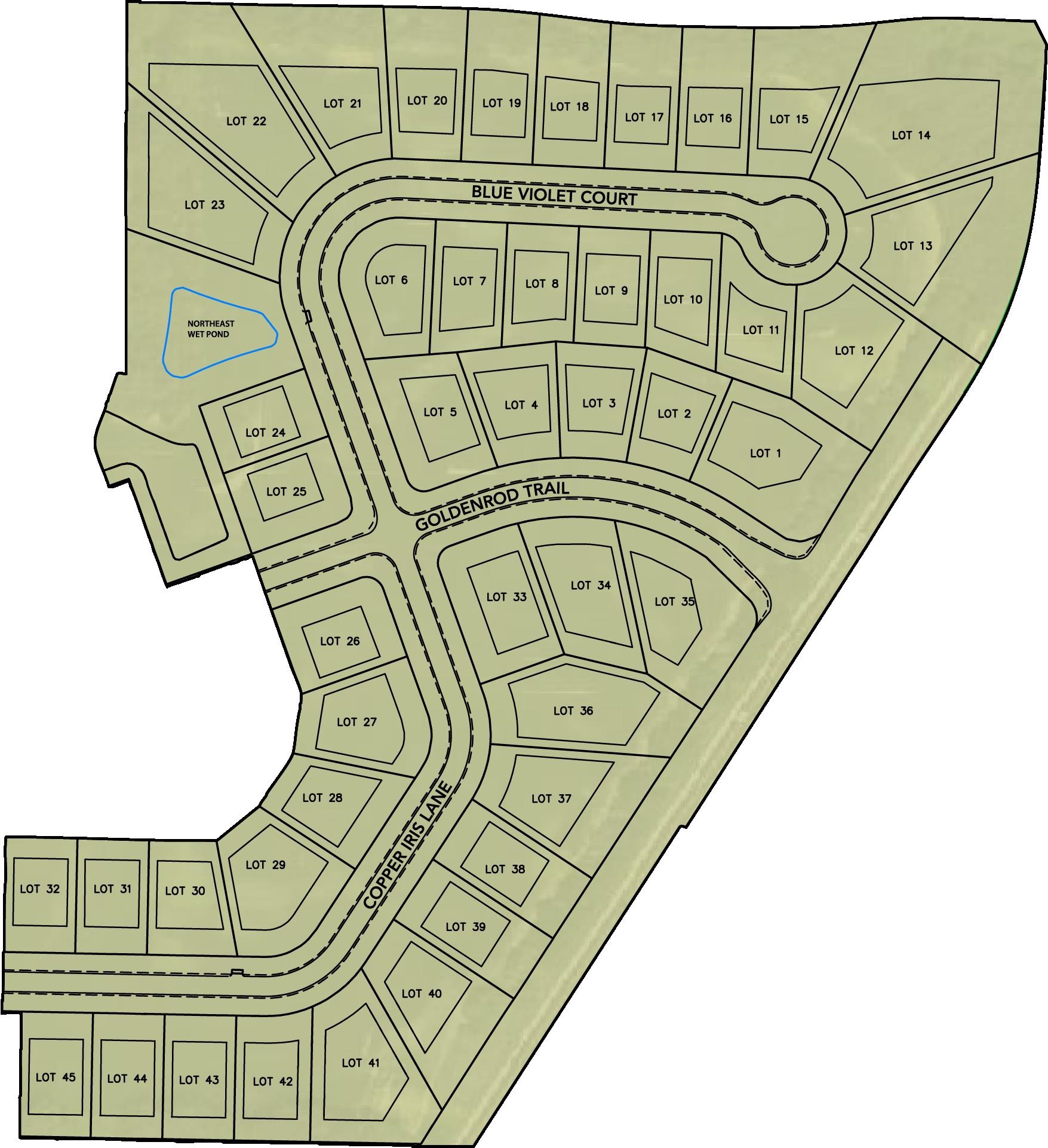 45 lots to choose from in Phase One, final plat was recorded in July, permits available.
