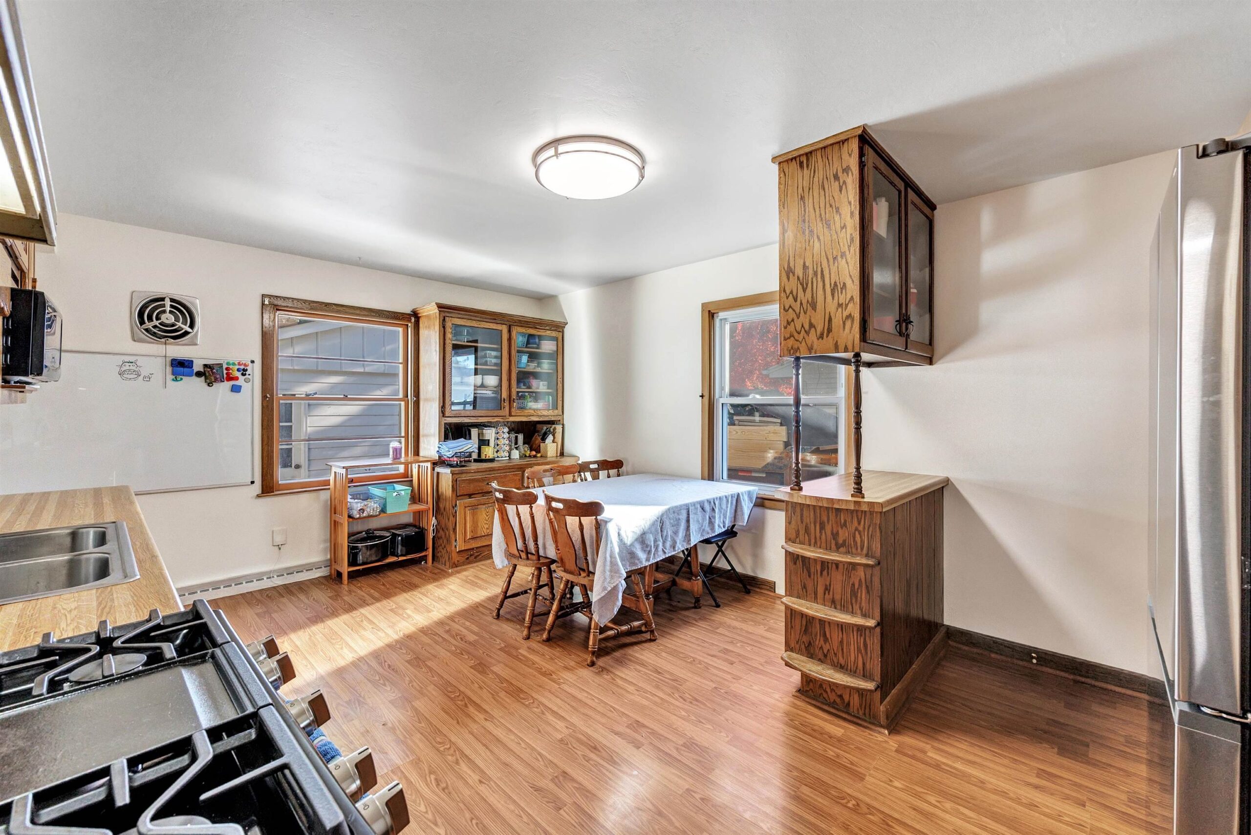 Discover comfort, space, and character in this well-maintained Green Bay home offering over 2,000 sq ft of finished living space. Perfectly situated near parks, shopping, dining, and schools, this property blends everyday convenience with inviting features that make it feel like home. Inside, you will find generous living areas and a beautifully finished four-season room, highlighted by a wood-burning fireplace—a cozy focal point for gatherings year-round. The dettached garage includes a workshop area, ideal for hobbies, projects, or extra storage. Downstairs, enjoy a finished recreation room that provides flexible space for entertainment or relaxation, along with a partially finished half bathroom ready for your finishing touches.