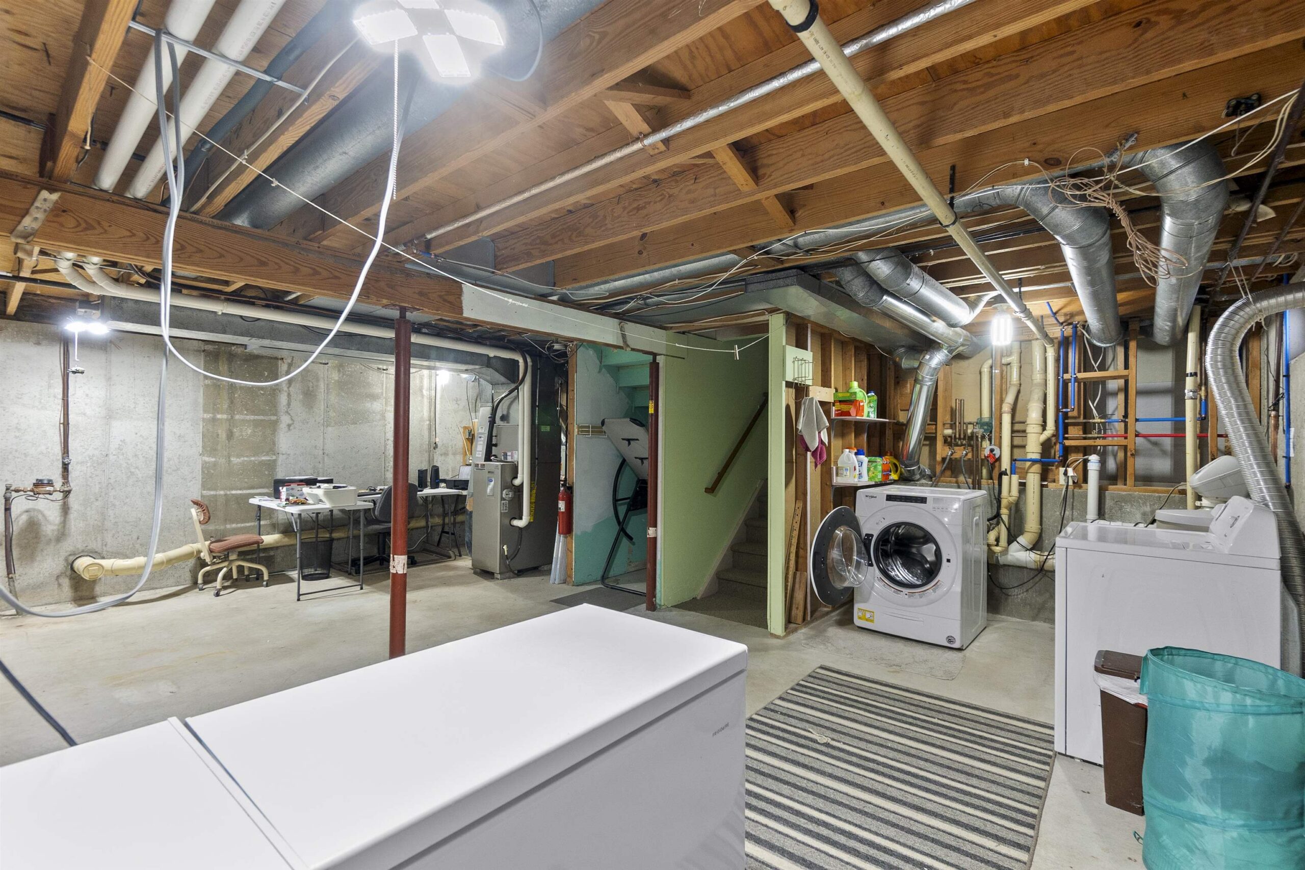 Stove, refrigerator in garage, washer, dryer, garbage & recycling bins, all window treatments