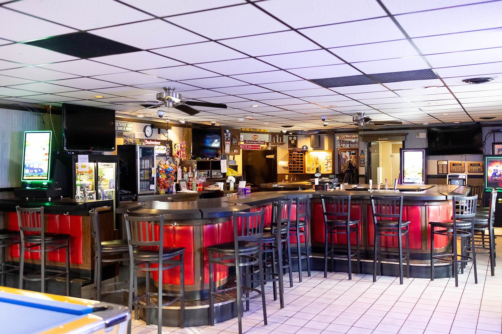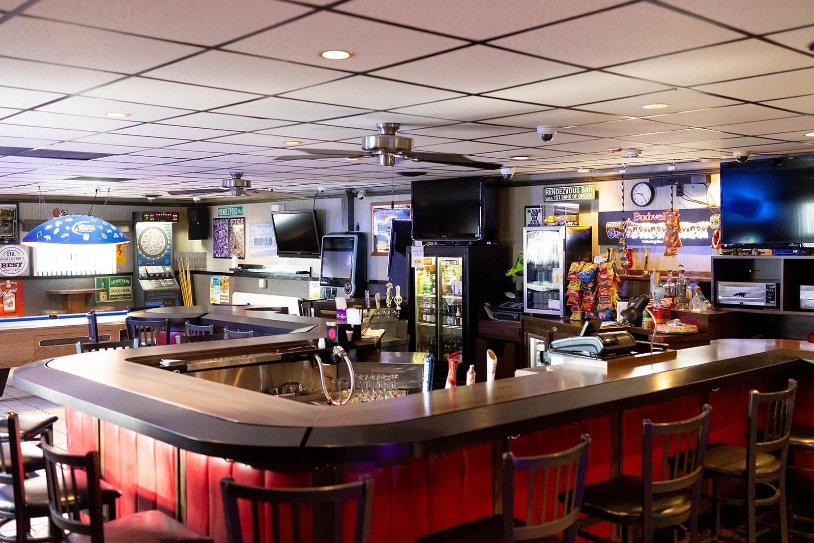 Liquor License, Rendezvous Bar & Business, Basement Freezer, Bev Cooler, Tables, Chairs, Glasses, ATM Machine, 4 TVs, 2 Pizza Ovens, Outdoor Games