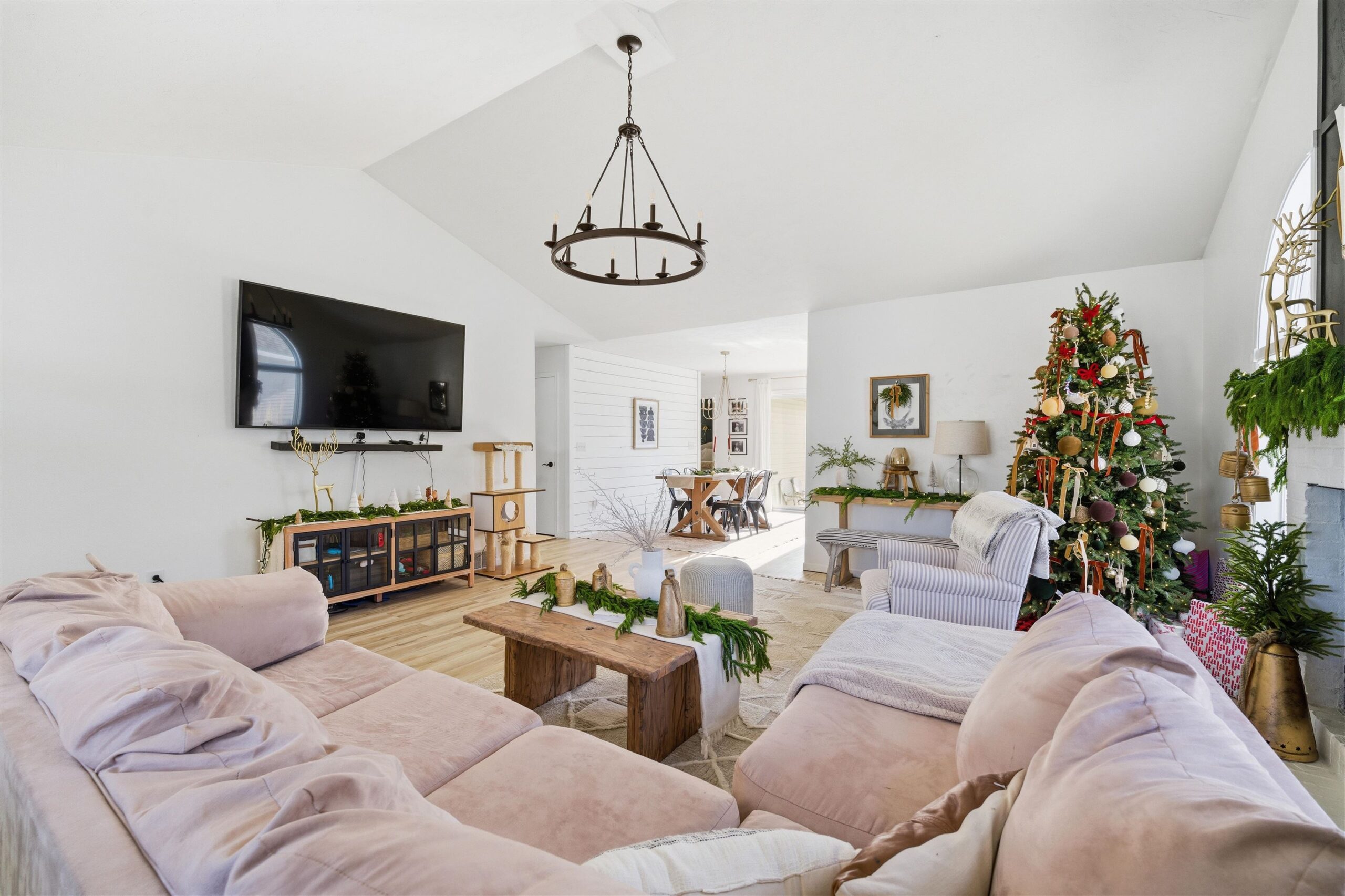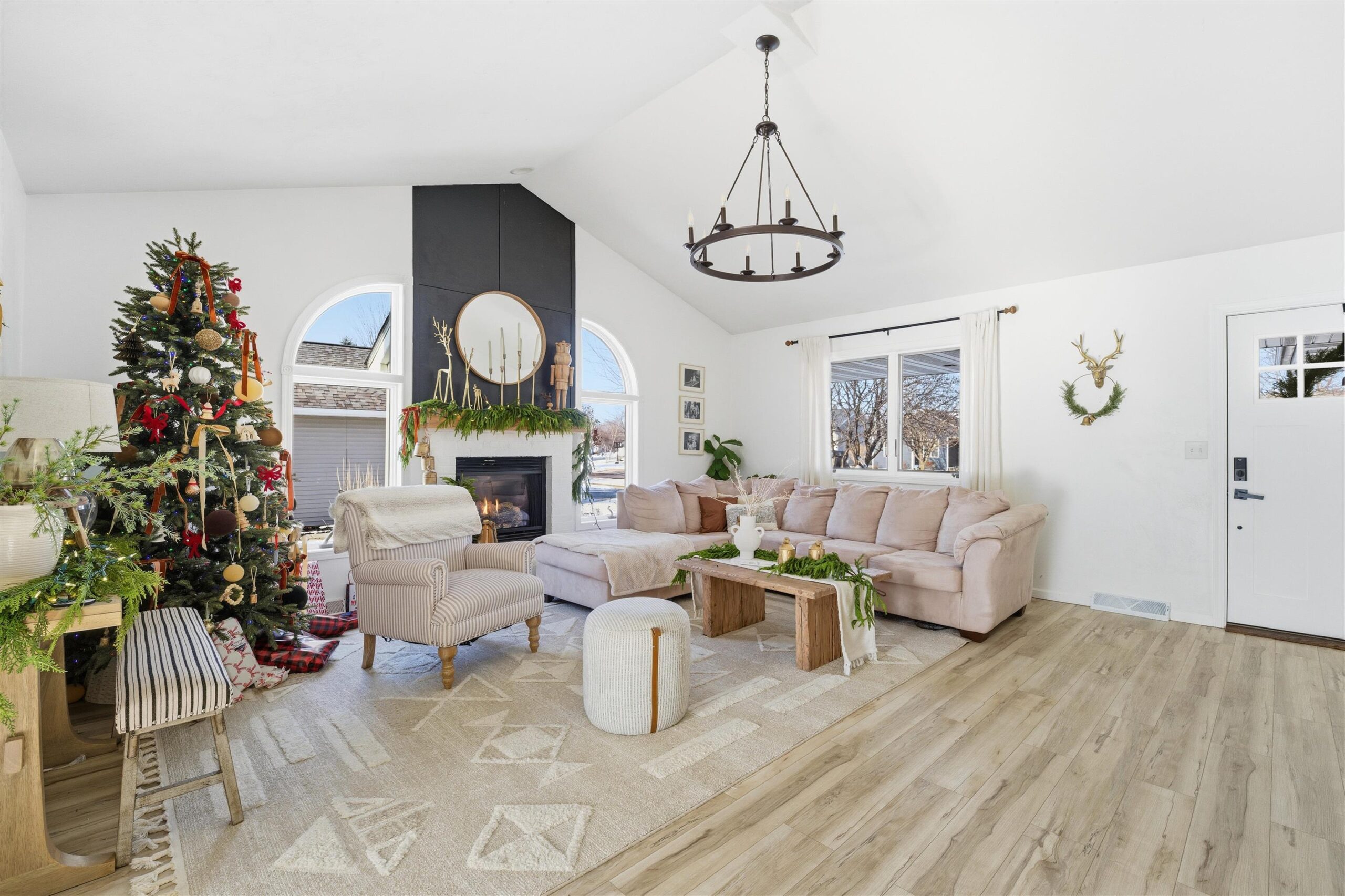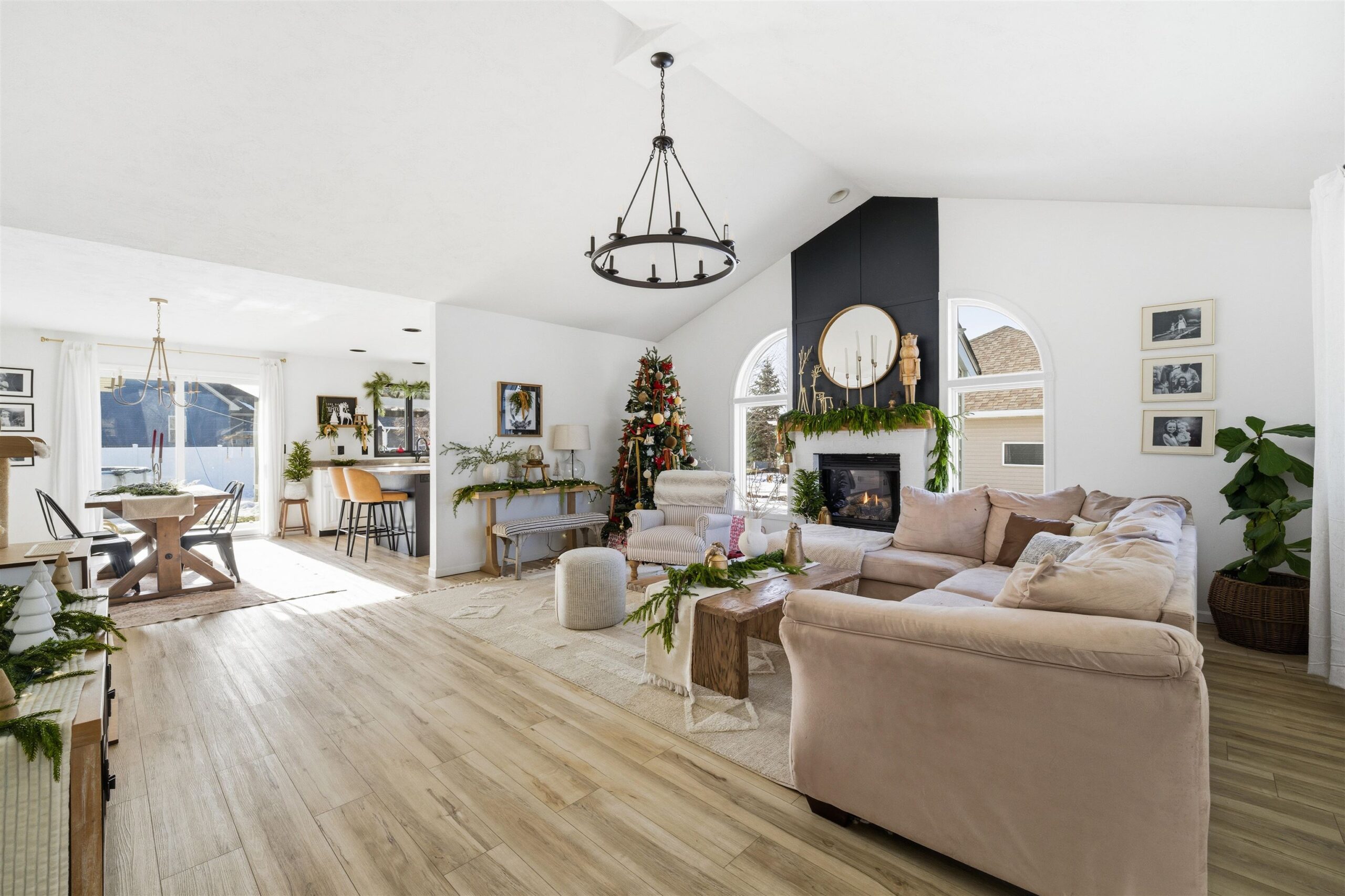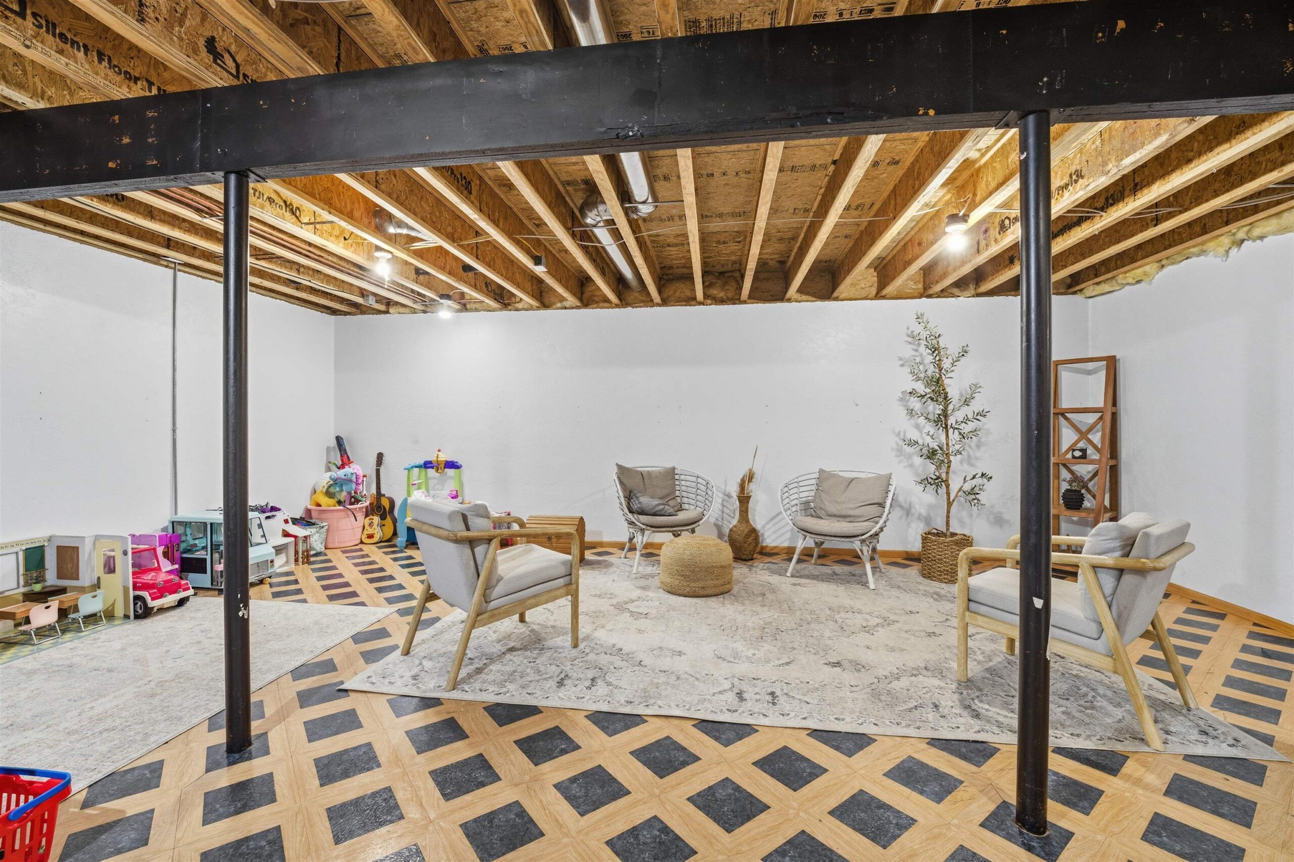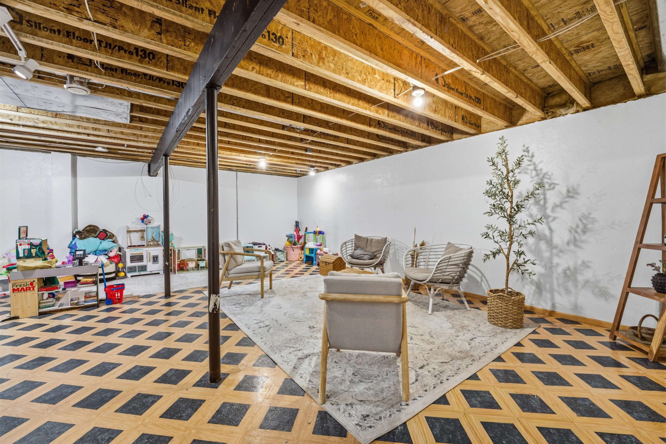 Big open concept, split bedroom design, ranch. You'll love the vaulted ceilings, Palladian windows, and cozy fireplace in the living room. Great kitchen and first-floor laundry room. The lower level provides for easy expanded living with the comfortable rec room. Also enjoy a separate, private home office. Outside, you'll love entertaining on the big patio, raised deck, and swimming pool. Stay healthy with a polar plunge routine. Big landscaped yard. Great Location, close to shopping, entertainment, and the freeway. You'll love living here! Lower level finished space contains exposed floor joists.