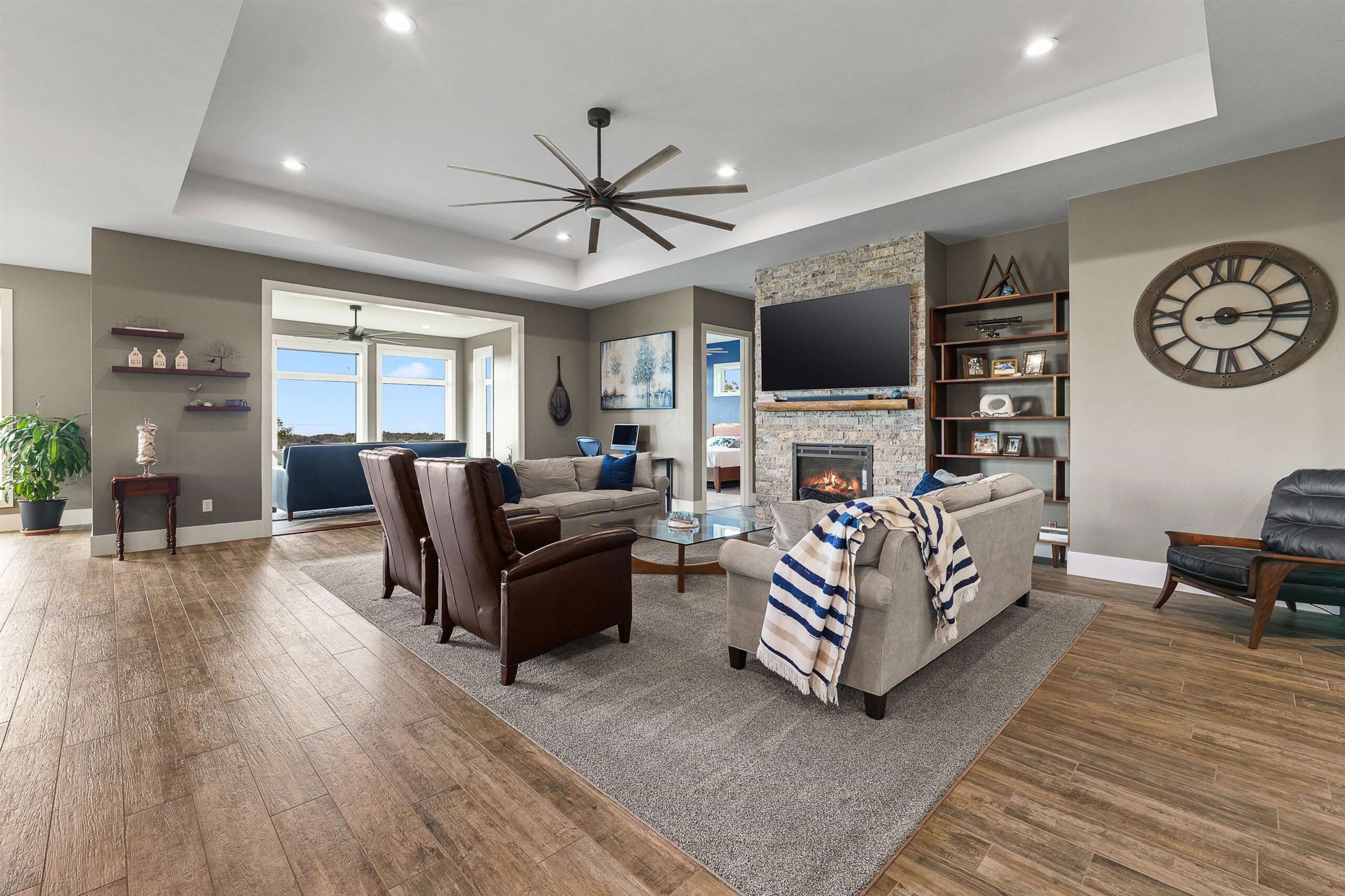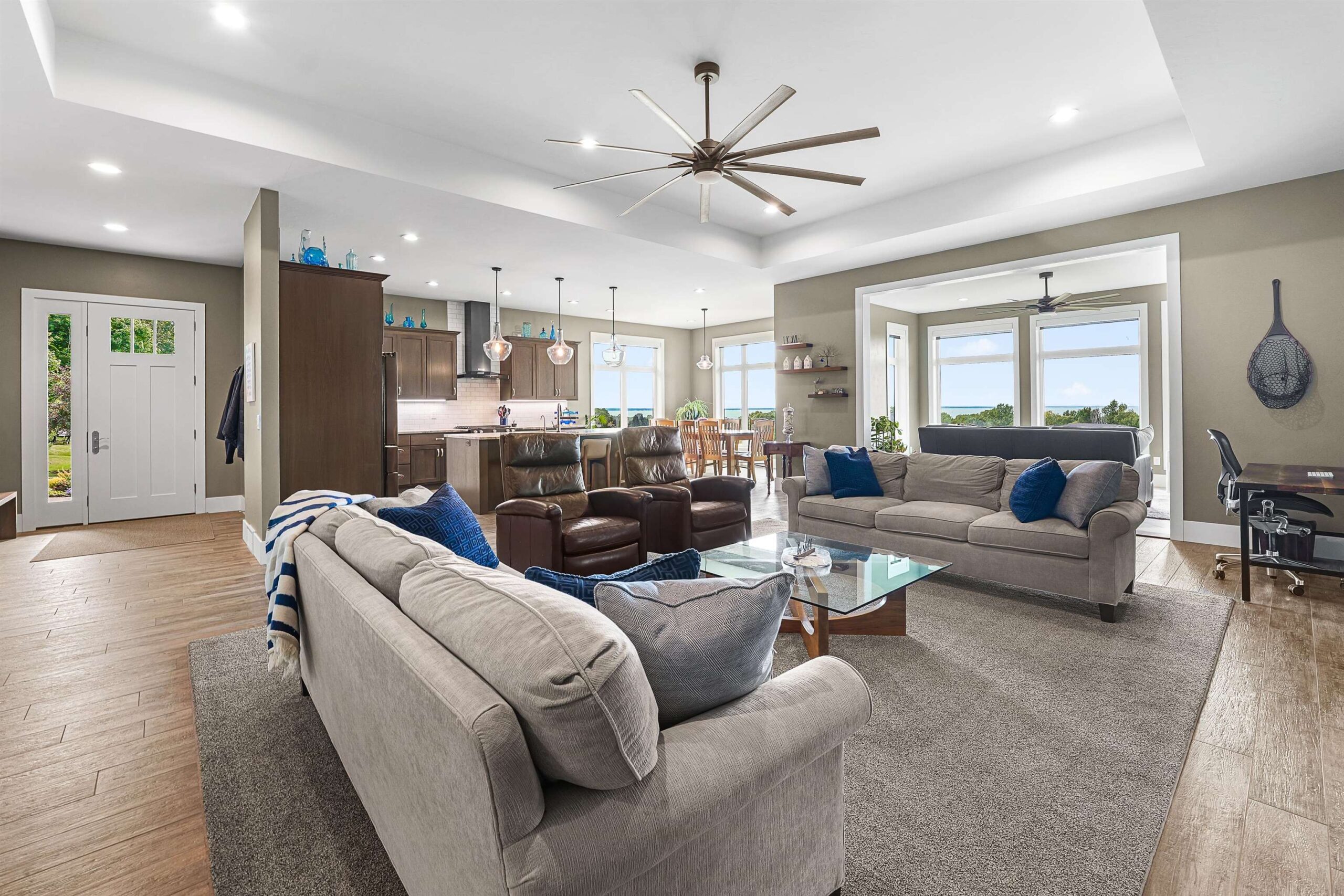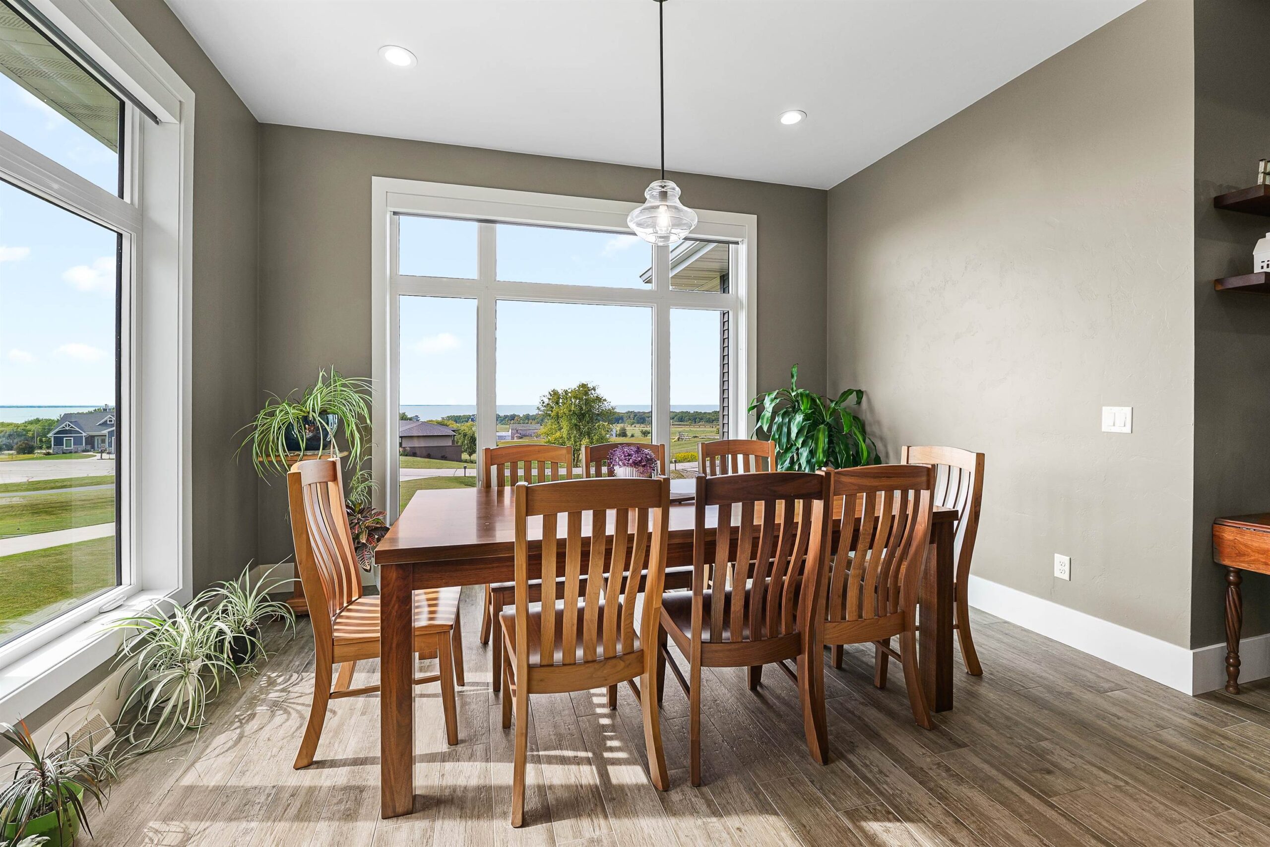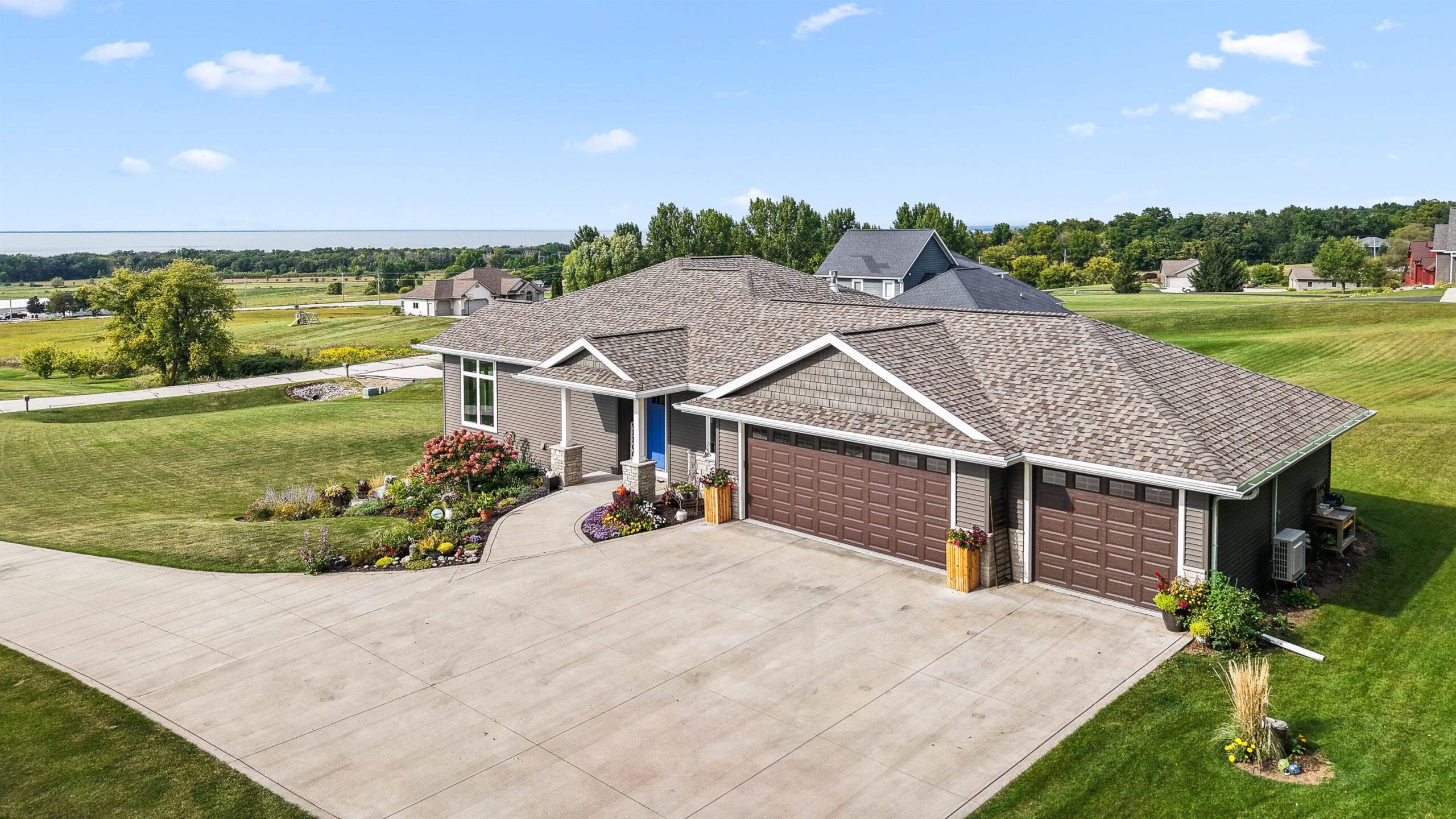You will never tire of sweeping views of the sun setting over Lake Winnebago from this custom designed home. This one owner home has never been on market before, and delivers a long list of stunning features including 10ft ceilings on the main and 9ft on the finished lower level. Layout includes main floor primary suite with huge private bath and walk in closet, lovely great room with stone fireplace and of course a kitchen to die for. Including granite countertops and island. Beautiful sun room that literally feels like you are sitting on the ledge. Over 3,500 sqft, 3 bedrooms and 3.5 baths. Oversized garage that is heated and air conditioned with epoxy floor. Incredible yard with flowers and wildlife! Sellers are hoping for an early Dec closing! Buyer to verify sqft & measurements.
