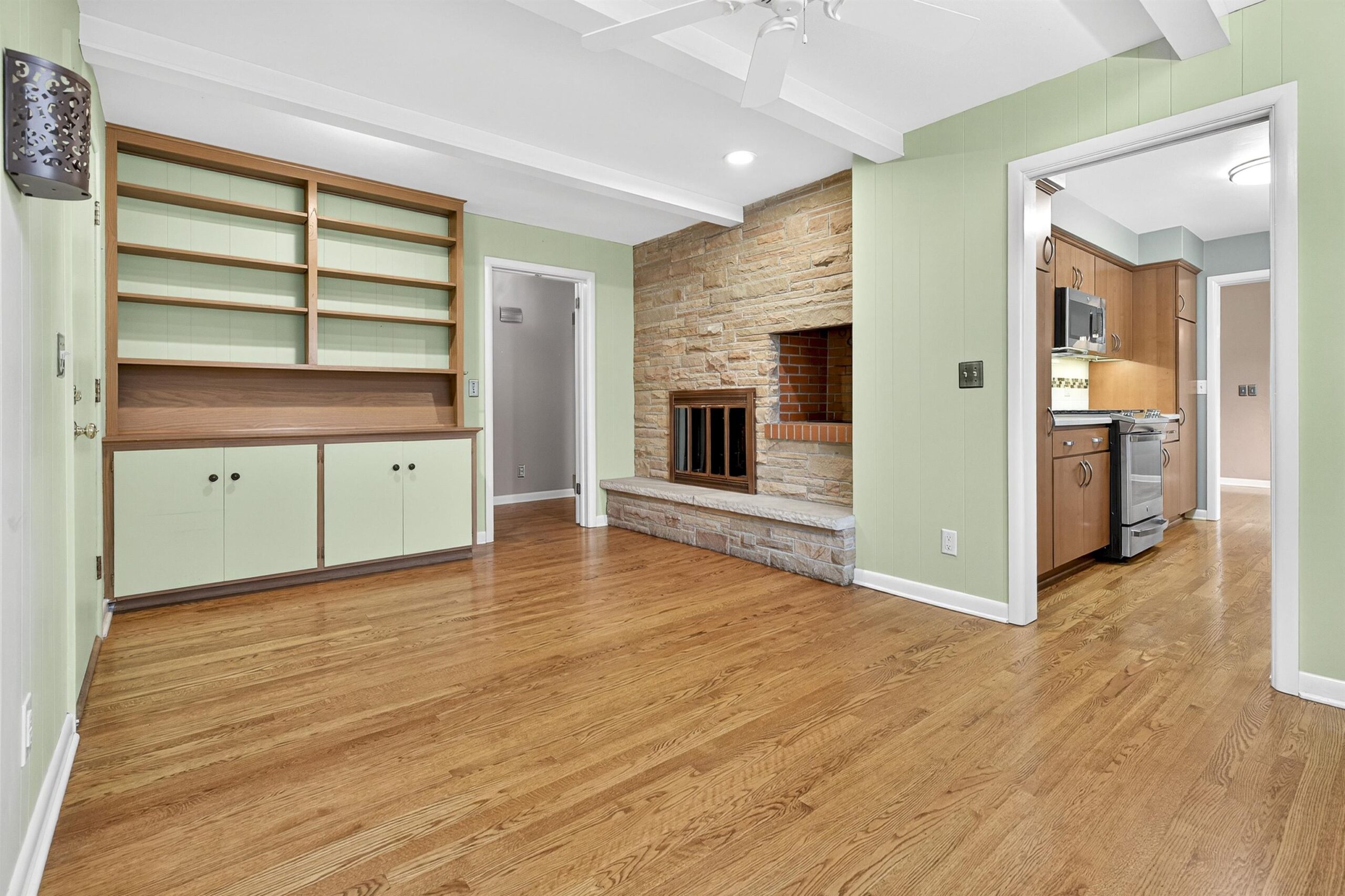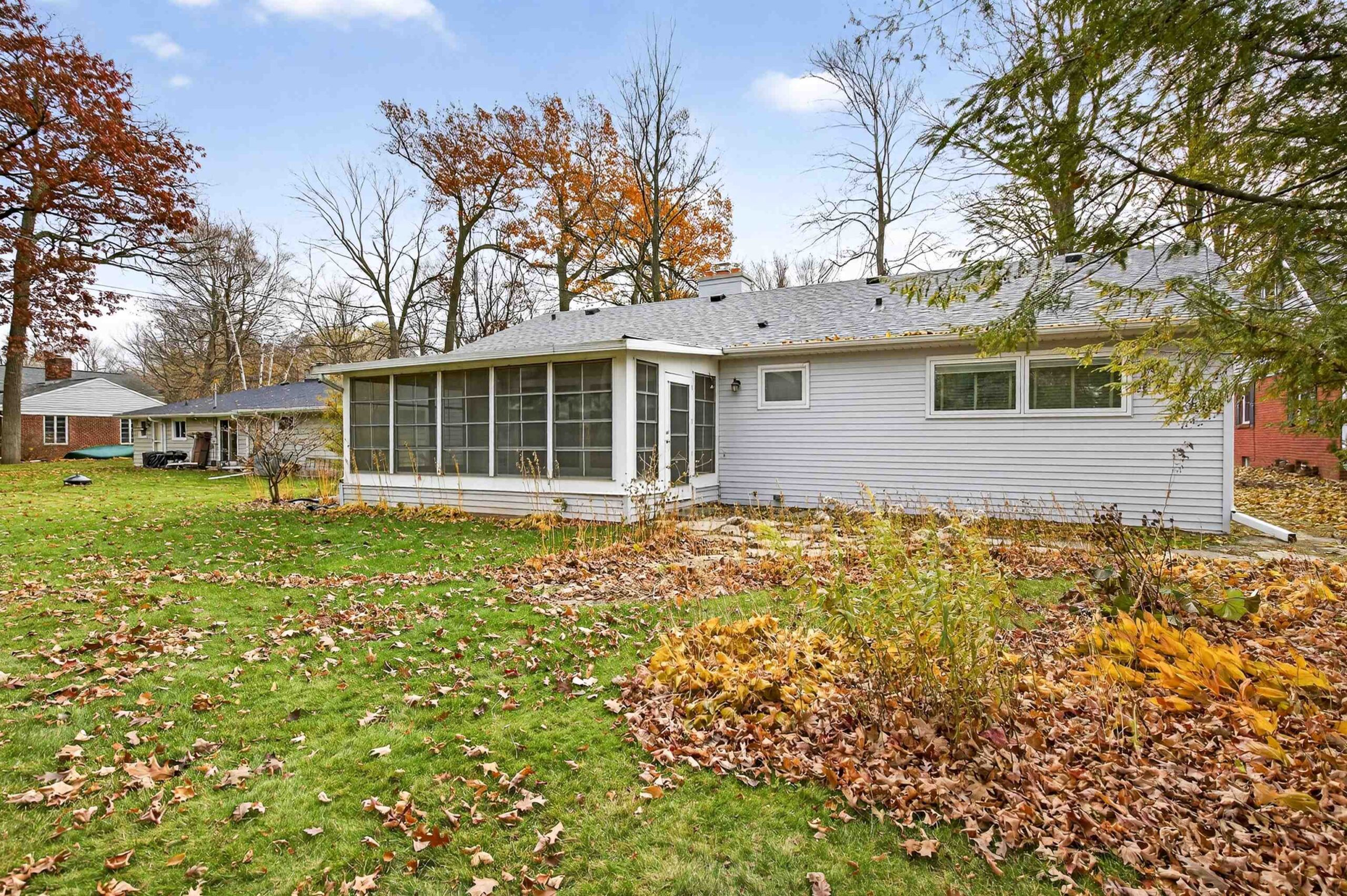 This meticulously maintained North Appleton 2bed 2bath ranch nestled on a quiet street is surely what you've been searching for! The curb appeal is real on this one with mature trees, established landscaping, and a maintenance free exterior. Walking in you are welcomed by beautiful real wood flooring throughout. A two-way fireplace connects the sunlit living room and cozy office/den, perfect for the winter ahead! This home boasts a fully renovated kitchen with solid surface countertops, and updated appliances. The two HUGE bedrooms are splashed with natural light and offer lots of storage with double closets. Two spacious bathrooms (one ensuite to primary bedroom) complete the first floor and enjoy the view from your large tiled sunroom off the back of the home!