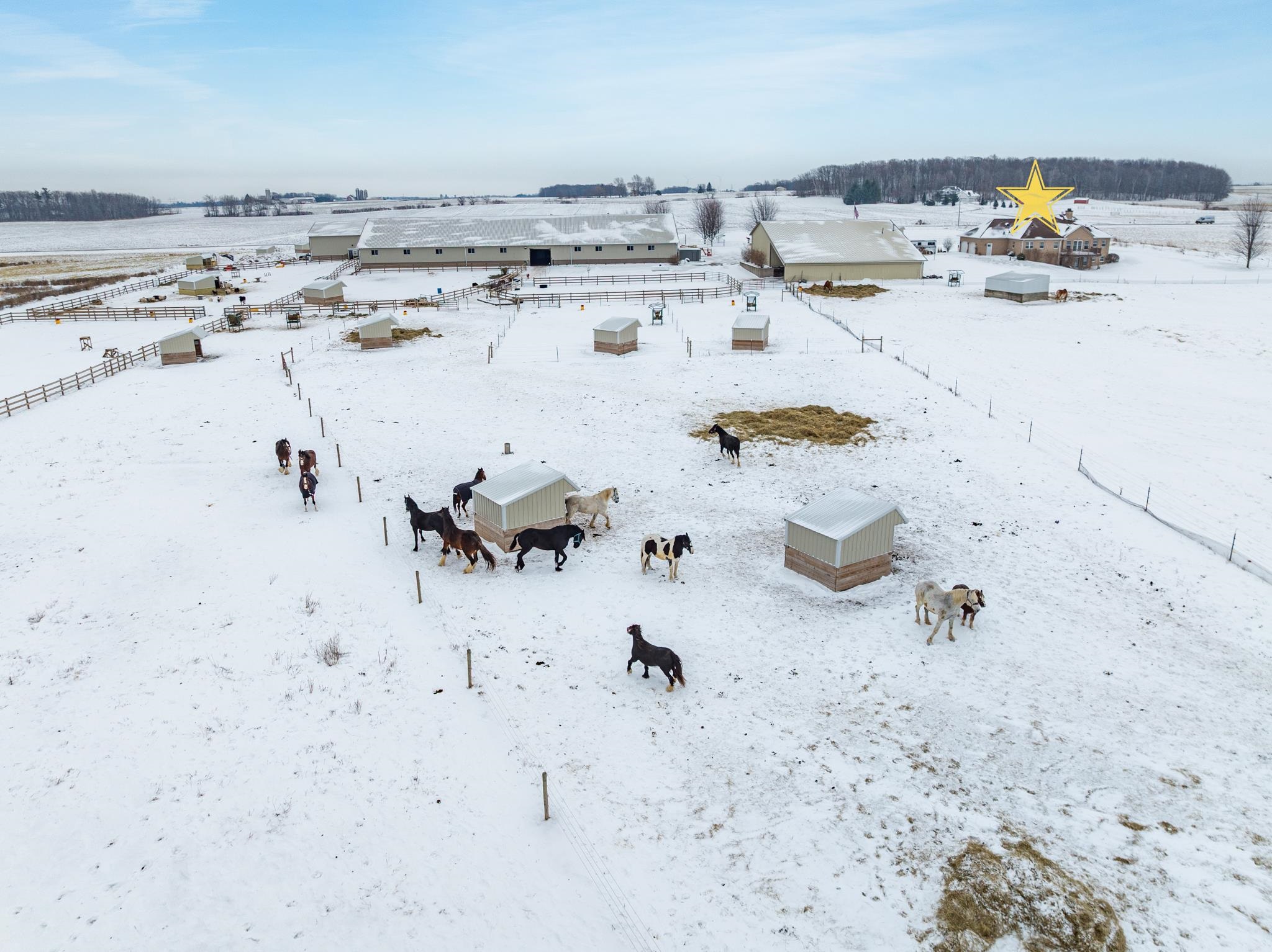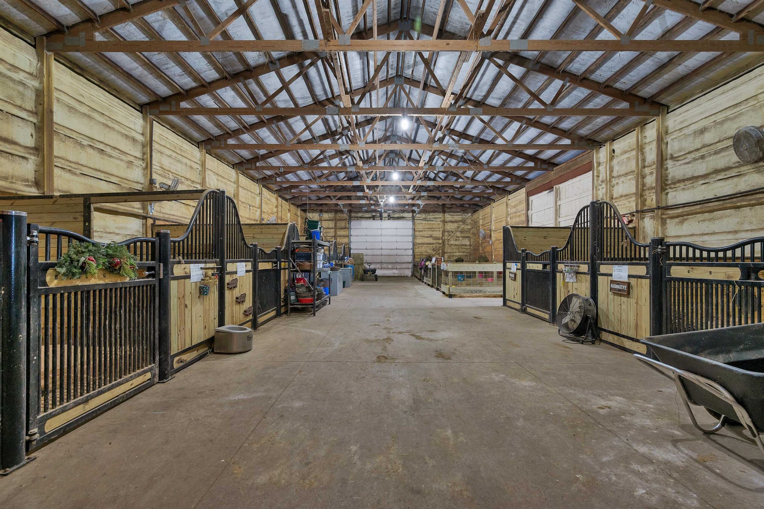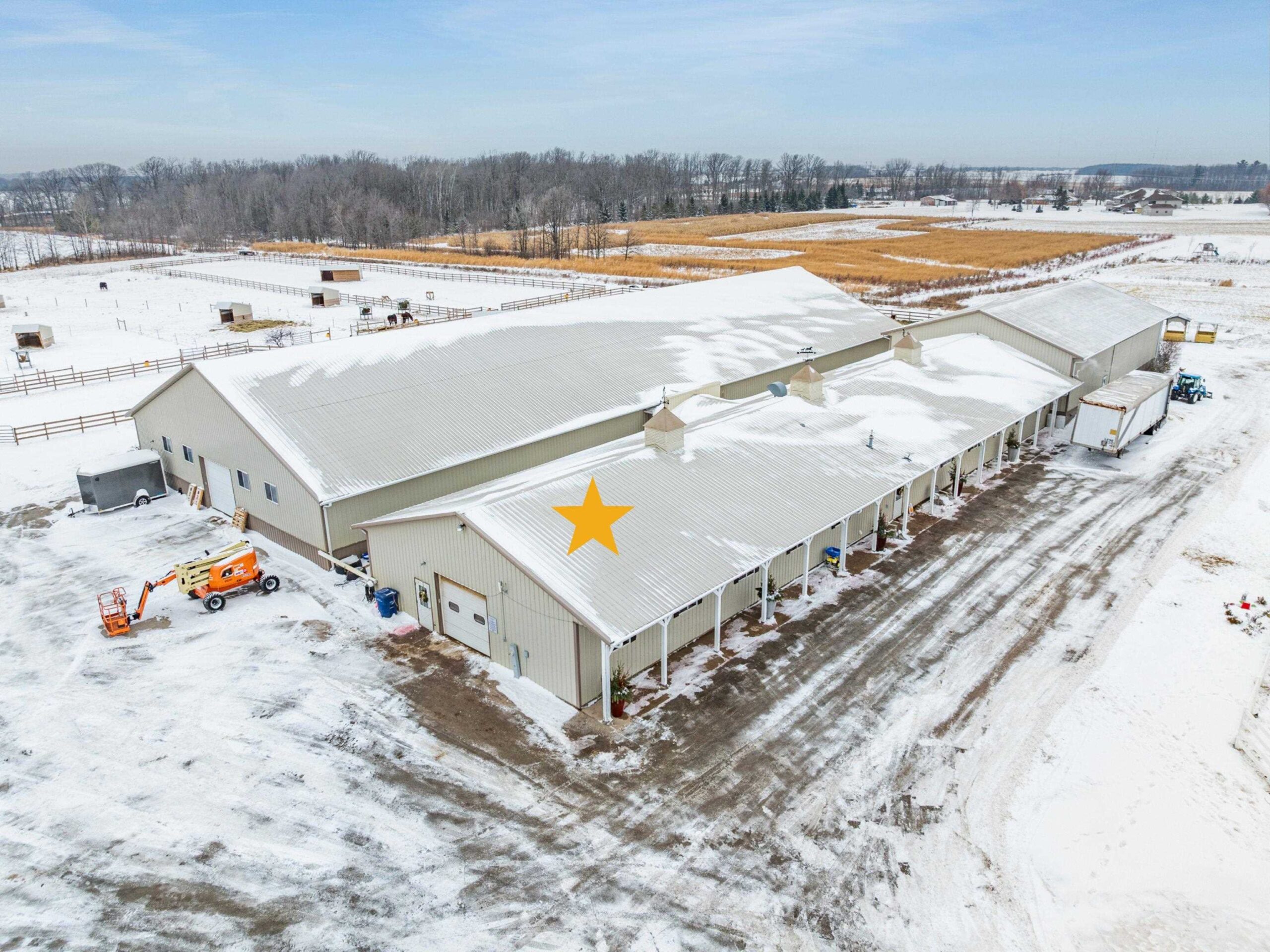 Potential $300,000 revenue-generating horse facility with rental stalls and a home situated on 40 acres! Over $570,000 of improvements have been made, making this an amazing business opportunity for horse enthusiasts, trainers, or boarding operations. This exceptional property includes a 31-stall barn with an indoor riding arena, tack room, bathroom, laundry room, in floor radiant heat, and plenty of space for equipment. Pastures have new winter waterers. An additional hay barn, full of hay, is included. The ranch-style 3 bedroom home offers an open-concept layout with vaulted ceilings and a walkout basement, providing comfortable living or great rental opportunity. Carpet on the stairs will be replaced. See additional documents for cash flow analysis, improvements, and included equipment.
