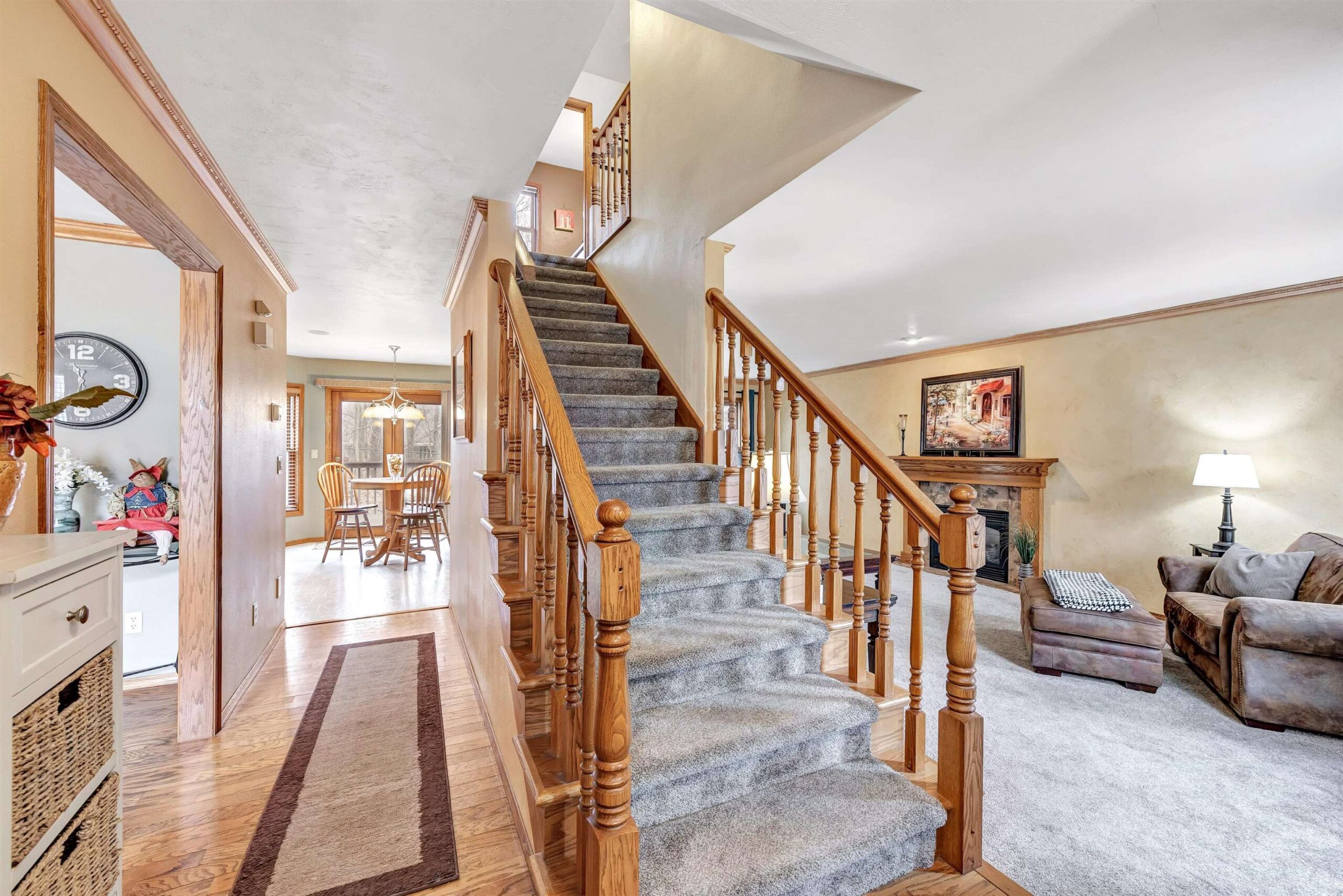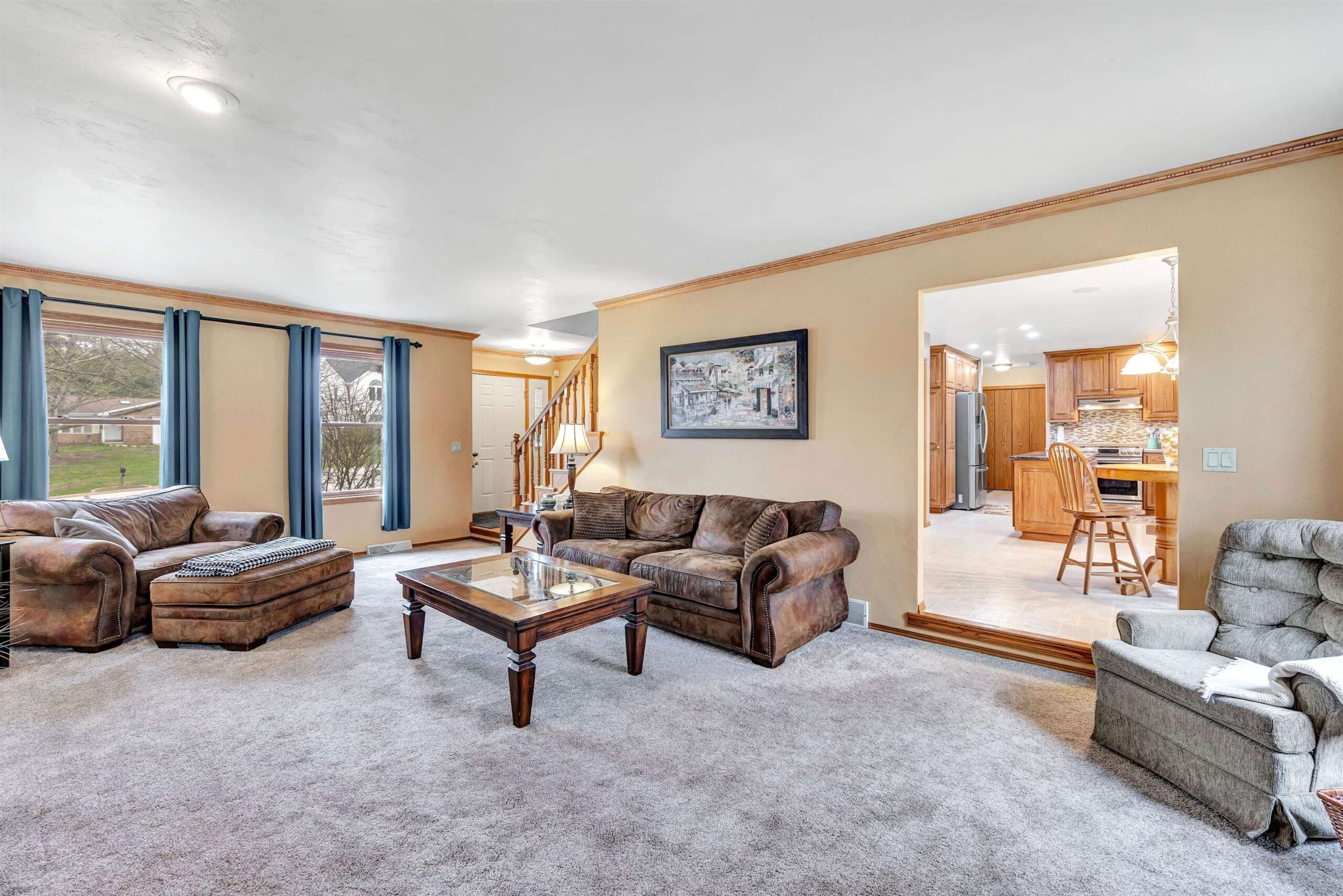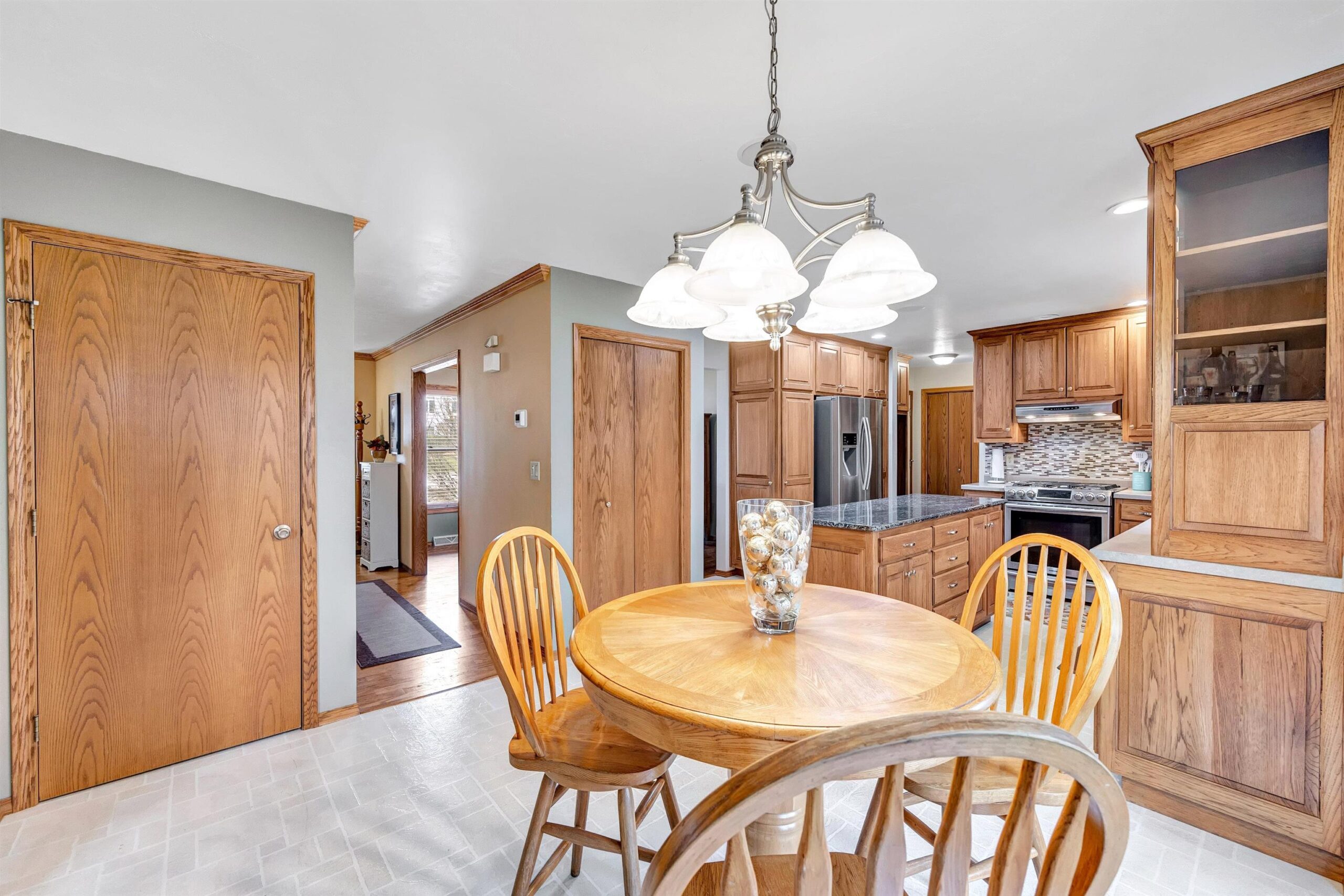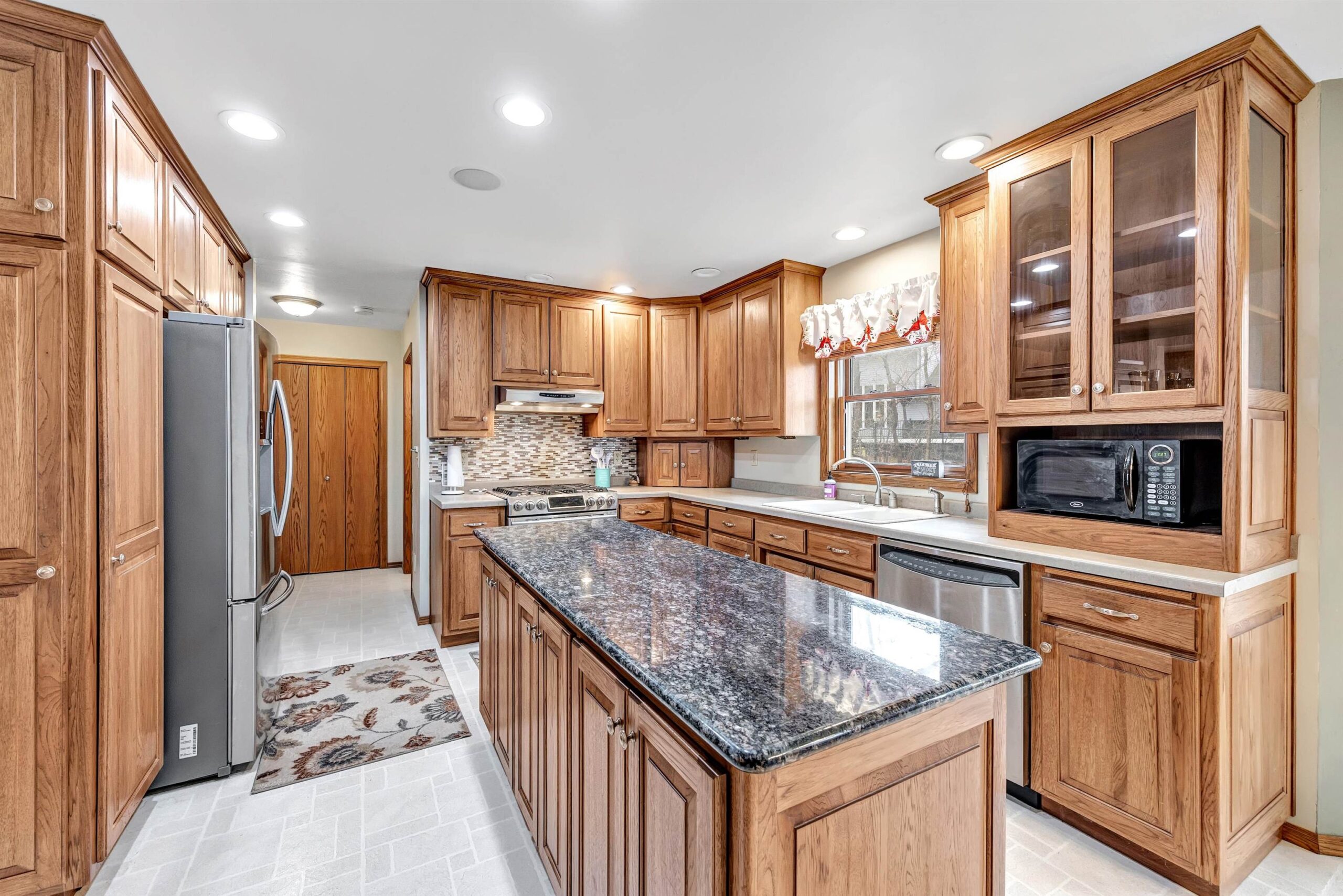 Nestled on a peaceful cul-de-sac near UWGB w/quick access to Hwy 43, this classic New England-style Colonial offers timeless charm & modern updates. The sun-filled interior showcases elegant crown moldings, a spacious front-to-back living room with cozy gas fireplace. Enjoy entertaining in the formal dining room w/hardwood floors, or cook in the beautifully appointed kitchen featuring custom hickory cabinets, granite island, & included appliances.The primary suite includes a full bath & walk-in closet. A finished lower offers a rec room & 2 bonus rms, full bath. First-floor laundry in half bath. Relax on the deck overlooking the partially wooded, fenced backyard. Garage 2.5 wide & 1 stall extra deep. Seller requires 48 hour binding acceptance but reserves the right to accept at anytime.