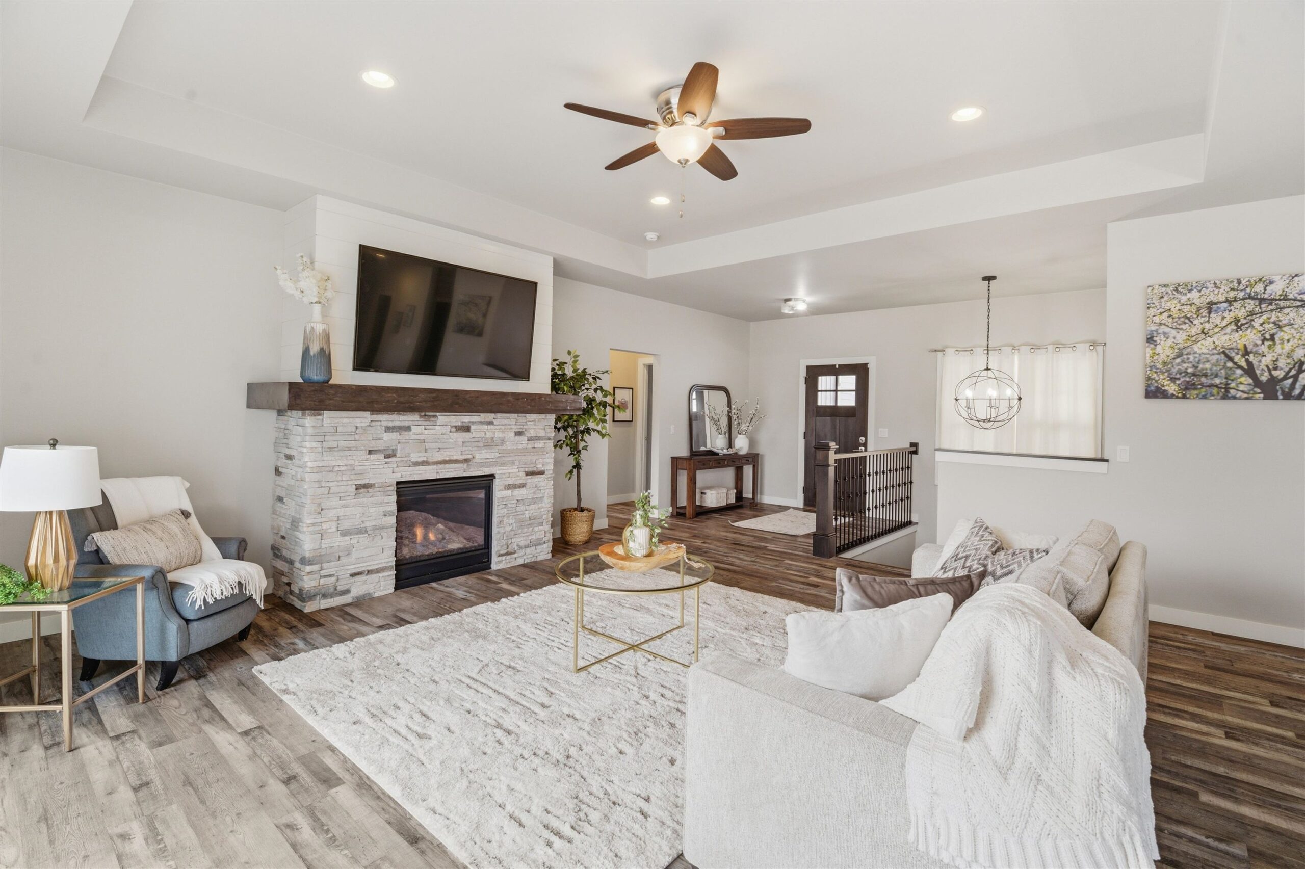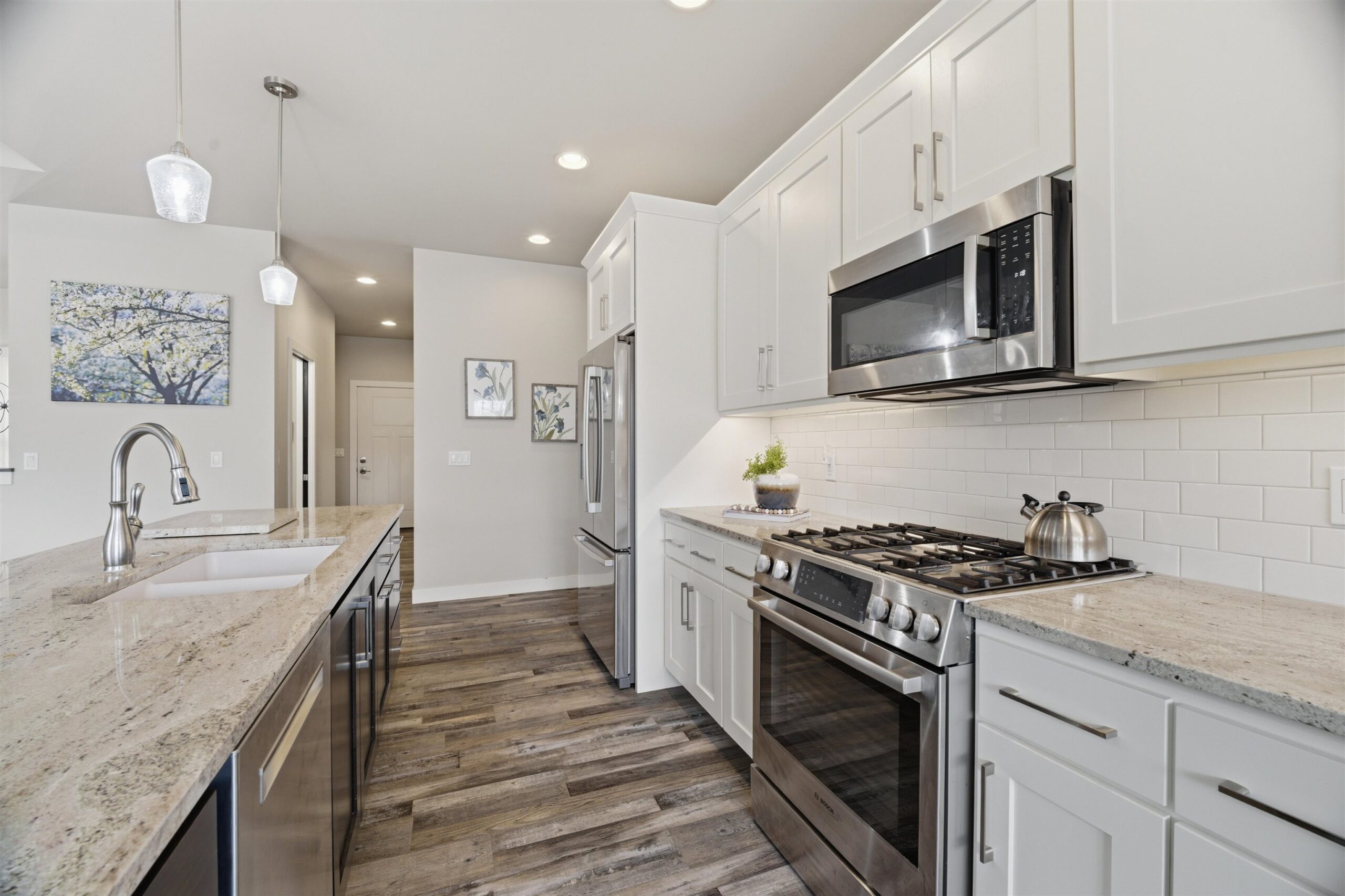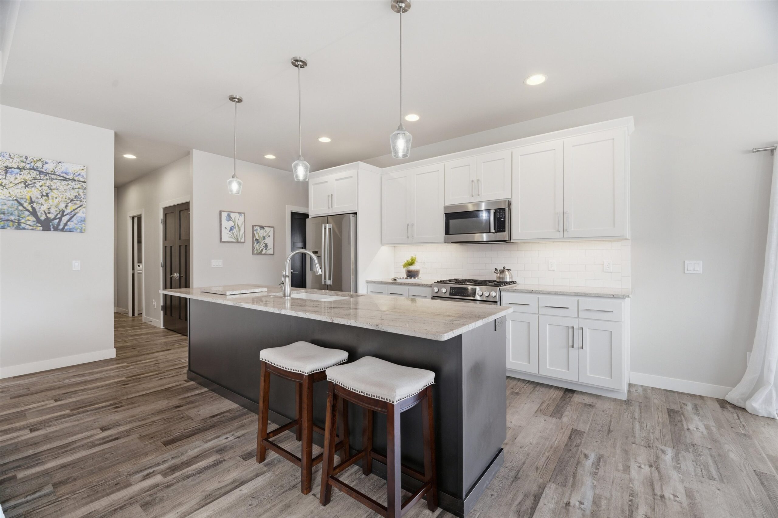 FeaturesAt Least 1 Bathtub, Gas, Kitchen Island, One, Pantry, Split Bedroom, Walk-in Closet(s), Walk-in Shower, Wood/Simulated Wood Fl