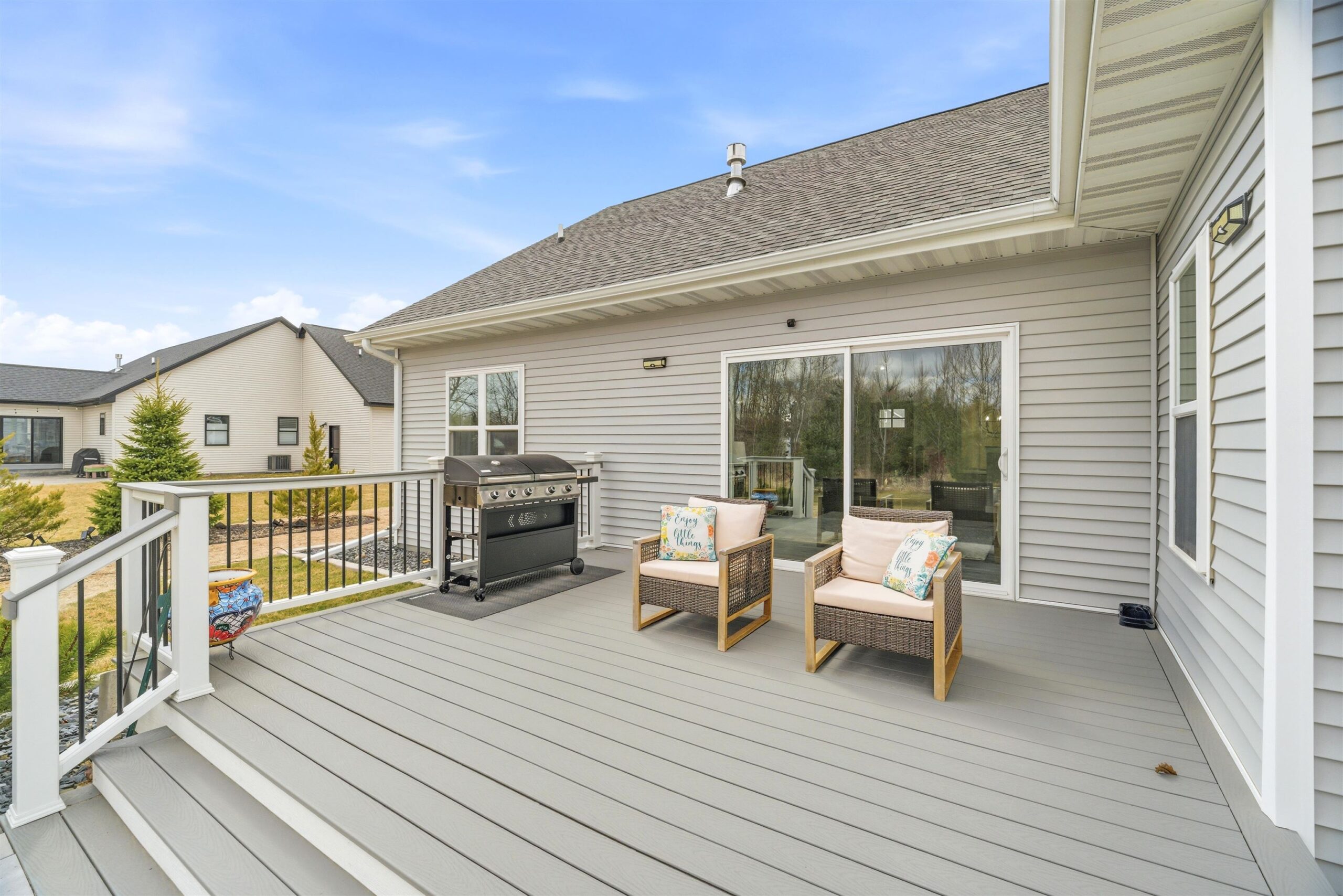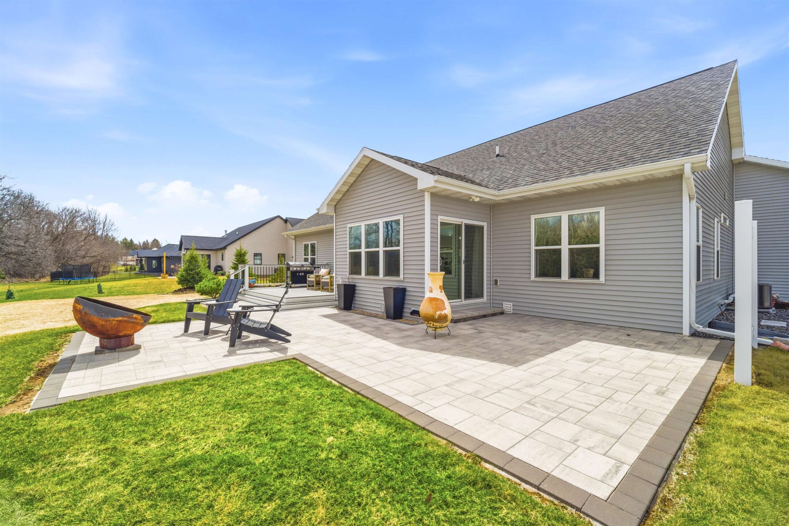 Stunning Ranch Home in desirable Greenville. Step inside to a large foyer that leads into the living room w/ gas fireplace with a patio door leading out to your composite deck and private backyard. Gourmet kitchen w/ granite countertops, center island, pantry and a full appliance package. Dinning room offers patio doors leading out to the paver patio. Master suite with walk-in closet, private bath featuring dual vanity and tile shower. 2 additional bedrooms and a full bath offer a split design home. Laundry room w/ plenty of cabinets, locker area and half bath complete this home. Lower level ready for your finishing touches with 2 egress windows & stubbed for a 3rd bath. 3.5 car heated garage w/basement access. Former Parade Home!