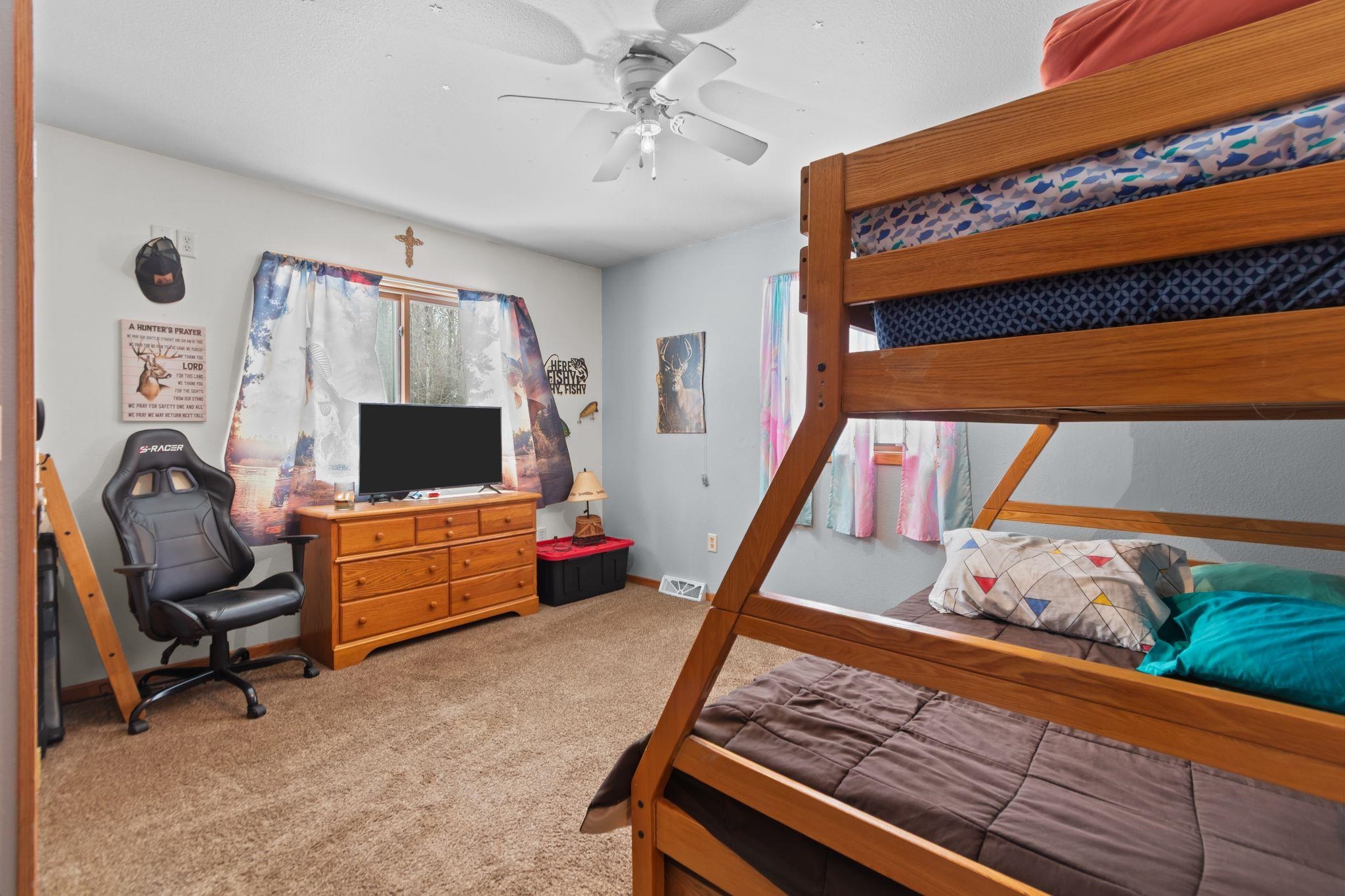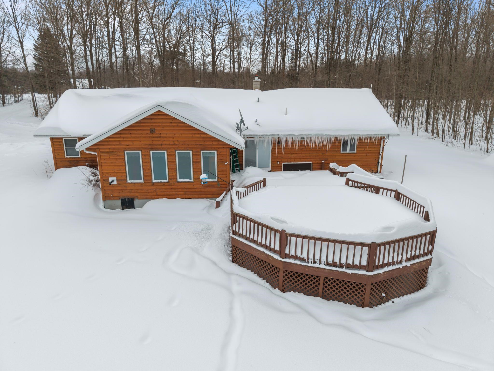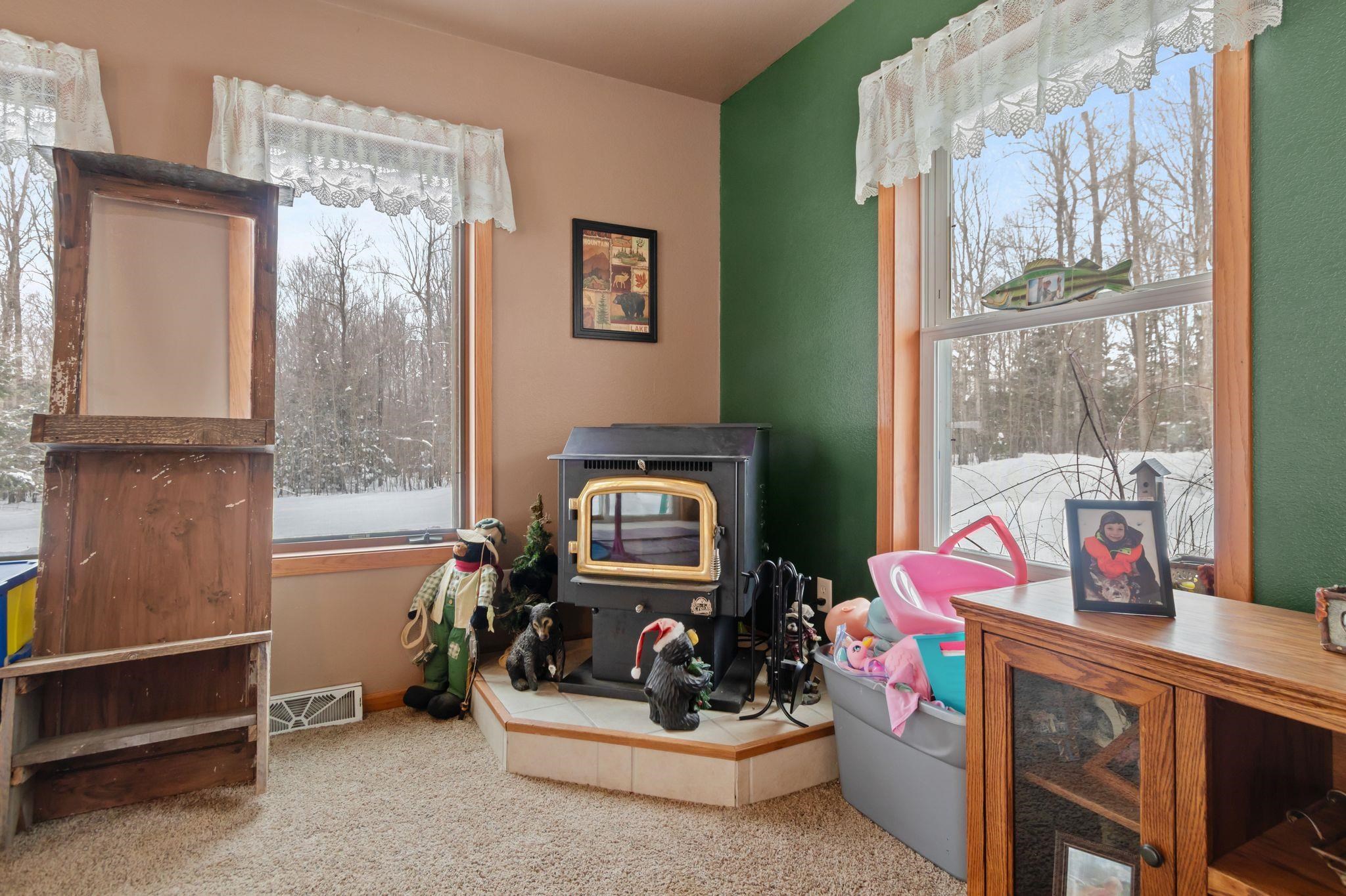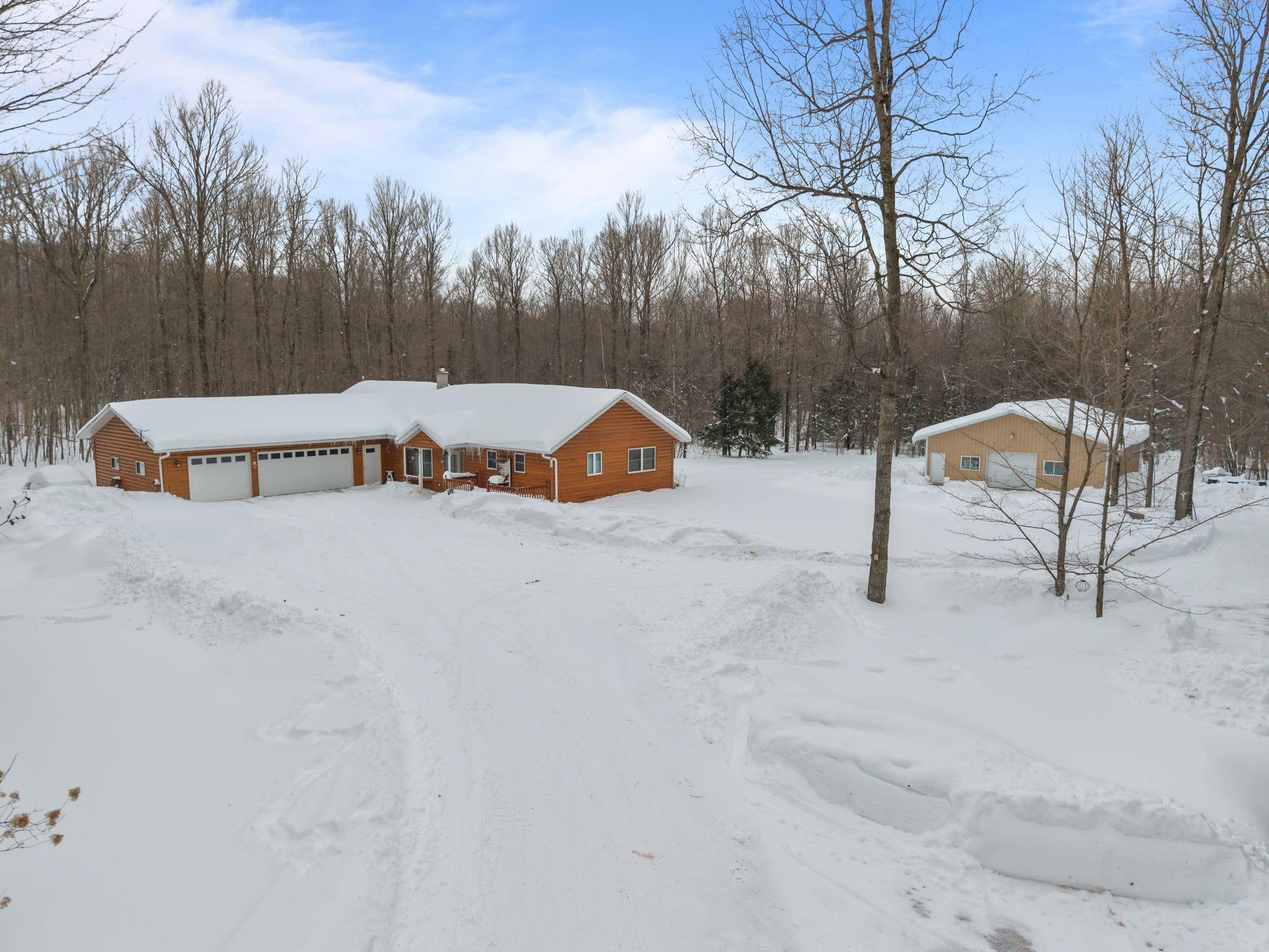Beautiful secluded custom-built home on nearly 20 wooded acres- hung on your own land! Spacious kitchen and dining area with cathedral ceilings, staggered cabinetry, and large pantry. Enjoy the large deck with access from kitchen and sunroom. Four-seasons sunroom with French doors and pellet stove. Primary suite with double sinks, jetted tub, and walk-in closet. Full basement with 9 ft ceilings, partially finished-easy to expand living space. Wood burner primary heat with LP backup. 36x48 drive-through garage with two 24x13 horse stalls plus ample storage.