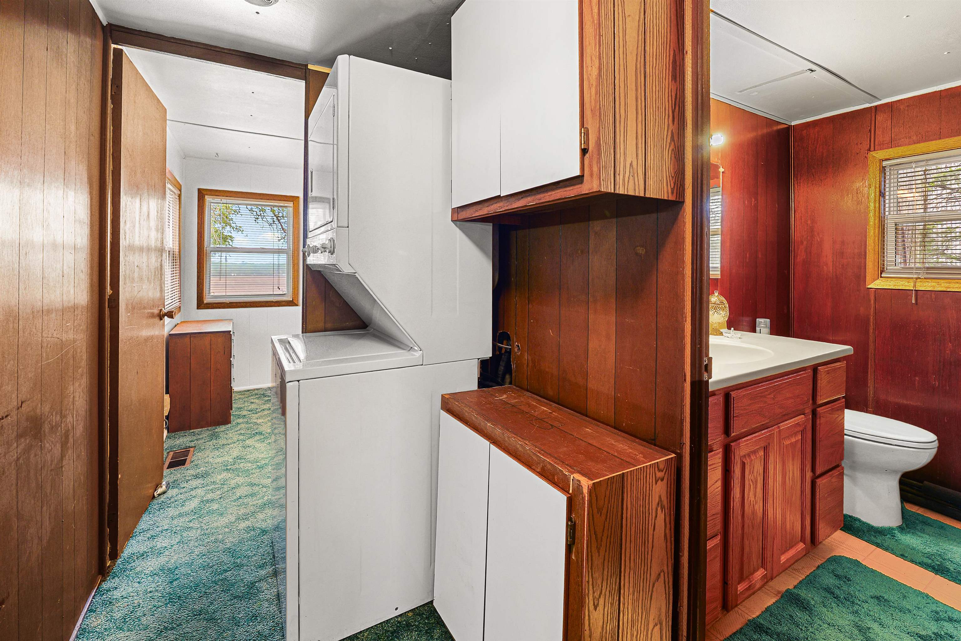 Washer, Dryer, Dishwasher, Refrigerator, Cooktop, Microwave, Stand-Up Freezer, Utility Room Cabinets.