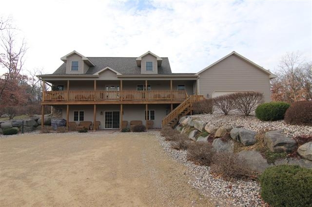 Beautiful 6 yr old Cape Code located on 7.8 acres. This custom home boasts many upgrades:gas fireplace,arched pass thrus,custom tile work,covered decks, large windows, stainless steel appliances & great room.The finished basement contains a rec room complete w/in floor heat & custom bar. Attached garage with in floor heat & plumbing. The home is professionally landscaped with nice yard A large shop is also included. Home warranty incl. Meas app