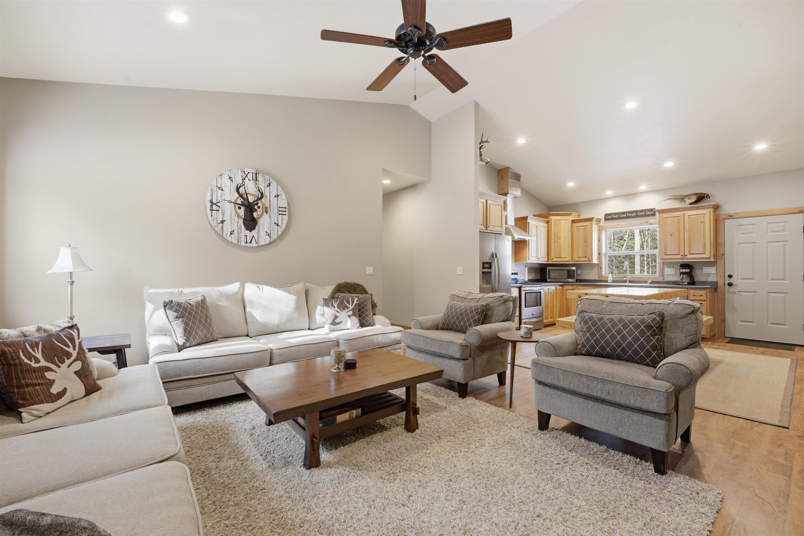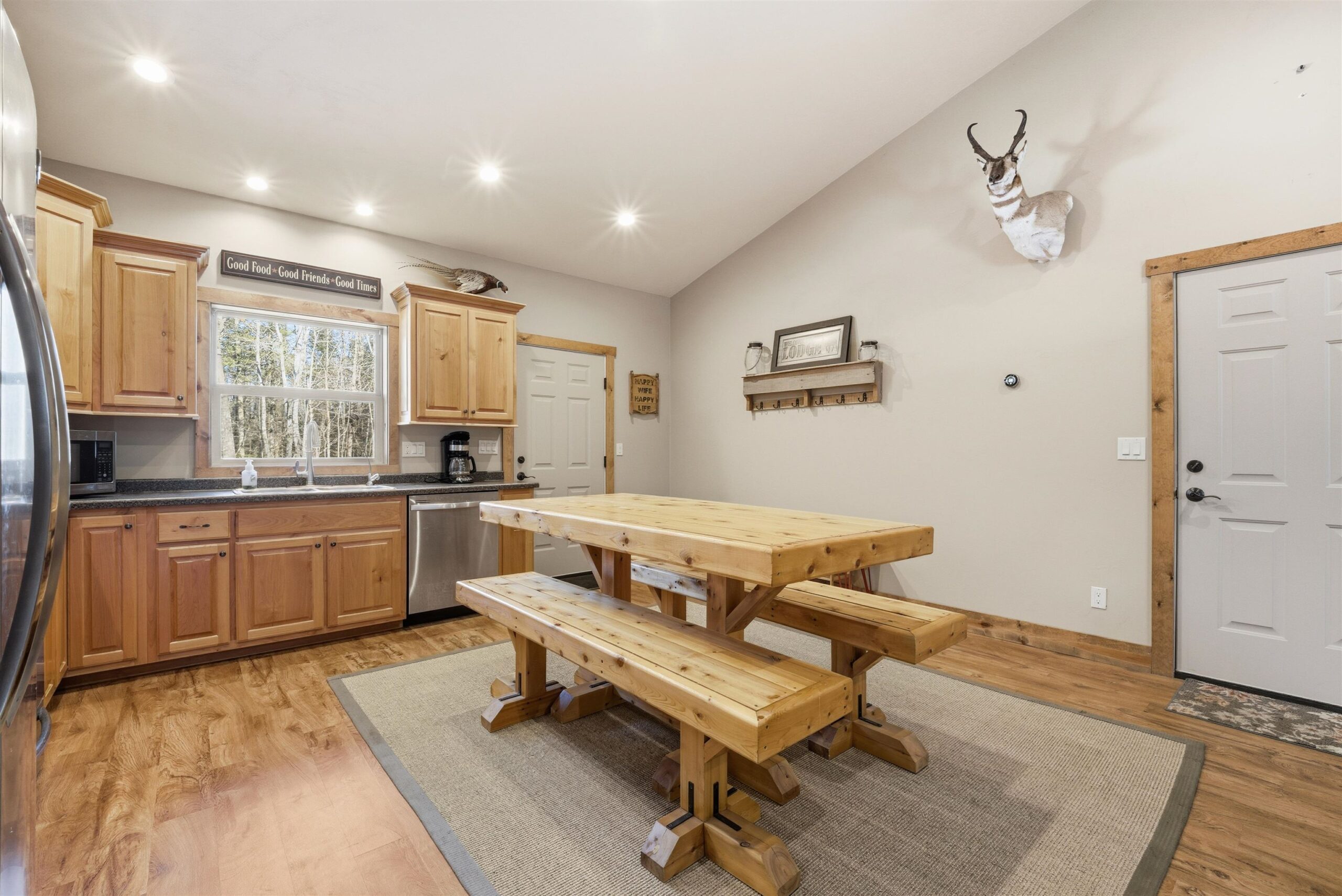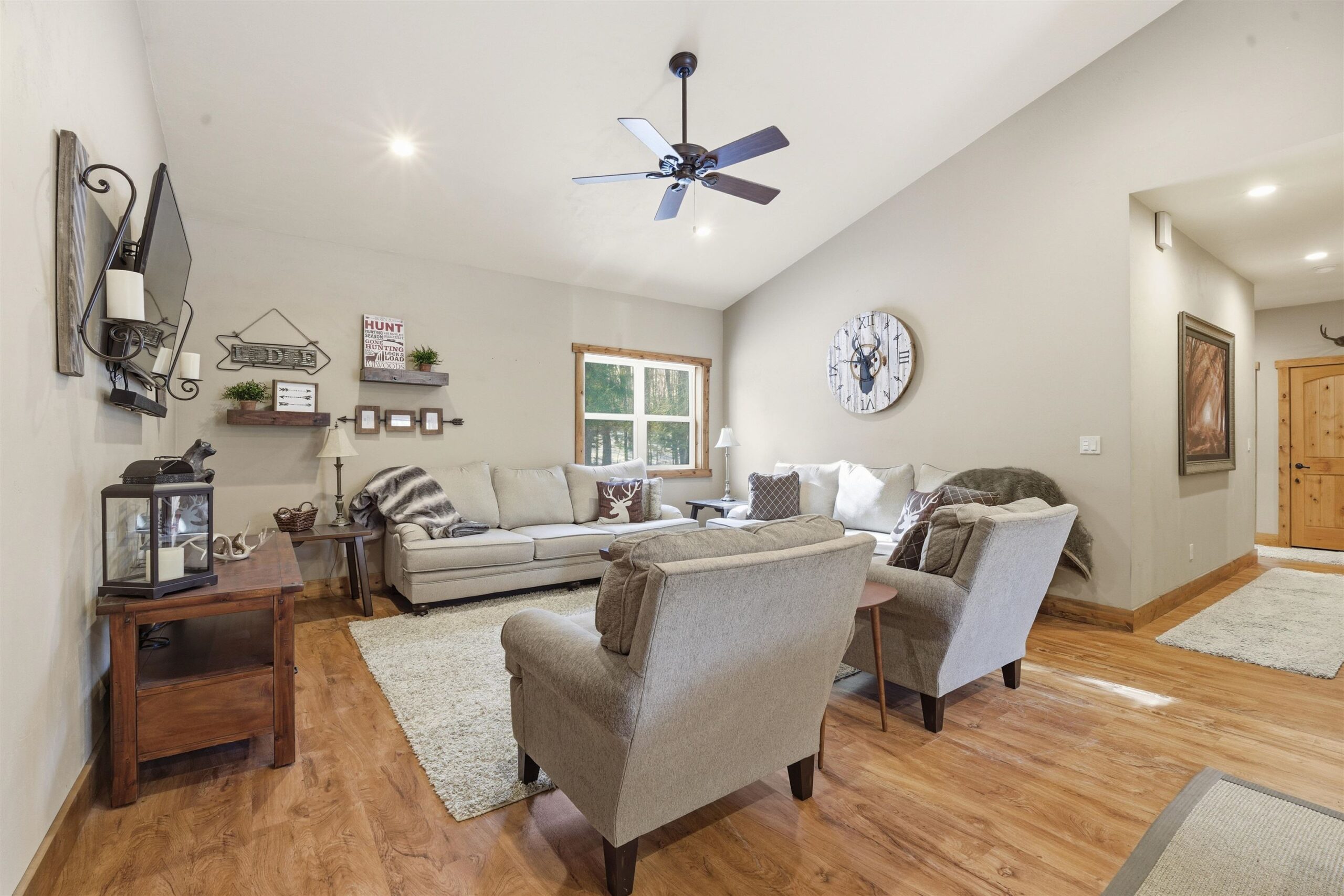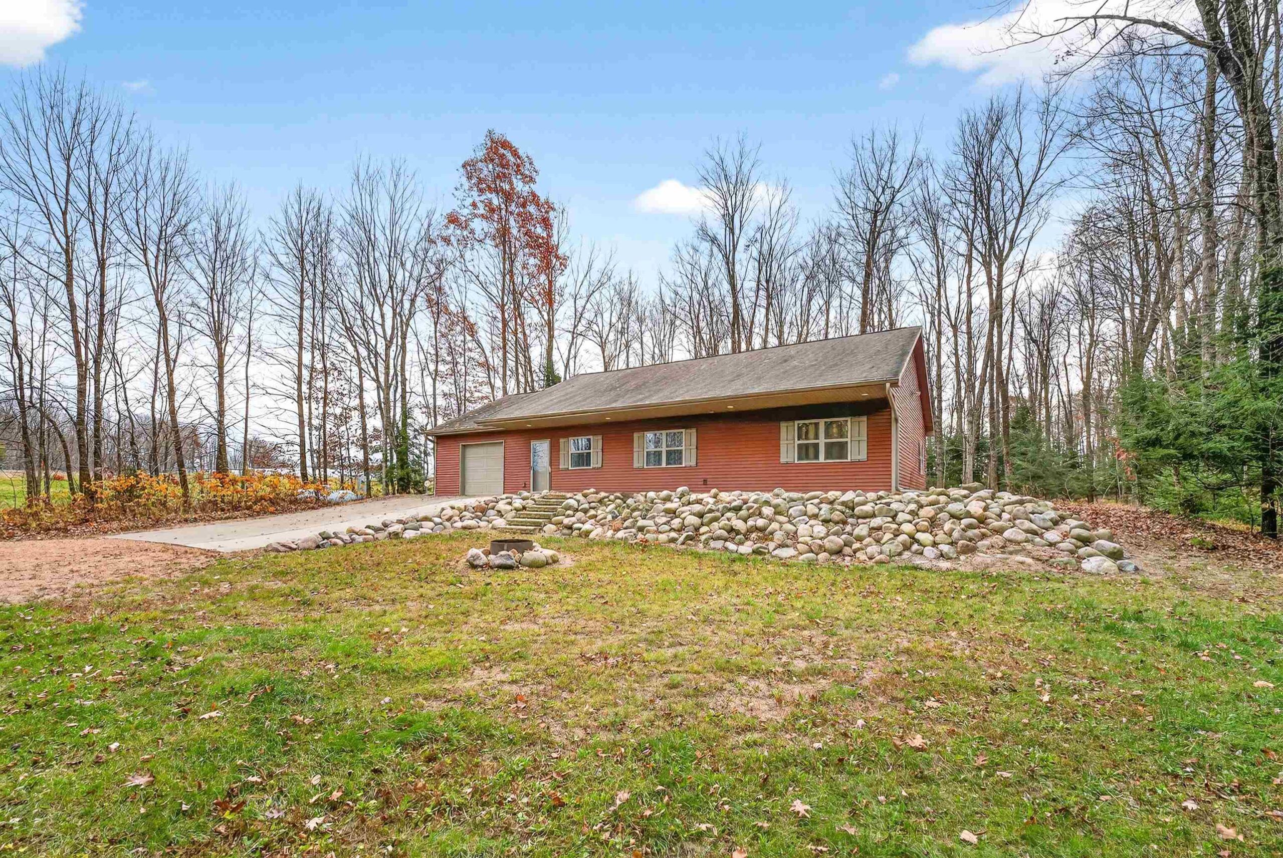 Located near Prime Hunting Area. Custom built ranch situated on 2+/- acres in the Heart of Tigerton. Open concept with spacious living room and eat-in kitchen with custom cabinets and full appliance package plus a reverse osmosis system. 4 spacious bedrooms and 2 full baths. In floor heat throughout. Attached heated garage with concrete parking area, main floor laundry room includes washer and dryer and a scent free room for all your hunting items. Area behind cabin with potential for food plot. Covered front porch area with full landscaping and firepit area. Septic system rated for 3 bedroom. LP tank leased. Listing Agent has an ownership interest in the property.