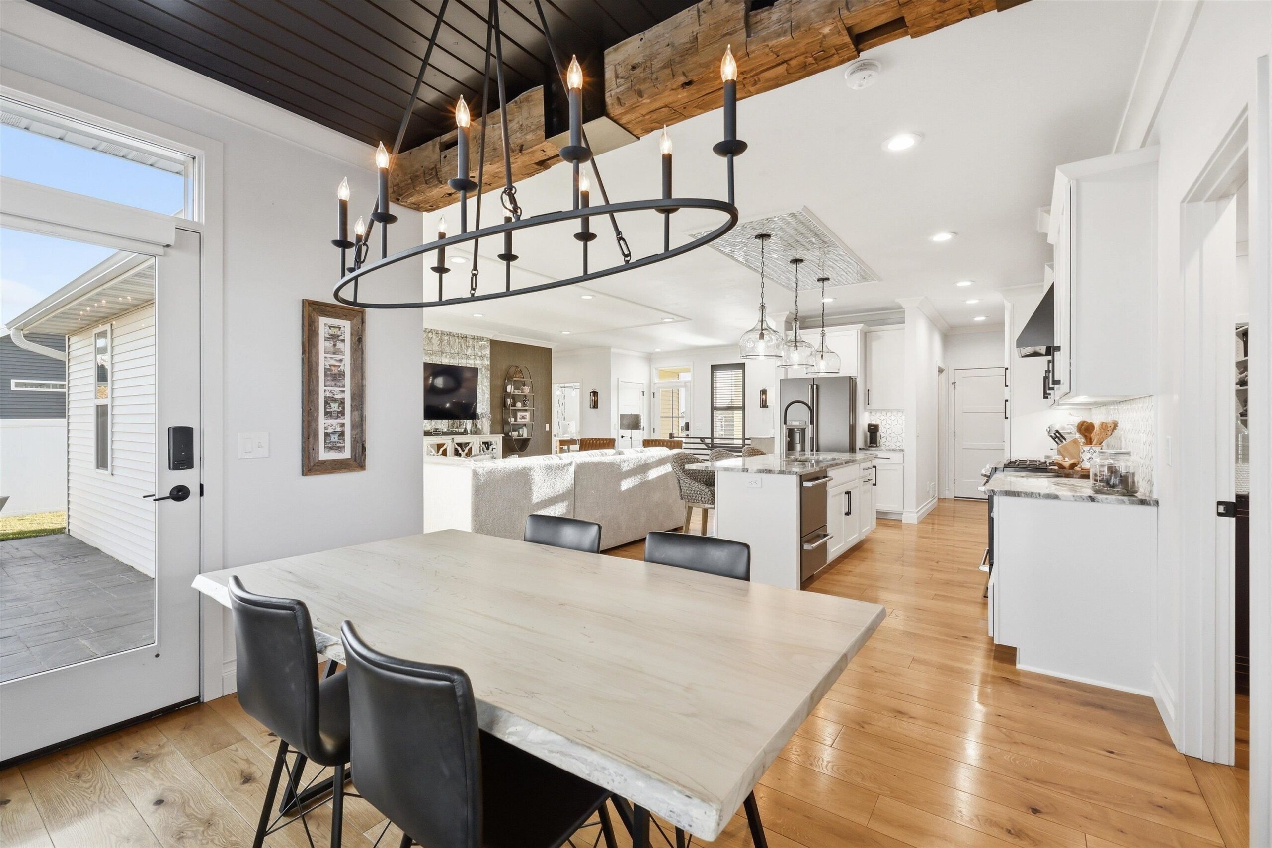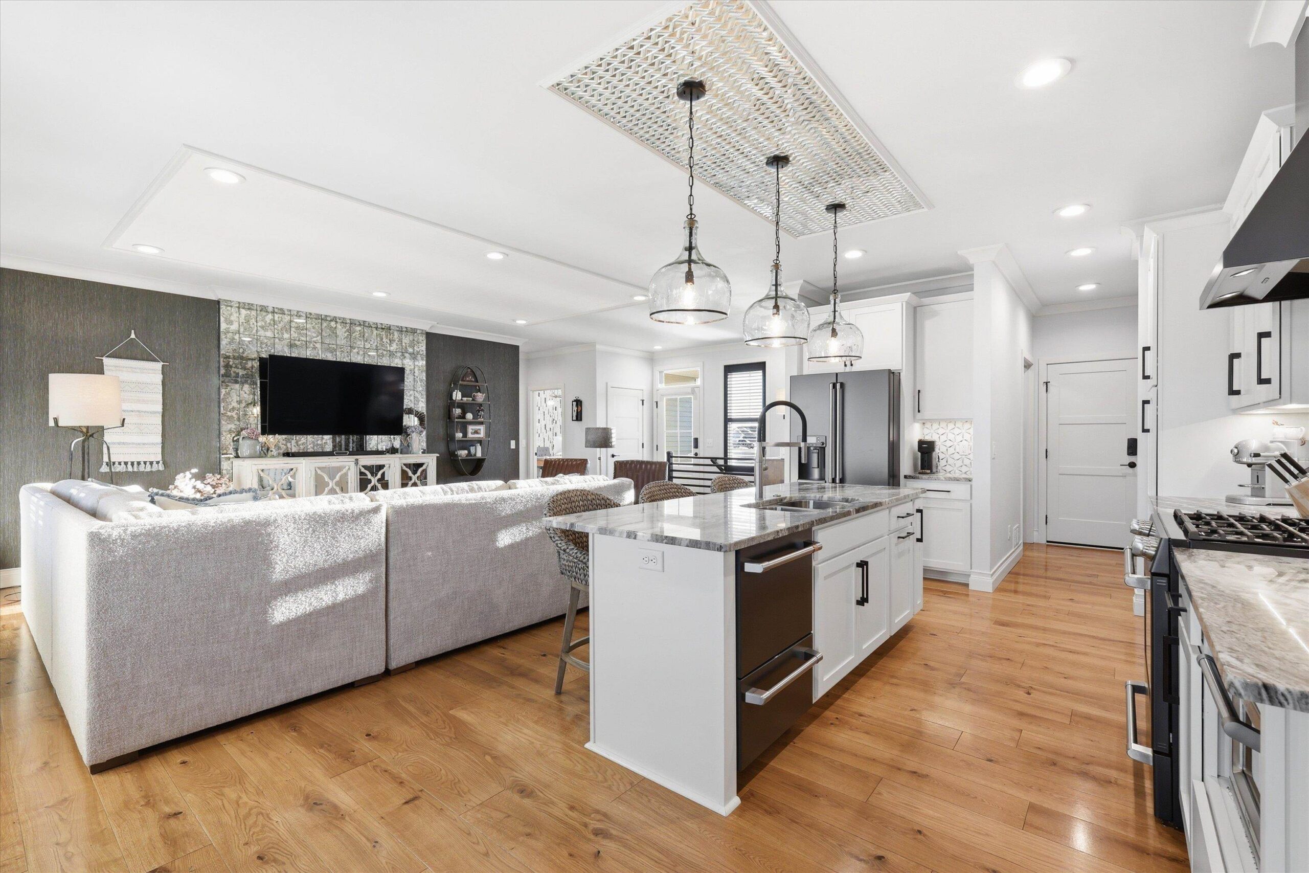 Luxury ranch in Greenville WI, privately located in Savannah Heights Subdivision with high-end custom finishes throughout. Features include hardwood floors, custom tile showers and bathrooms, quartz kitchen with island and gas range, designer lighting, crown molding, and custom wallpaper. Fully finished and heated garage with epoxy floors, custom cabinets, fans, lighting, and Reznor heater. Exterior includes stamped concrete patios, vinyl fencing, and beautiful landscaping. Side-by-side friendly roads allow direct access to local destinations. Seeking a move-in ready luxury ranch home near Appleton with unique design and zero projects? This is it!
