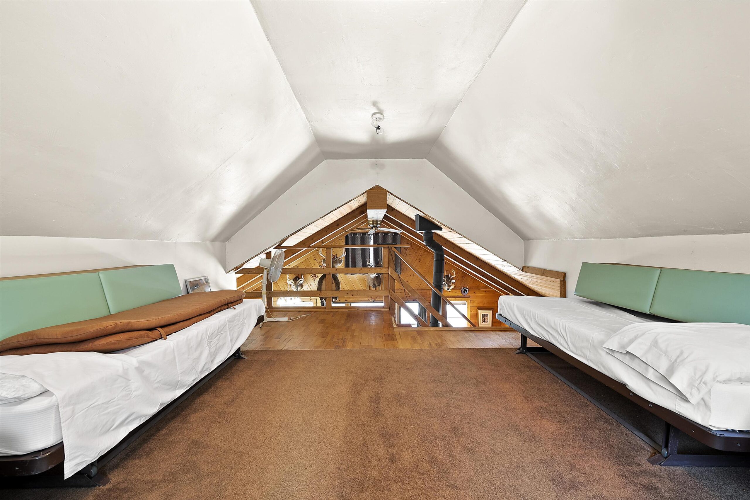 Venture North to N12184 Long Lake Road! This charming 2 bed, 1 bath lofted home/cottage sits on 16.25 acres directly across from Long Lake, offering the perfect Northwoods escape. Enjoy year-round comfort with a wood burning stove, forced air furnace, and central air. The property features a 60x40 shop with an additional 20x24 heated workshop, 12' door, metal roof —ideal for Rv storage, hobbies, toy storage, or business use. Garage under the home adds convenience. New roof in 2025 and most furnishings included make this a turnkey opportunity. Neighbor has access through the driveway. A rare blend of privacy, space, and functionality!