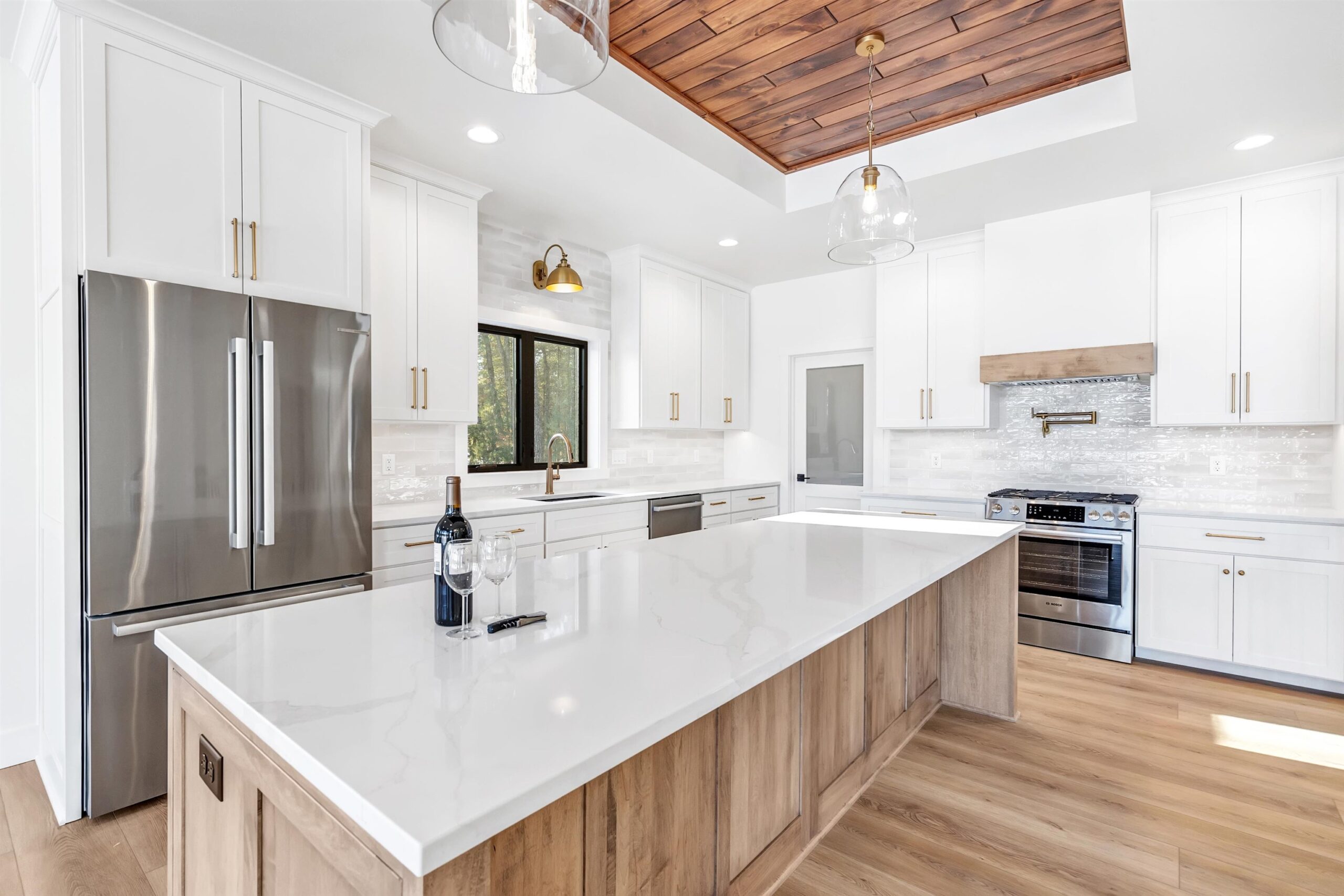 NEW CONSTRUCTION: As one of the few remaining waterfront lots, nestled in the heart of the breathtaking Legend Lake. You'll have unobstructed waterfront views, arguably the finest in this stretch of waterfront. Private dock for a boat, fishing, swimming, relaxing in the sun and enjoying the 42+ miles of shoreline that Legend Lake has to offer. This home is a Ranch walkout and offers 2,967sf, 4 bedrm, 3 full baths, w/a full finished walkout. Amenities include a Gourmet kitchen w/oversized island and quartz countertops, custom painted cabinets, LVP flooring, large pantry, oversized patio doors, SS appliances, Mudrm w/custom lockers, elegant ceiling box beams in main living area, primary bedrm has lake views, tiled shower, dual sinks, LL large recrm w/wetbar, two FP, heated garage and more.