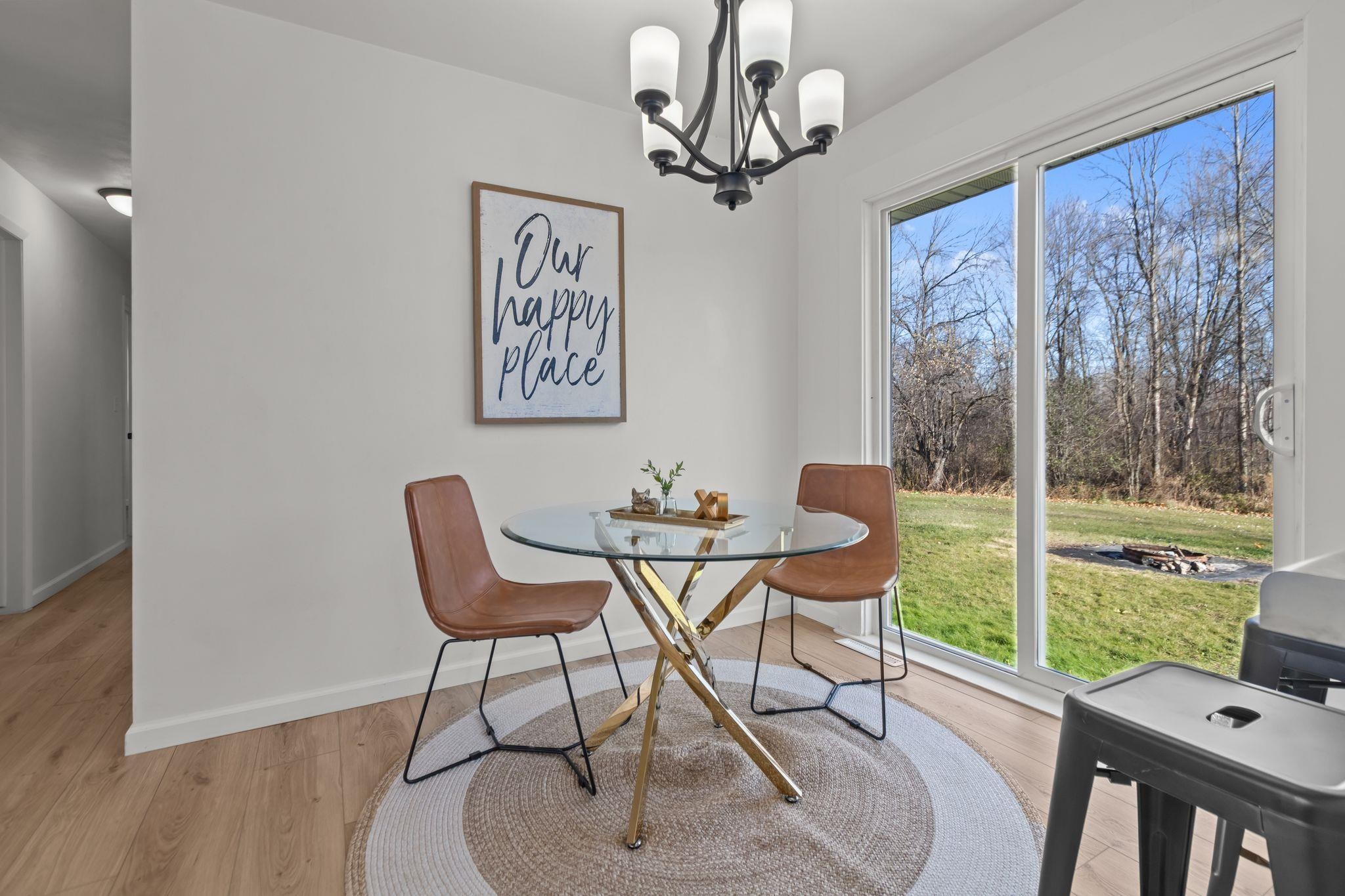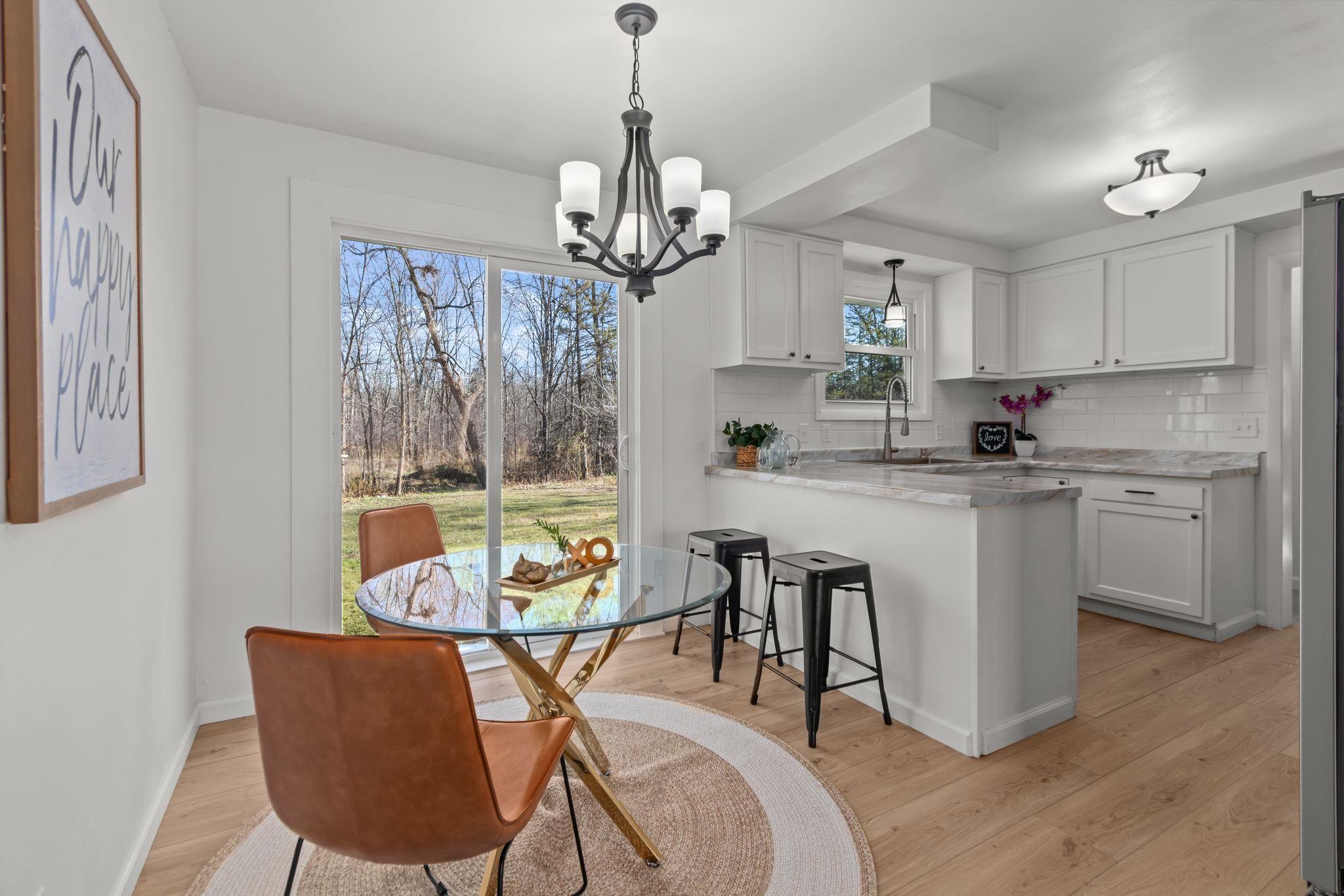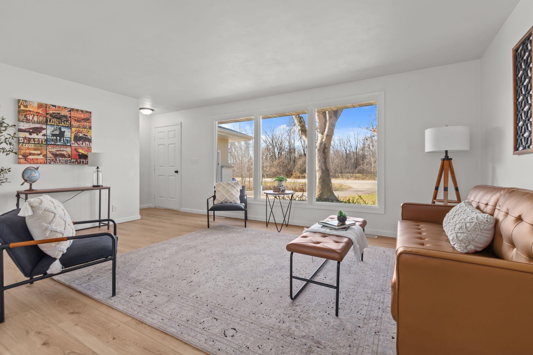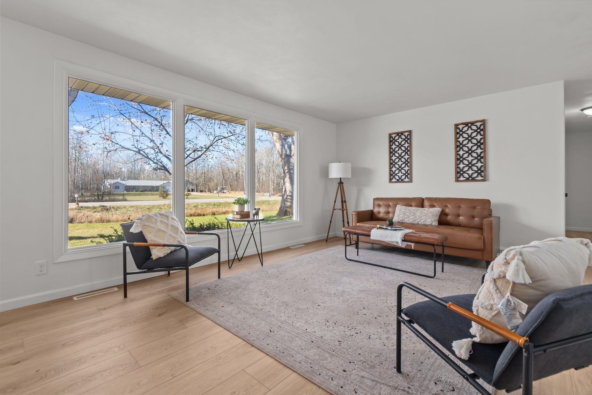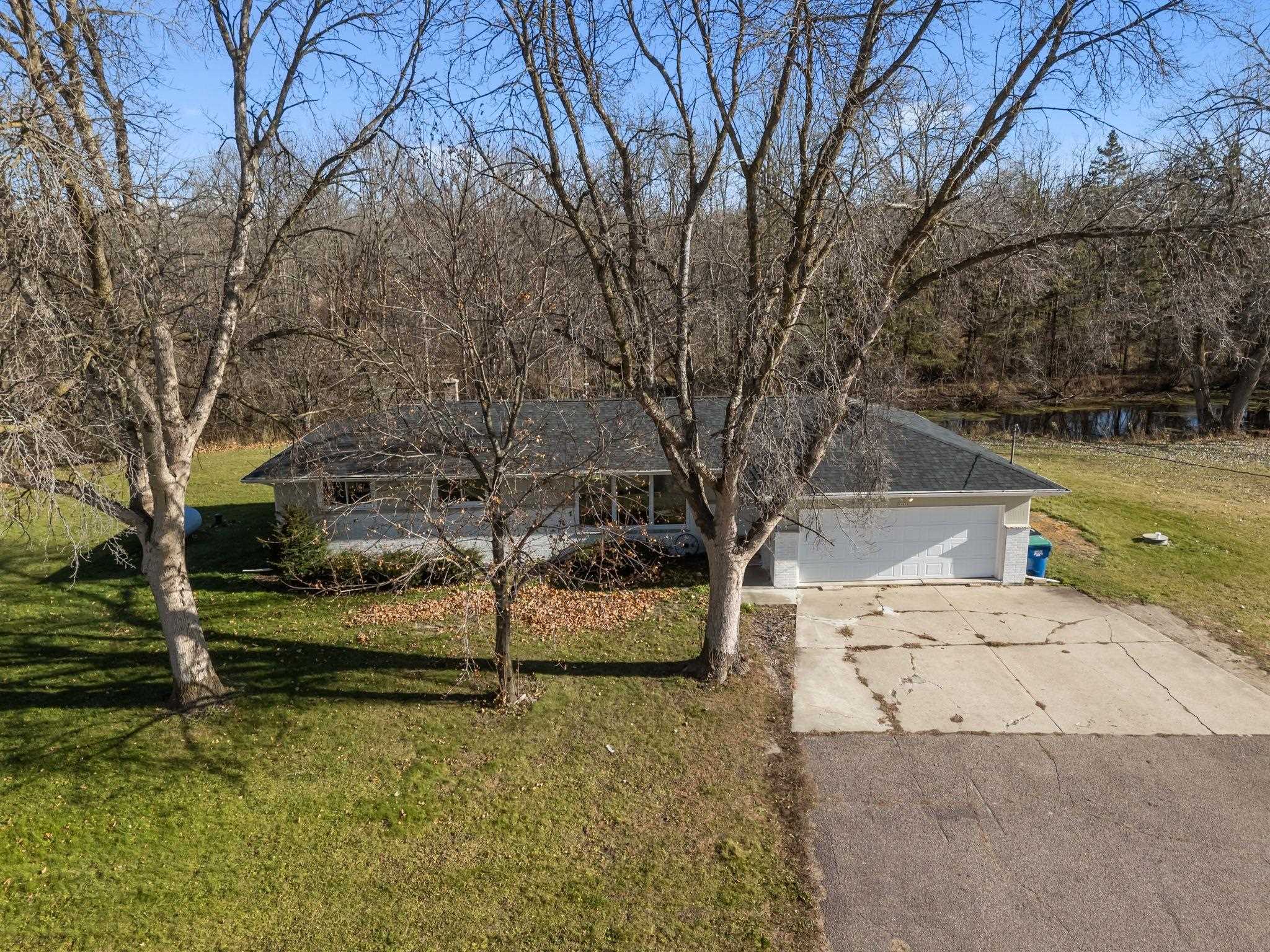 Beautifully remodeled ranch on approx. 2 acres with its own private pond. Updated top to bottom within the last year, this move-in-ready home features all new windows, roof, new kitchen & appliances, and partially finished lower level. Property has 3 bedrooms, 2 full baths, and an attached 2-car garage. Incredible storage with a detached garage approx 39x24 and a 30x24 metal-roofed garage. Parcel to be surveyed to reflect approx. 2 acres at seller’s expense. Portion of land may be in MFL; updated info to come. Entire parce w/40 acres available for $575,000. Do not walk land without permission—active hunters may be present. lower level square foot approximate and buyer to measure for accuracy in LL.