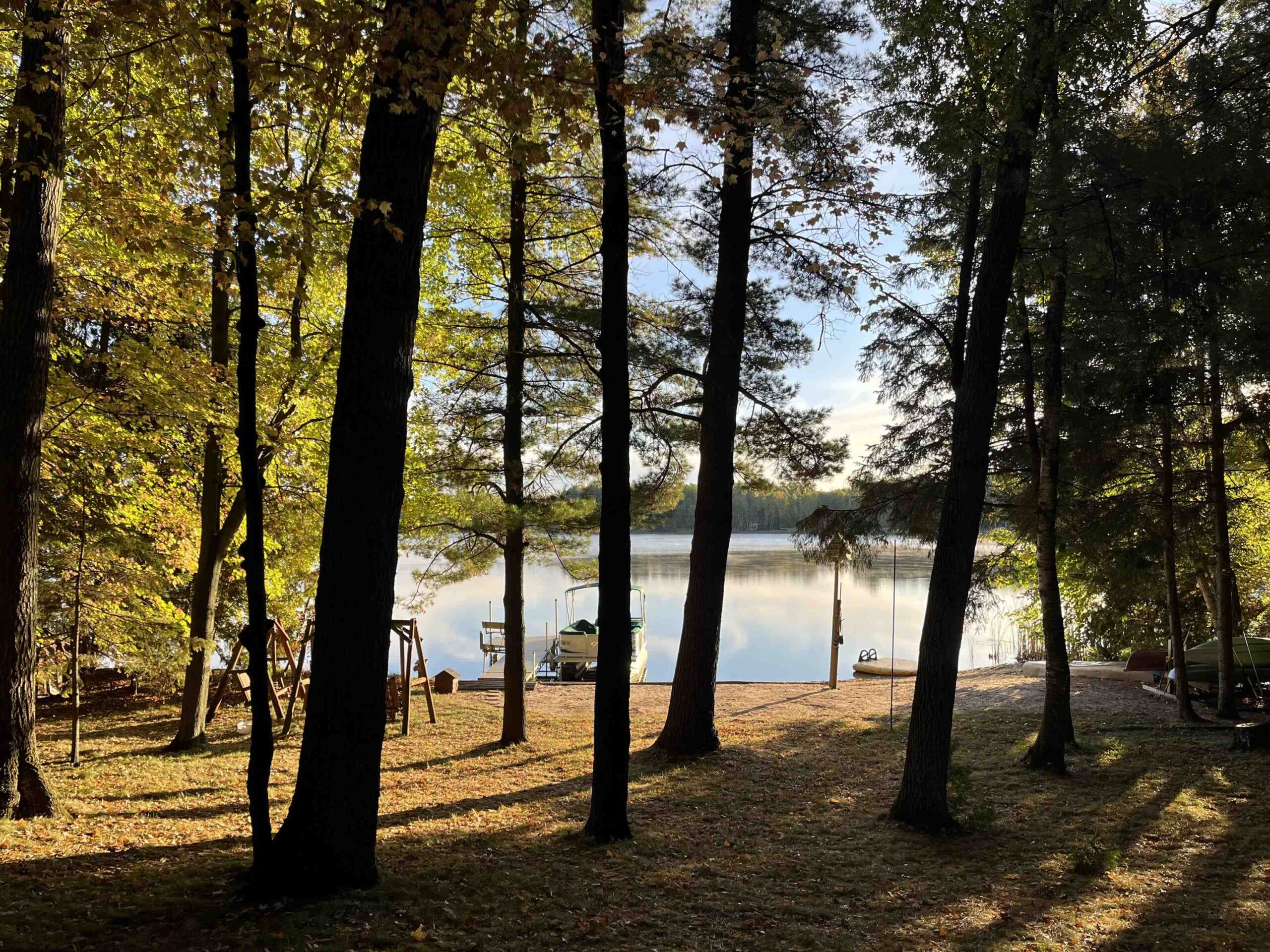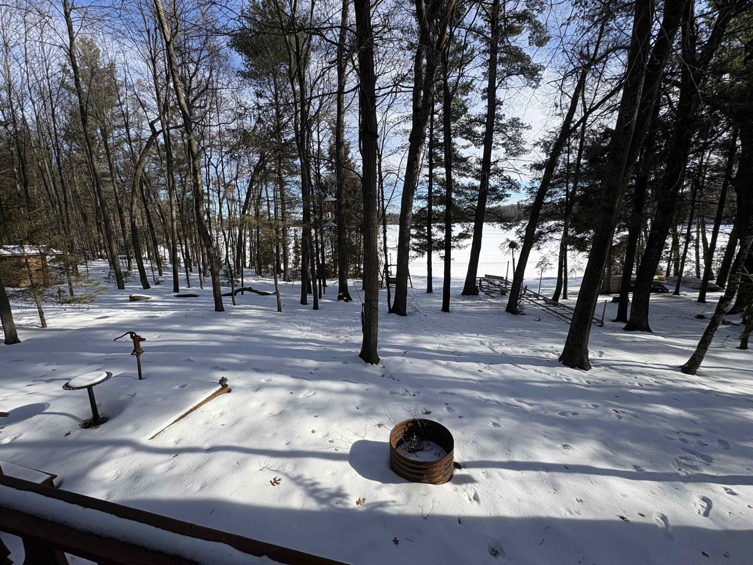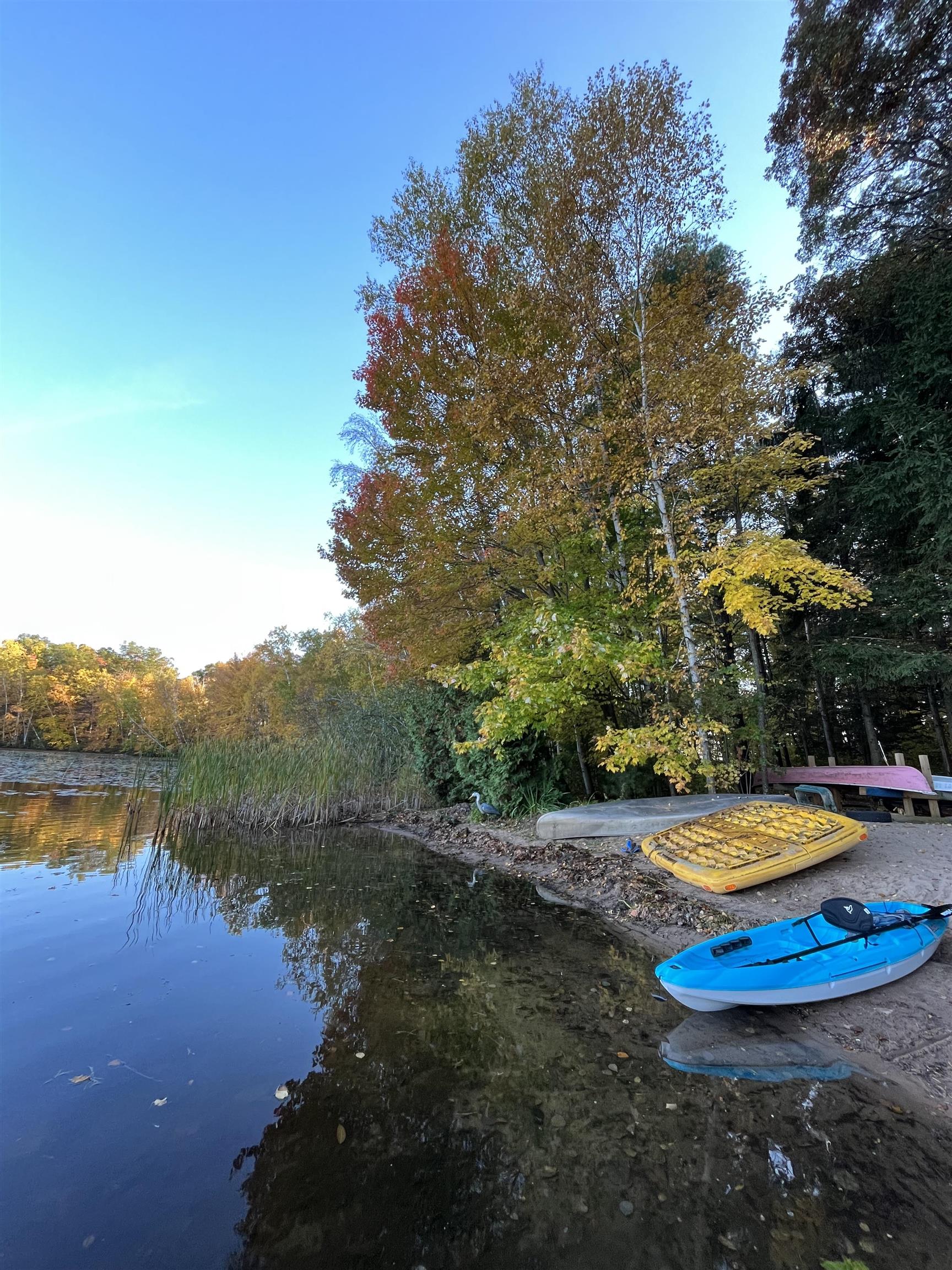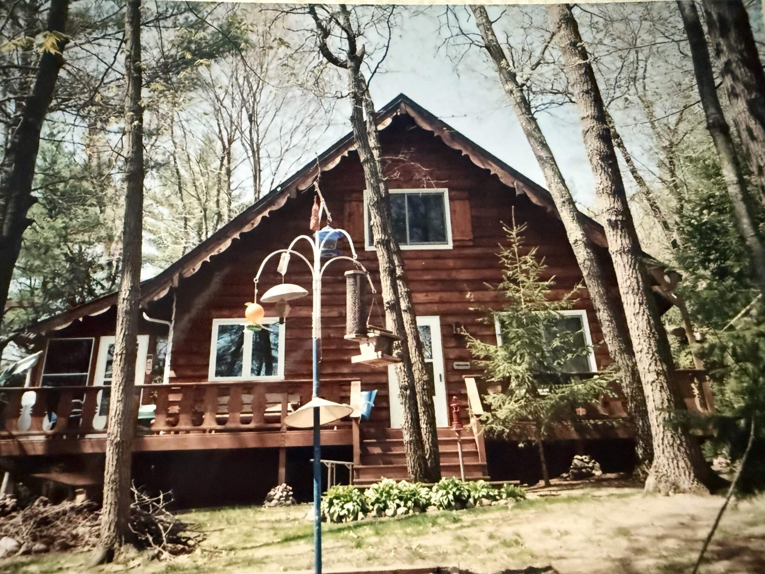 Picturesque Chalet style home located on Legend Lake. A unique package deal, this gorgeous lake home includes 2 lots combining for approximately 1.1 acres, & a sprawling 174 feet of lake frontage! You'll be blown away by the beautiful wooded setting, w/ amazing overall views of the water & stunning sunrises for years to come. Shoreline boasts a nice sandy frontage for you to relax & enjoy the water. Home features 3 bedrooms, 2 full bathrooms, & a finished bsmt area (walls are painted concrete). Views of the lake from the kitchen & living room area, which feature a cathedral ceiling & a beautiful masonry wood fireplace. Small screen porch leads to a waterfront deck out front. Detached 3-car garage for your convenience. Home has A/C. Potential to sell lots separately. An absolute must see!!