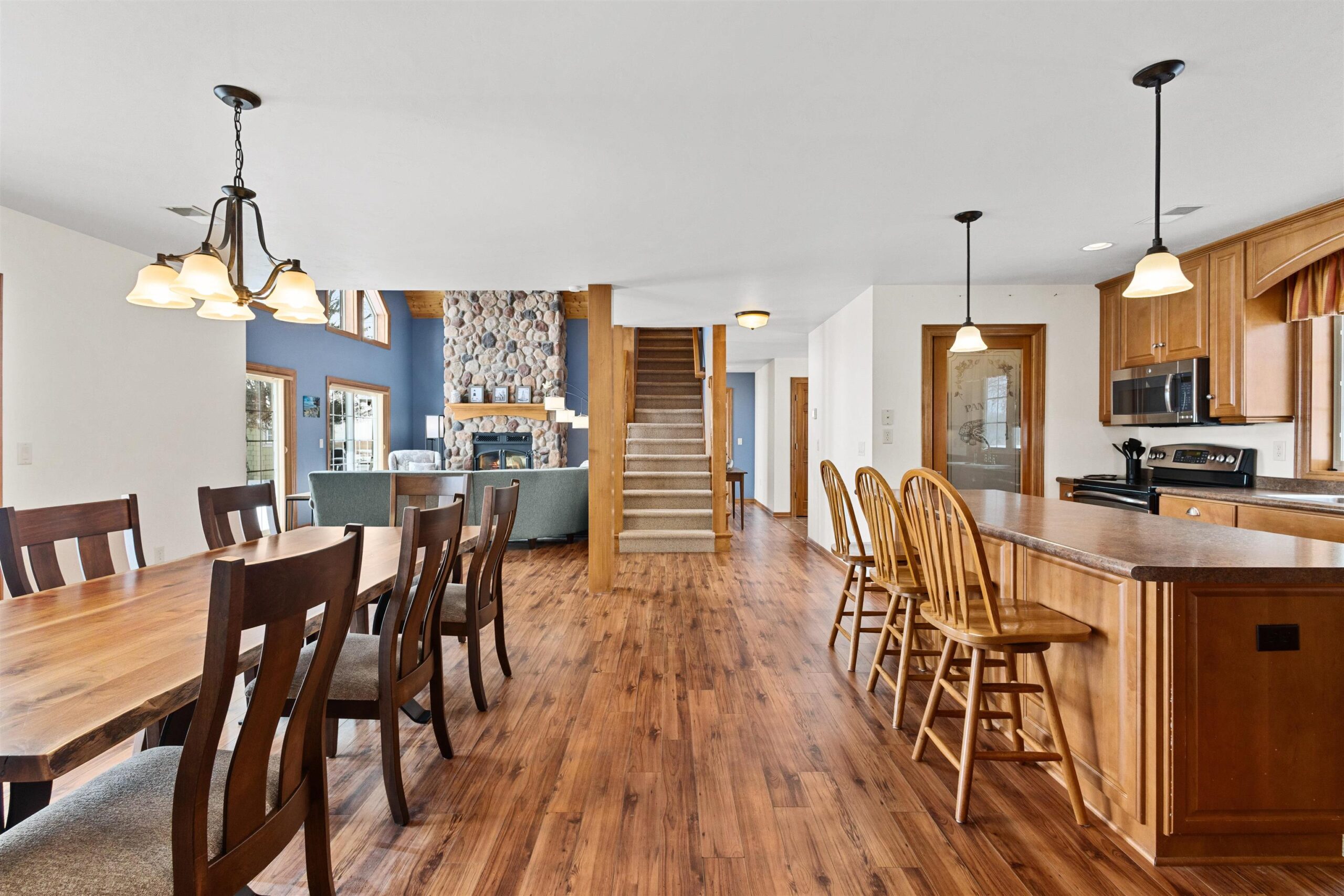 Welcome to this elegantly designed, secluded custom blt ranch-style hm ftring 9-foot clgs, plantation shutters, a vaulted ceiling, massive kitchen, oversized isld, double ovens, shaker cstm cabinets, granite counter tops, + ovr 4500 sqft! This private retreat on 2.64 acrs provides seclusion. This expansive hm offers 5 bdr & 3 1/2 bths, along with 2 addtl rms. The prm st ftes spa inspired wk-in shower, jacuzzi tub, double vanity, and generous wk-in clst. Kids’ bths also has 2 sprt vanities with a dr to sprt the vanities from the shwr. The fully finished bsmt features an electric fireplace and 2nd kitchen with custom cabinets, a double sink, and dishwasher as well as an extensive walk-in pantry.