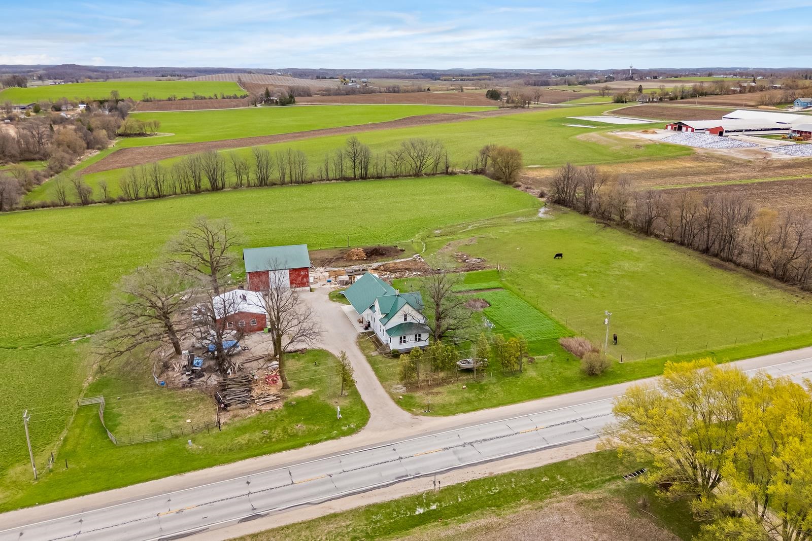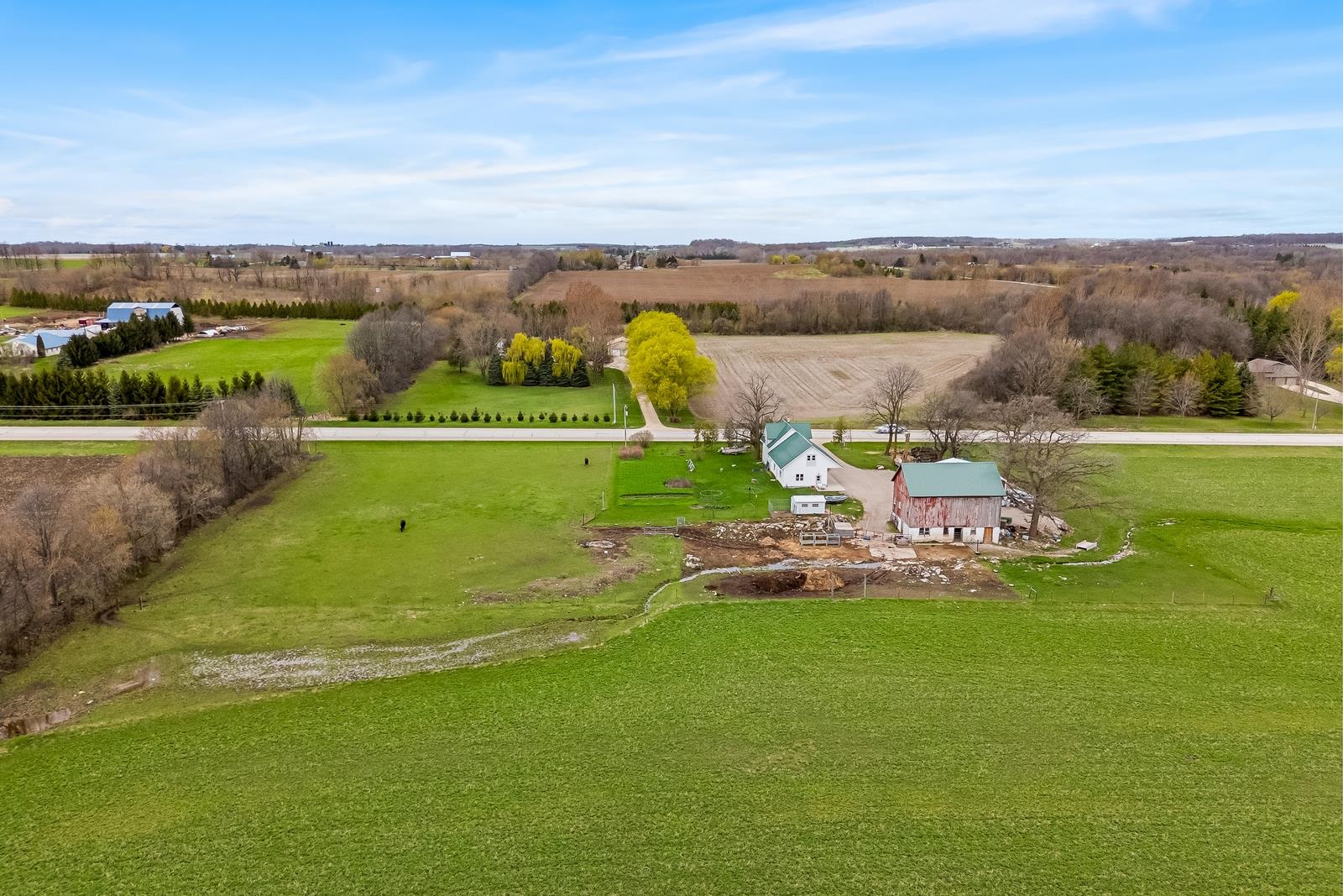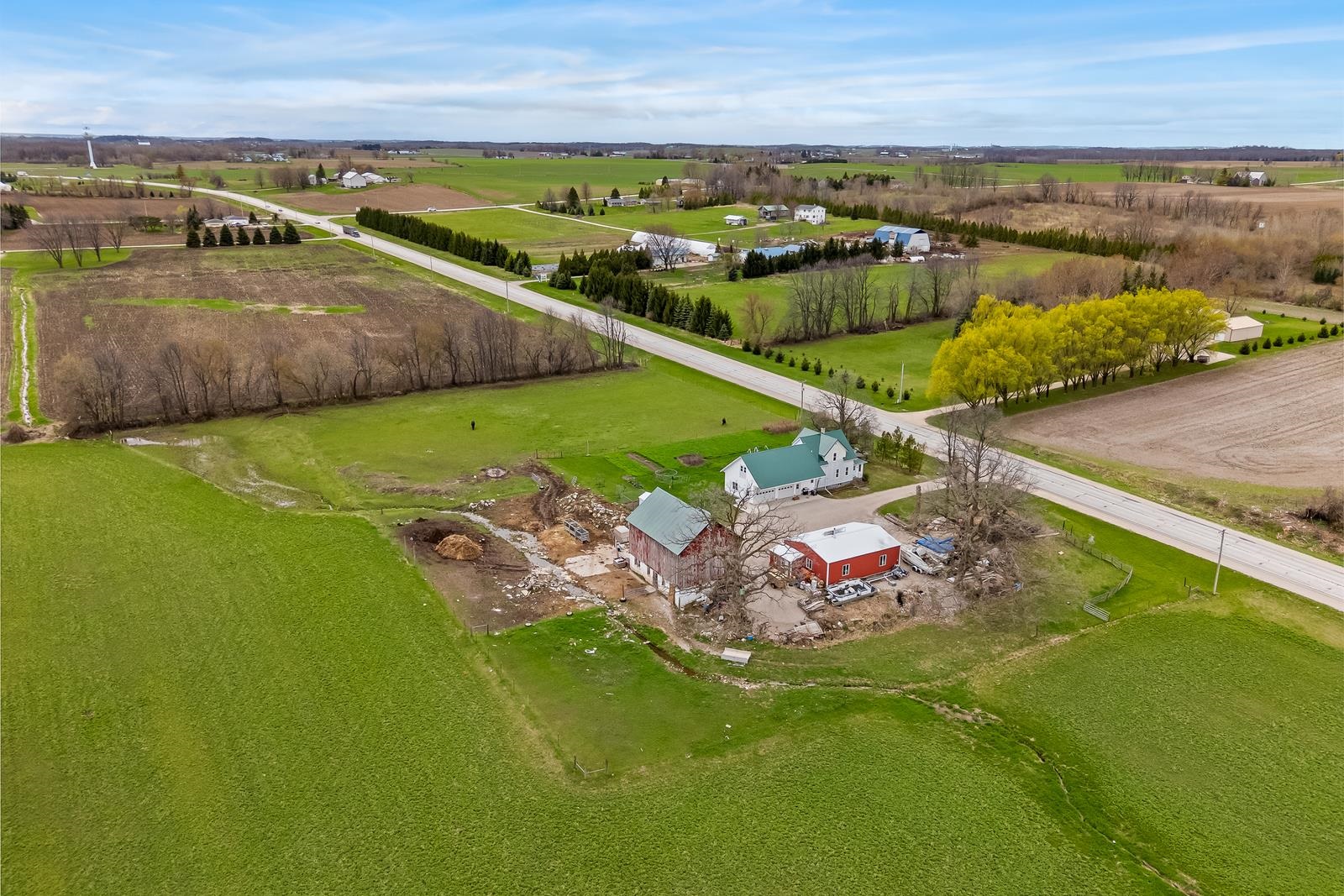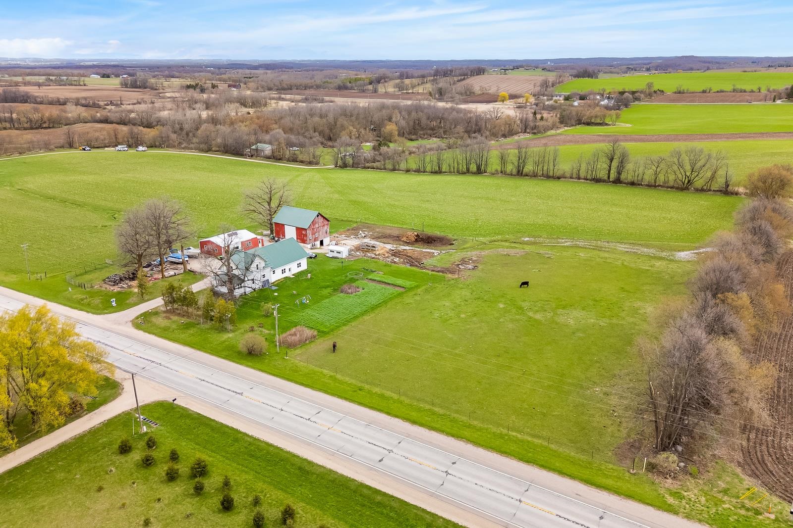 THERE IS SO MUCH HERE, you will want a HOBBY FARM in your future! Just North of New Holstein, come home everyday to a little piece of country. REMODELED home w/32x24 attached garage & addition to house. Garage has in-floor heat (11' side walls & 9' doors). NEW, BIG eat-in country kitchen just finished with a storage area! Full bath off kitchen for quick access from outside. Open to living room and front porch area w/newer windows & flooring. 1st floor bedroom too. Upstairs is 2 more bedrooms, a NEW full bath, storage and access to the 40x10 storage area above the attached garage...WOW! EXTRA 30x40 shop (10' side walls & 10' door). 30x44 barn & pasture area. Metal roofs. Newer well is 380' per seller. Many plants for your own garden. 48 hr bind, no bind on wkds/holidays