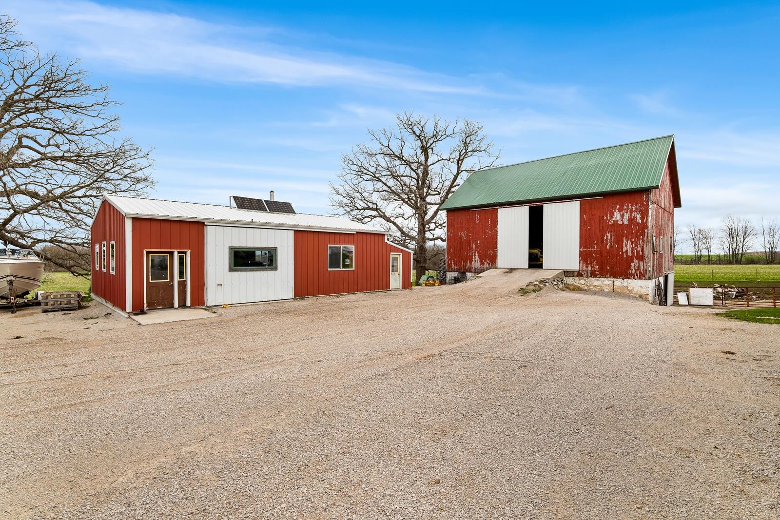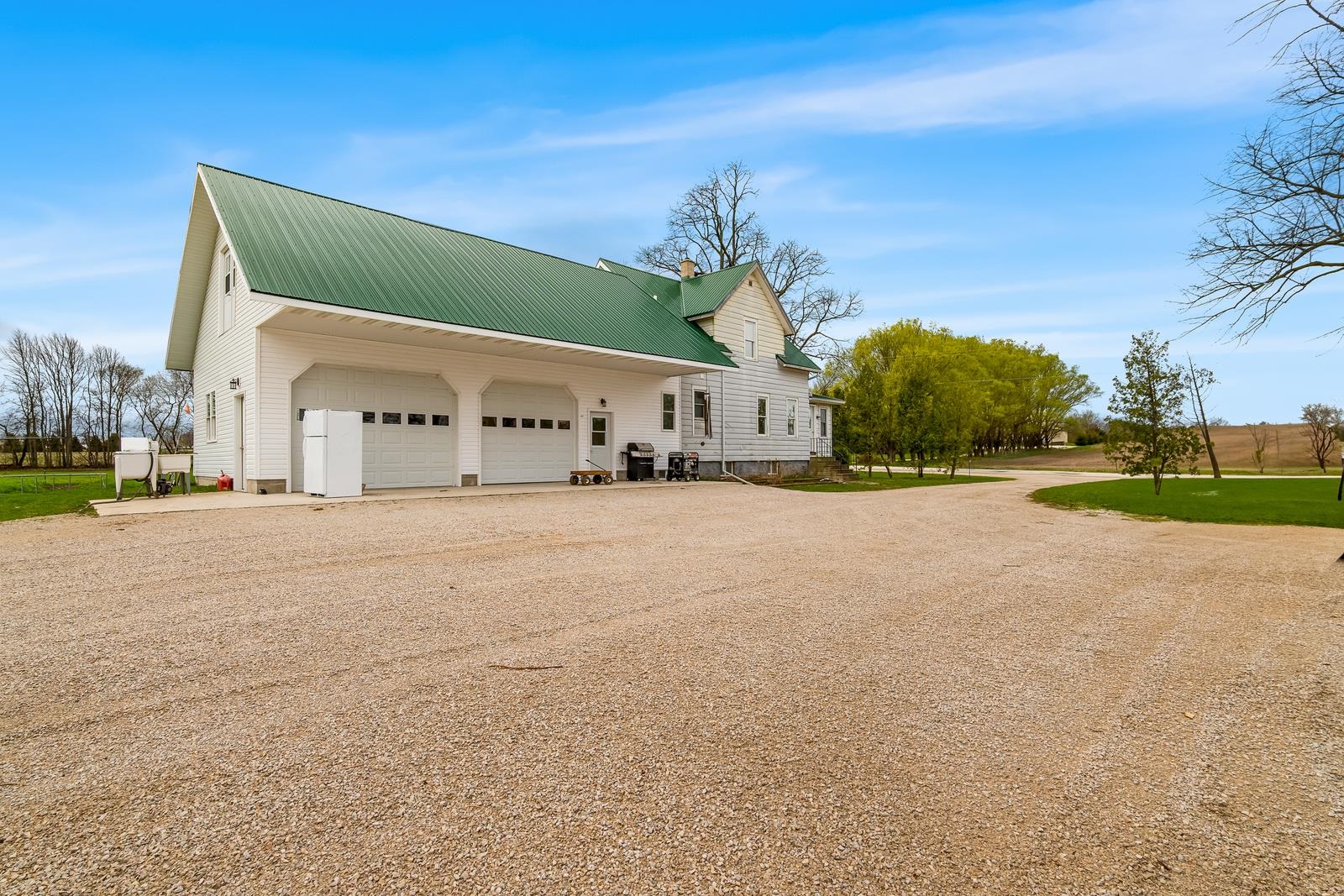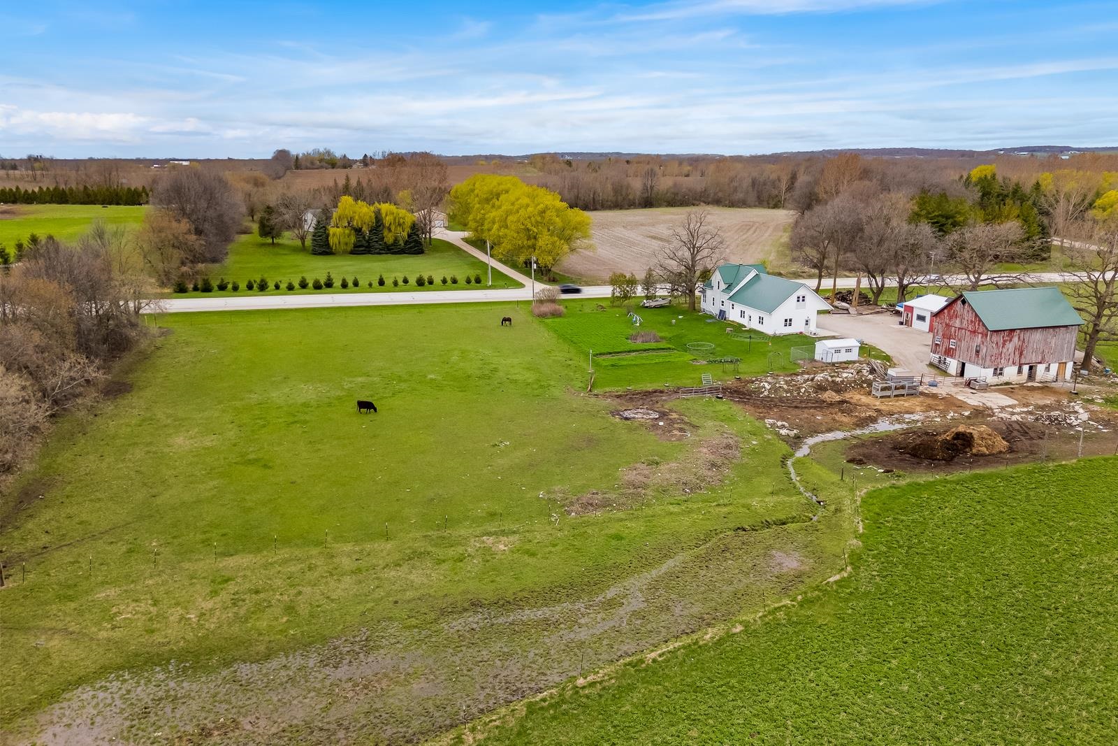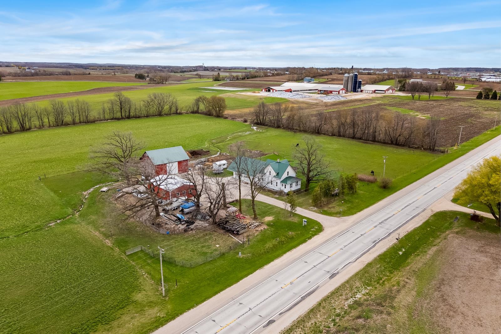 THERE IS SO MUCH HERE, you will want a HOBBY FARM in your future! Just North of New Holstein, come home everyday to a little piece of country. REMODELED home w/32x24 attached garage & addition to house. Garage has in-floor heat (11' side walls & 9' doors). NEW, BIG eat-in country kitchen just finished with a storage area! Full bath off kitchen for quick access from outside. Open to living room and front porch area w/newer windows & flooring. 1st floor bedroom too. Upstairs is 2 more bedrooms, a NEW full bath, storage and access to the 40x10 storage area above the attached garage...WOW! EXTRA 30x40 shop (10' side walls & 10' door). 30x44 barn & pasture area. Metal roofs. Newer well is 380' per seller. Many plants for your own garden. 48 hr bind, no bind on wkds/holidays